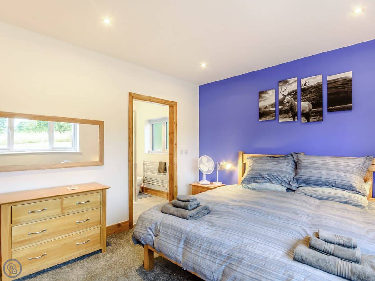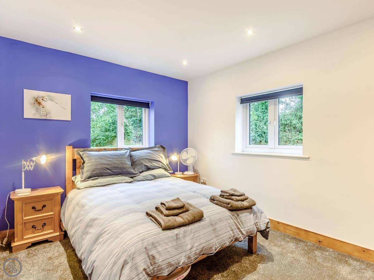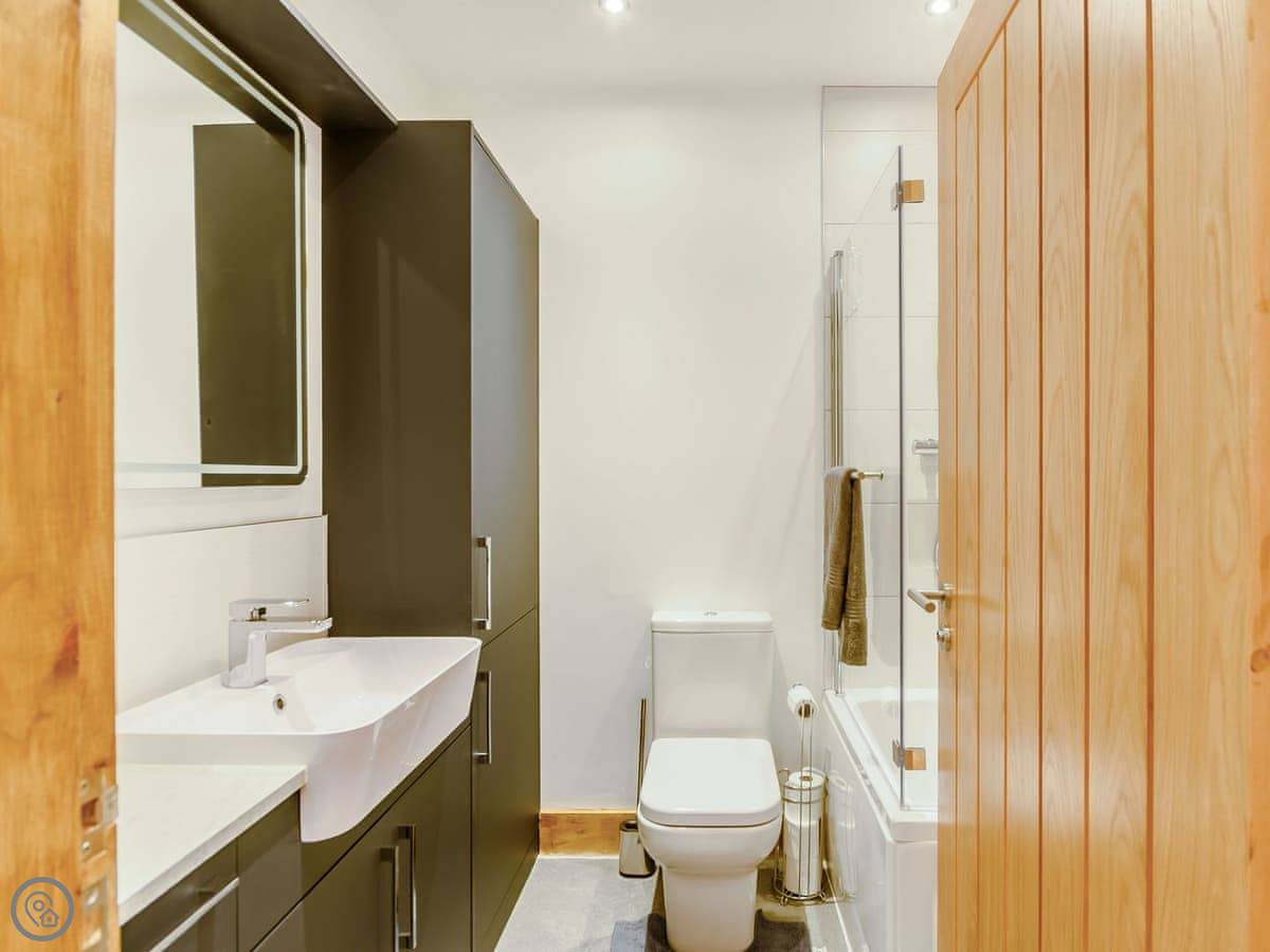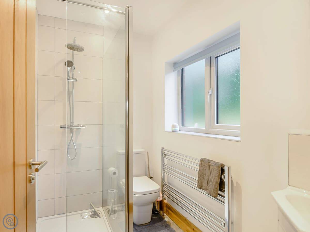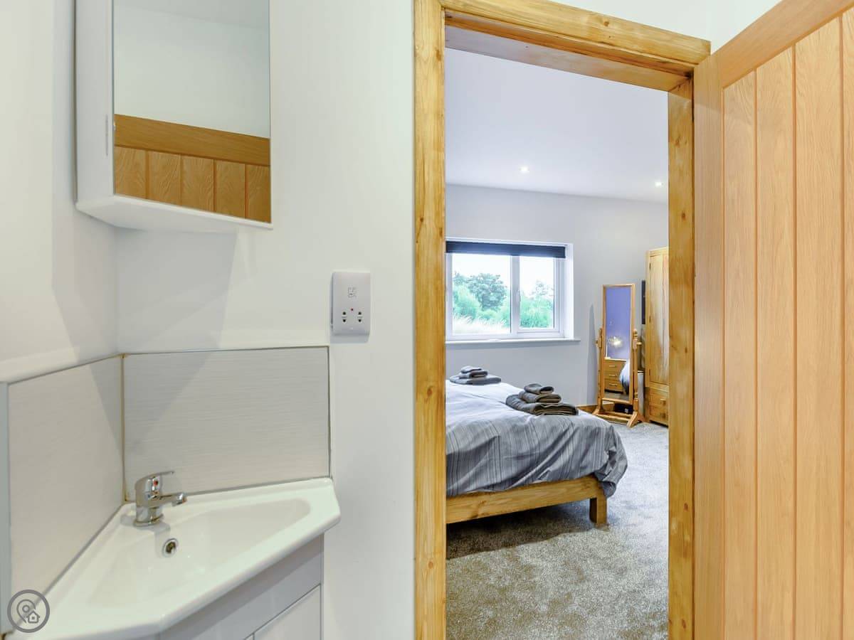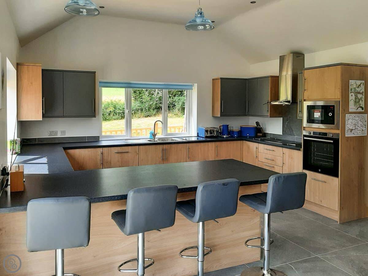 The main living space is open plan. It has a wood burner. The views from the front are over fields to an old windmill. From the back, you look out across the Wolds.