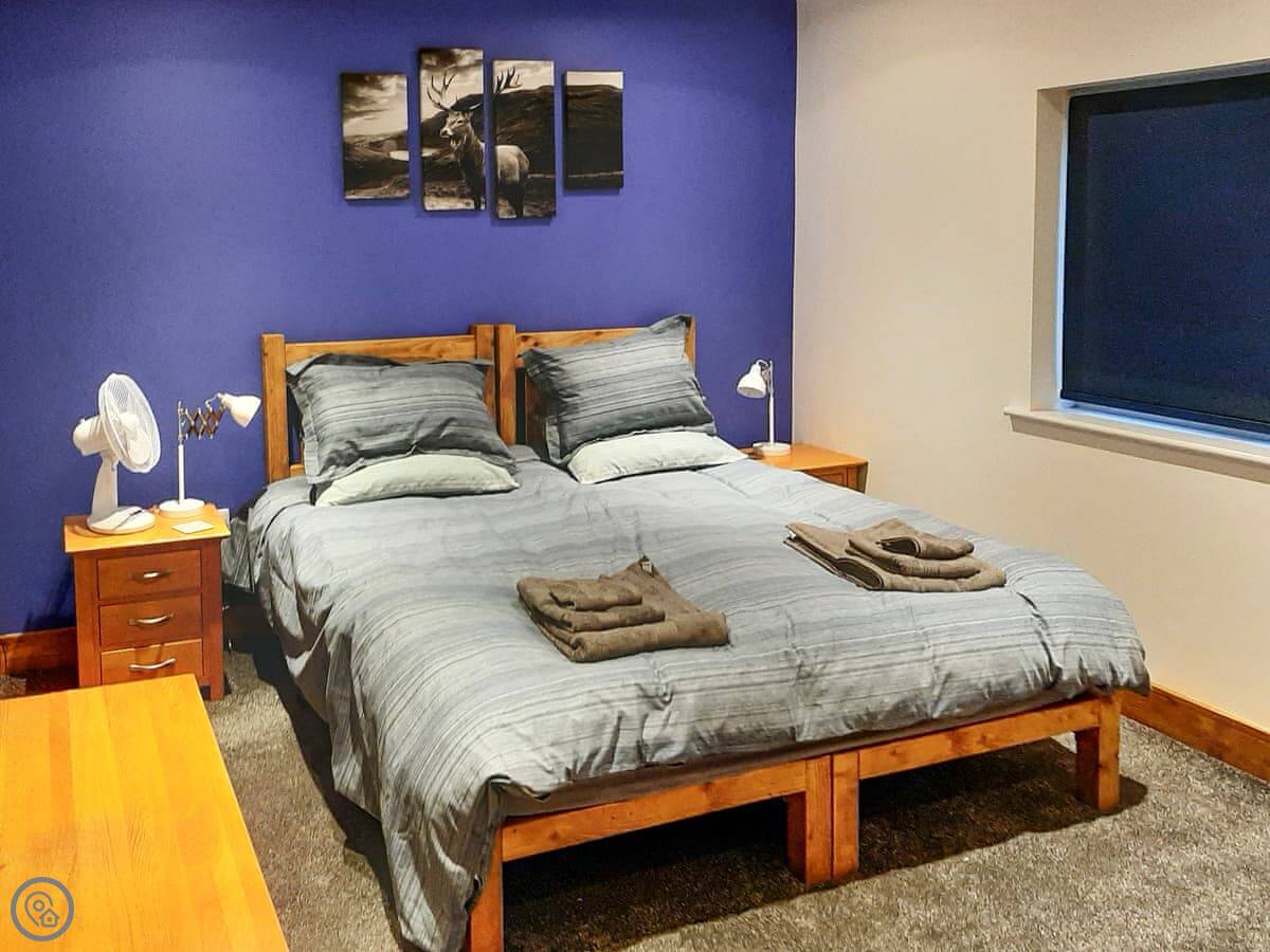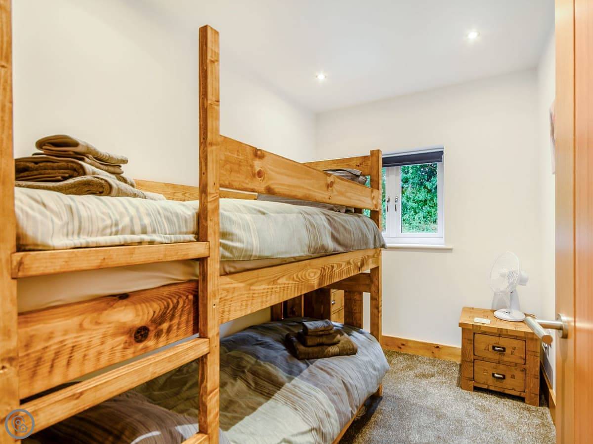 It sleeps six in three bedrooms. There are two bathrooms. One has a walk-in shower. You can bring up to two dogs.