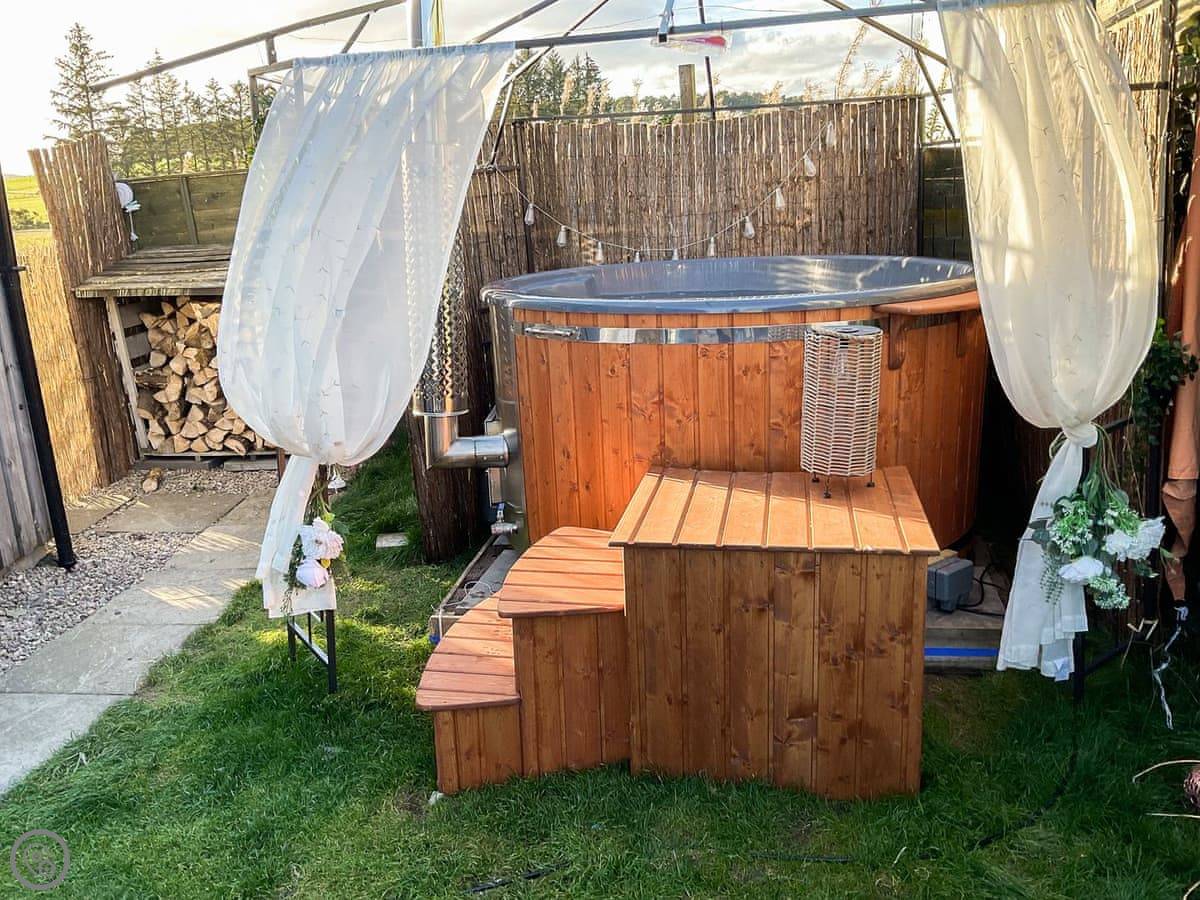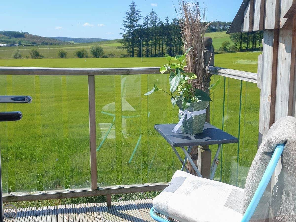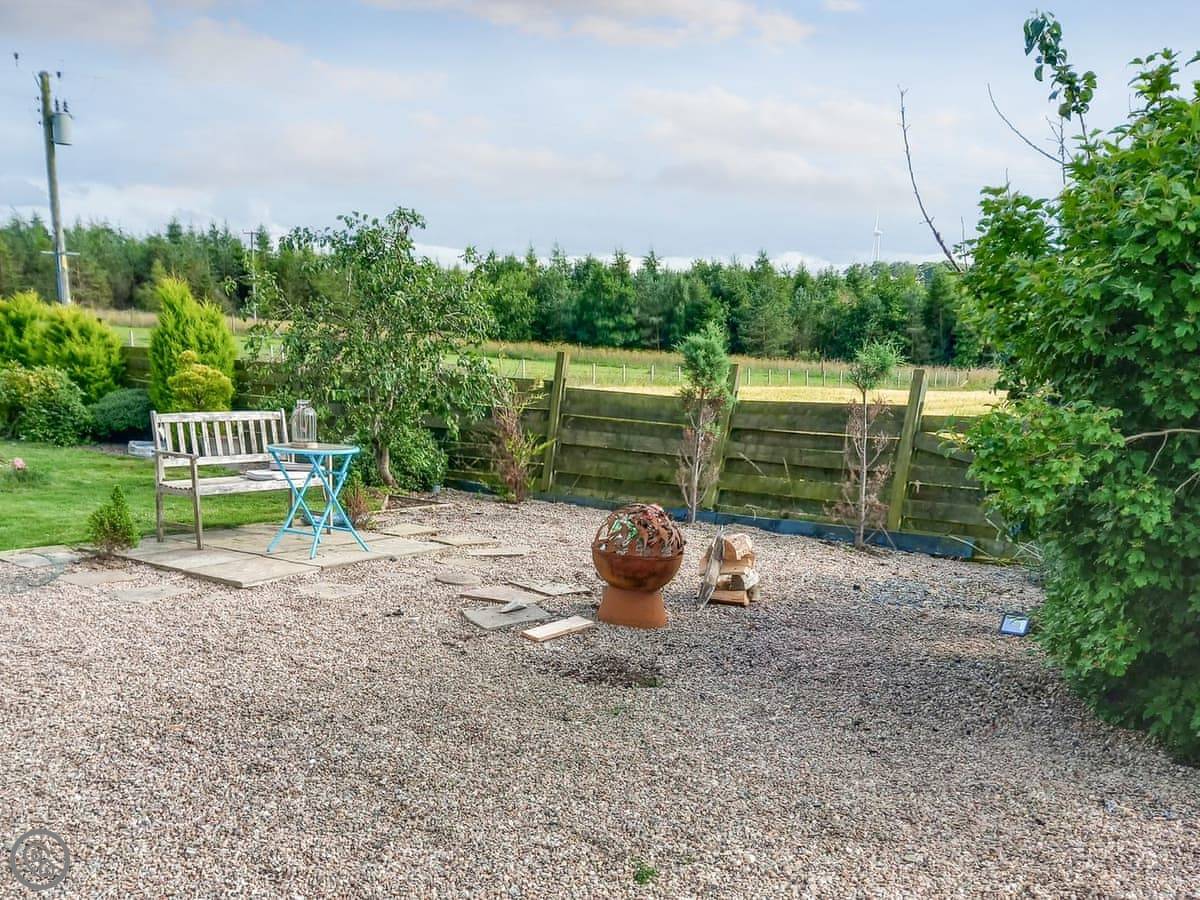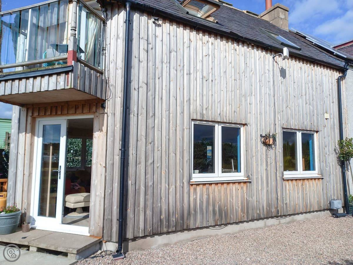 A pretty private garden at the back of the property through the French doors includes a firepit/BBQ and small patio. At the front of the property is a small, grassed and pebbled area with BBQ and outdoor kitchen area led to via the kitchen or side path. From the private balcony the sunset over the mountains looking towards Huntly and Dufftown can be truly spectacular. Low local light levels mean tremendous starry skies.
