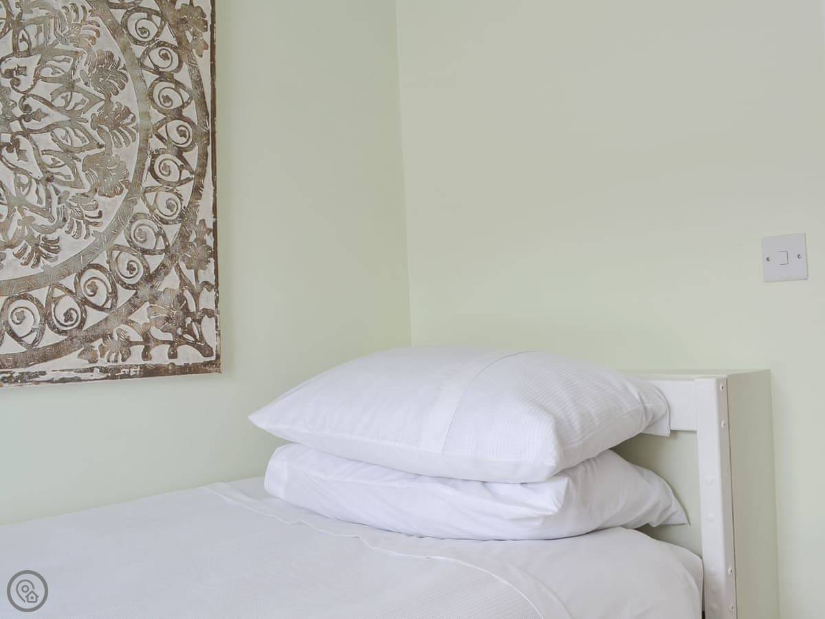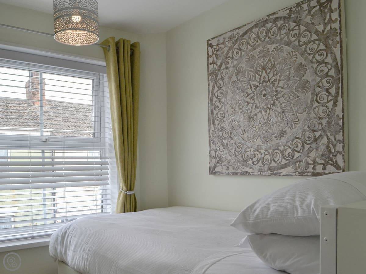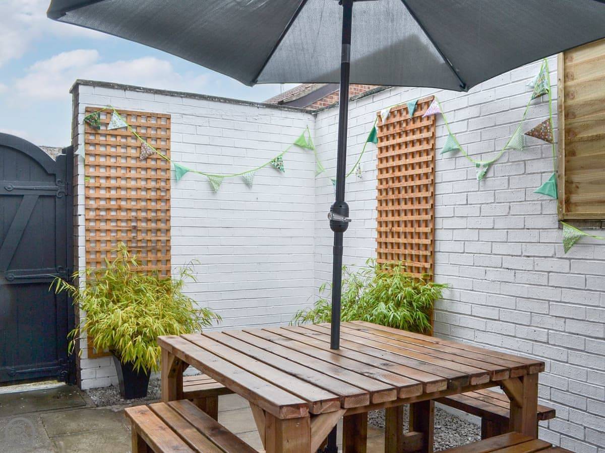 It sleeps five. Three bedrooms, one bathroom upstairs with a bath and shower. It's a 4 Star place, so it's comfortable and well equipped. The garden is a small, enclosed courtyard out back. It gets the afternoon sun.