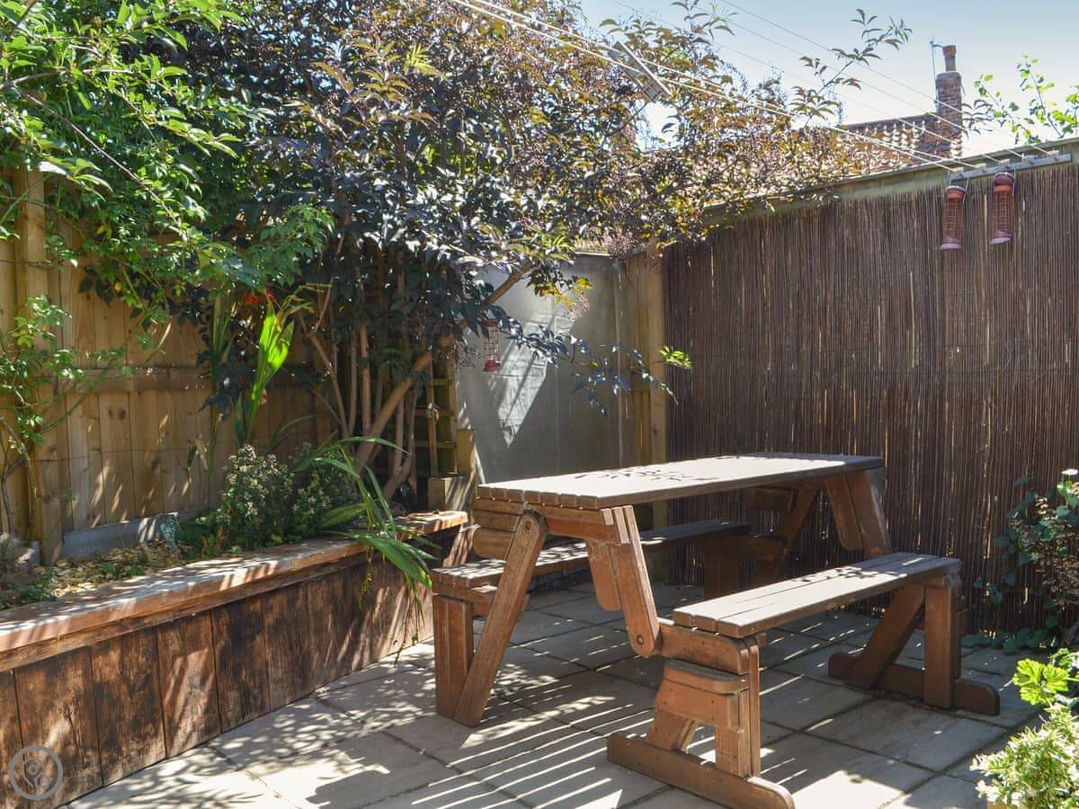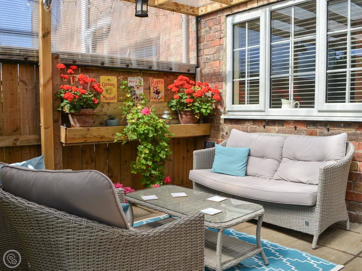 Lavender Cottage can be found in the pretty village of Atwick on the stunning East Yorkshire coast. With two bedrooms, this holiday home offers a perfect base for couples or a small family wishing to enjoy this beautiful part of the East Riding. Walk through the cottage garden and enter into the cosy sitting room. A wood burner takes centre stage and the plush pink sofa and armchairs provide the perfect place for a cosy night in front of the Smart TV watching a movie or catching up on your favourite soap opera. The galley-style kitchen comes complete with an electric hob and oven, dishwasher, washing machine and slow cooker. There is plenty of work top space for preparing a delicious picnic to enjoy at the beach or for cooking up a home made evening meal which can be enjoyed in the dining room. This rooms also offers a comfy sofa and additional TV should you wish to have a quiet few hours away from your holiday friends. Guests can choose between a restful soak in a bubble bath or a hot shower in the convenient ground-floor bathroom, before taking the cottage stairs to the first floor where you will find two pretty bedrooms; one with twin beds and the other a double. Lavender Cottage’s enclosed garden is a delight with two seating areas. One is under cover where you can enjoy an early morning coffee before heading out for the day or a second secluded area with picnic bench.
