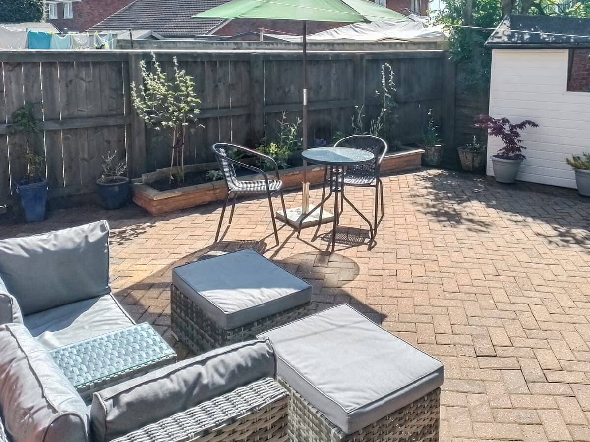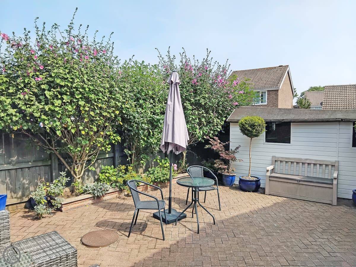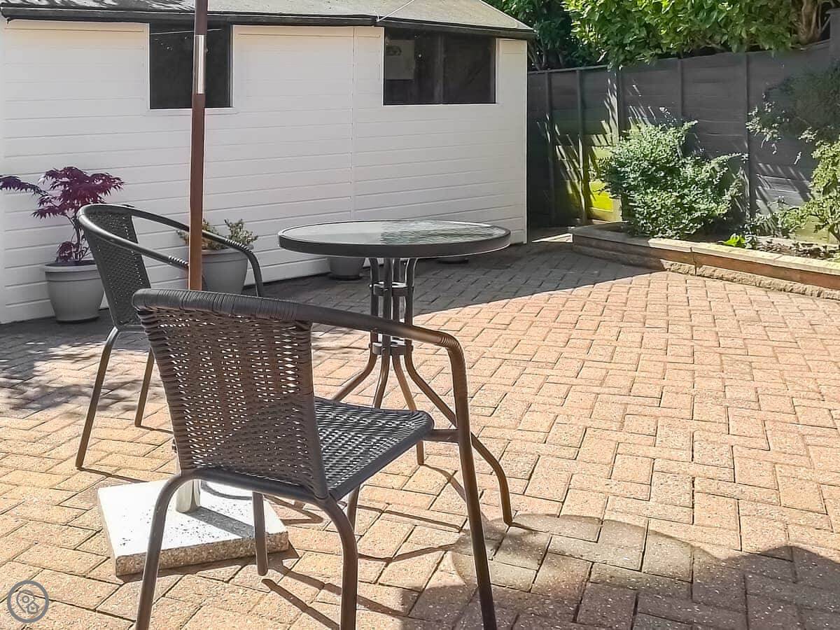 Out the back there's an enclosed paved garden with a table and chairs. It gets the sun in the morning. You can bring one dog.