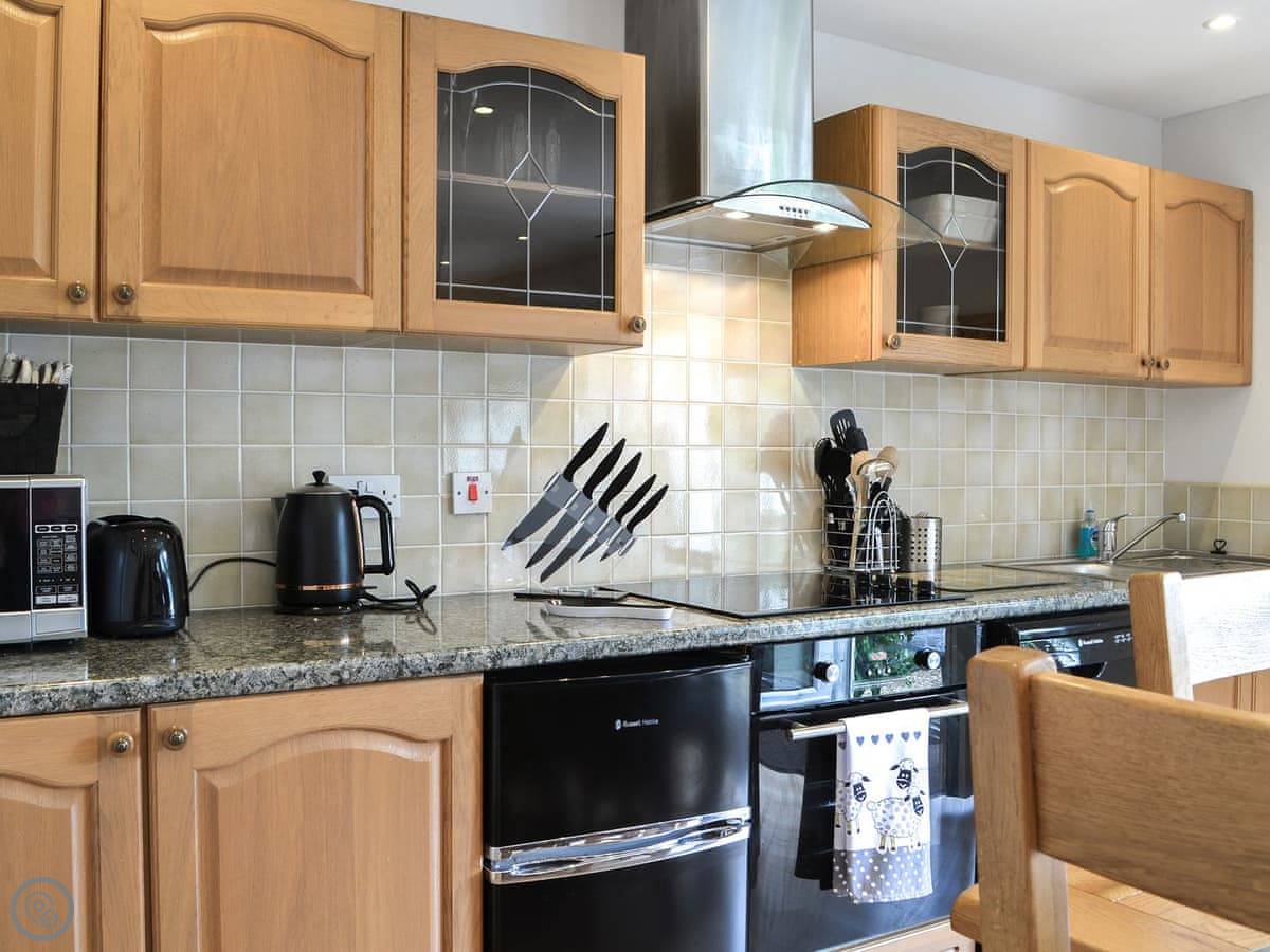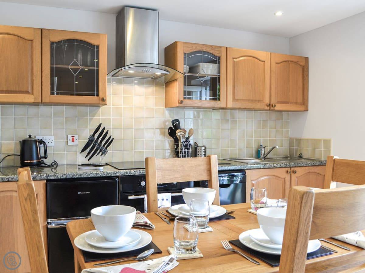 The kitchen's fine. Electric oven and hob, dishwasher. Enough room to cook. Dining table in there too.