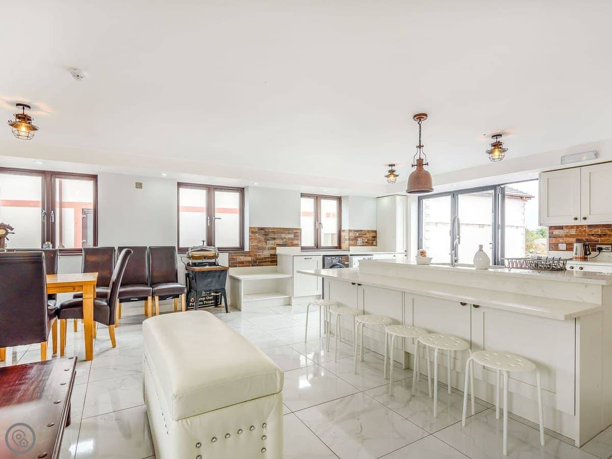 White Hart Farm Cottage boasts a large kitchen and dining area for friends and family alike to get together at mealtimes and discuss their day, or for that all important family celebration or reunion. There is a huge living area for all to gather and watch films or just catch up. Also scattered around the cottage you will find separate areas to read a book or simply relax after a day exploring. Climb the fantastic staircase and you will find all the bedrooms and a relaxing area with a picture-perfect window overlooking the grounds. The cottage sits in private grounds behind electric gates, with plenty of parking available.