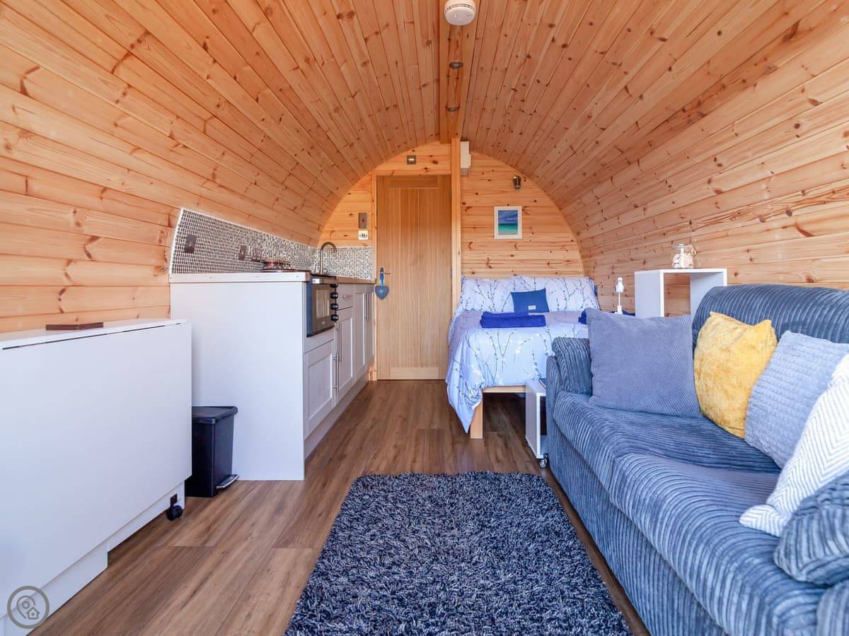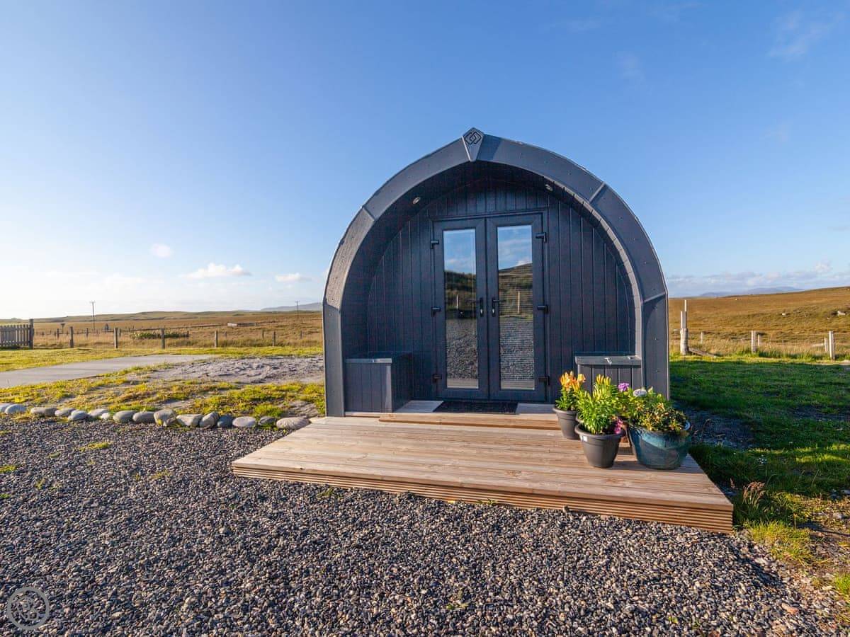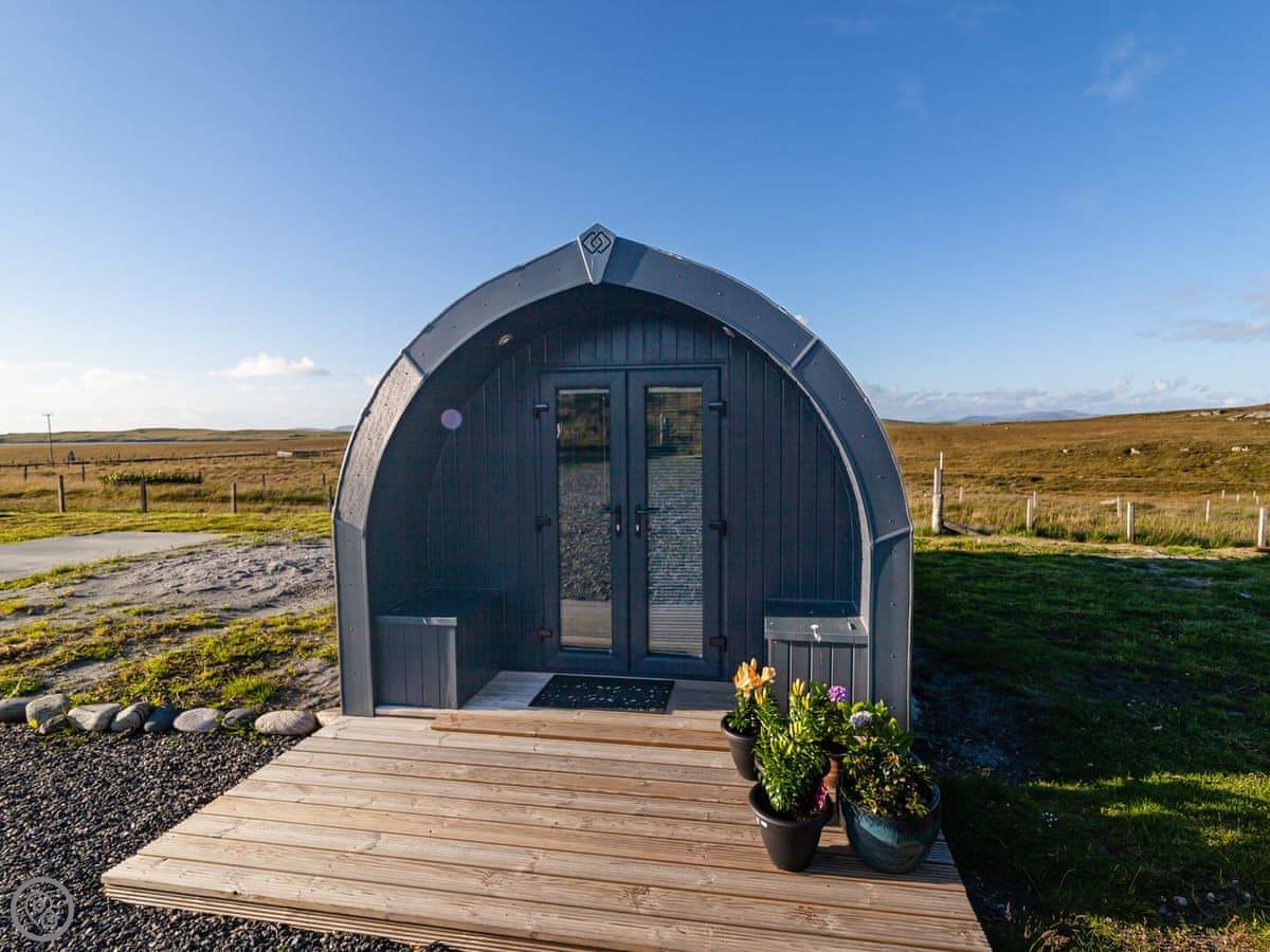 Boreray is situated on a croft with lovely views and sheep in the fields around you. It is just 10 minutes to "the wee beach", and there are great walks in the area, including along the famous 3-mile long white West Beach sands and Calchan Sands, only 3 miles away on Berneray. You can also walk to a bistro in Berneray. Enjoy the scenery, the fresh air and a good night’s sleep in the pod, which has underfloor heating, a small kitchen area where you can cook the local shellfish, a shower room with toilet, double bed and also a double sofa bed.