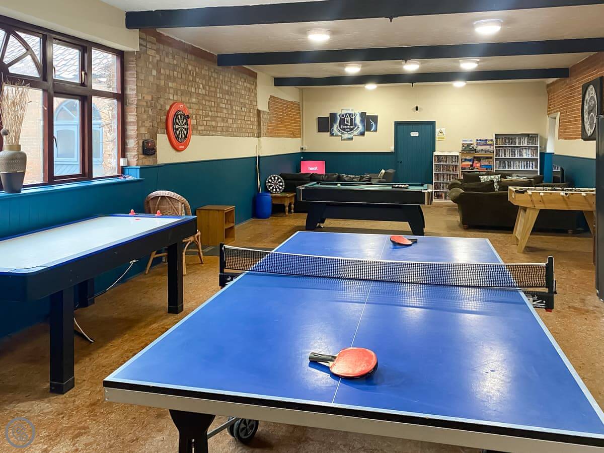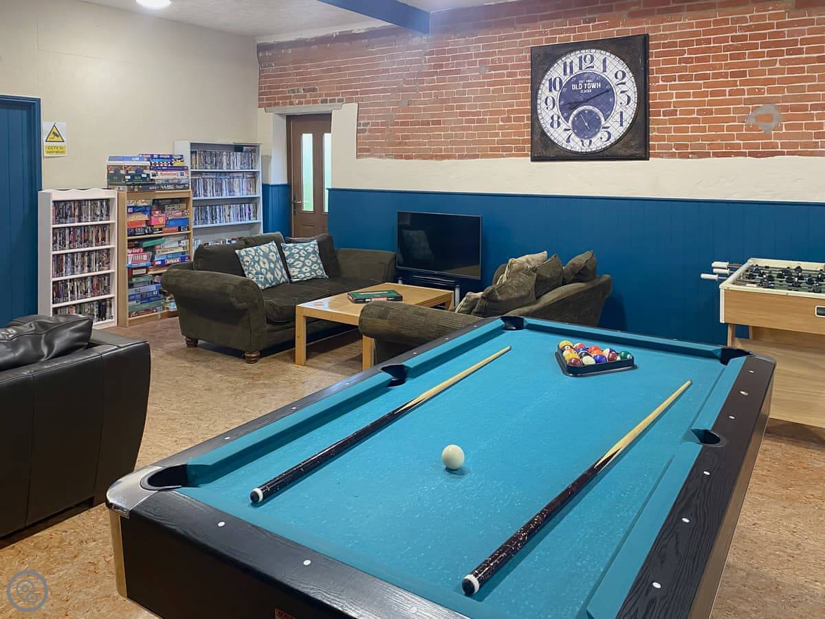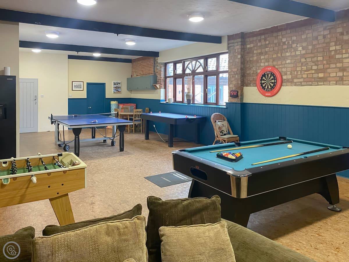 The main thing is you get to book time in the shared indoor heated pool for just your group. You book it by the hour. There's also a games room next to it with a pool table and things. You'll have a private enclosed patio area with a table and a BBQ.