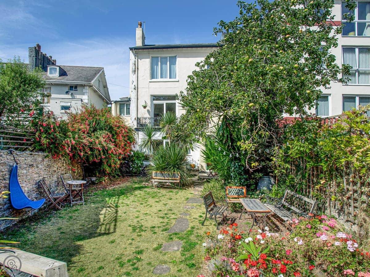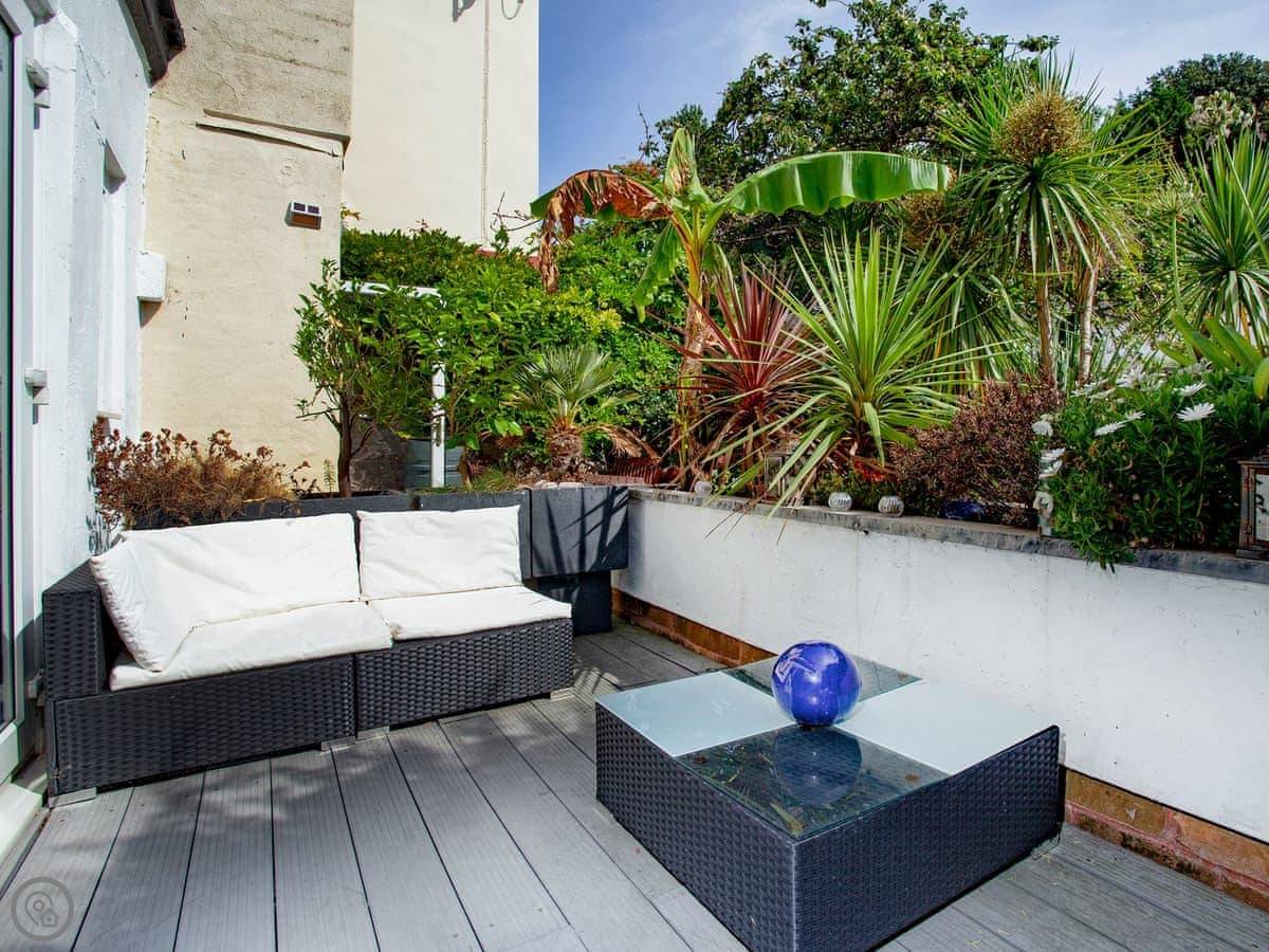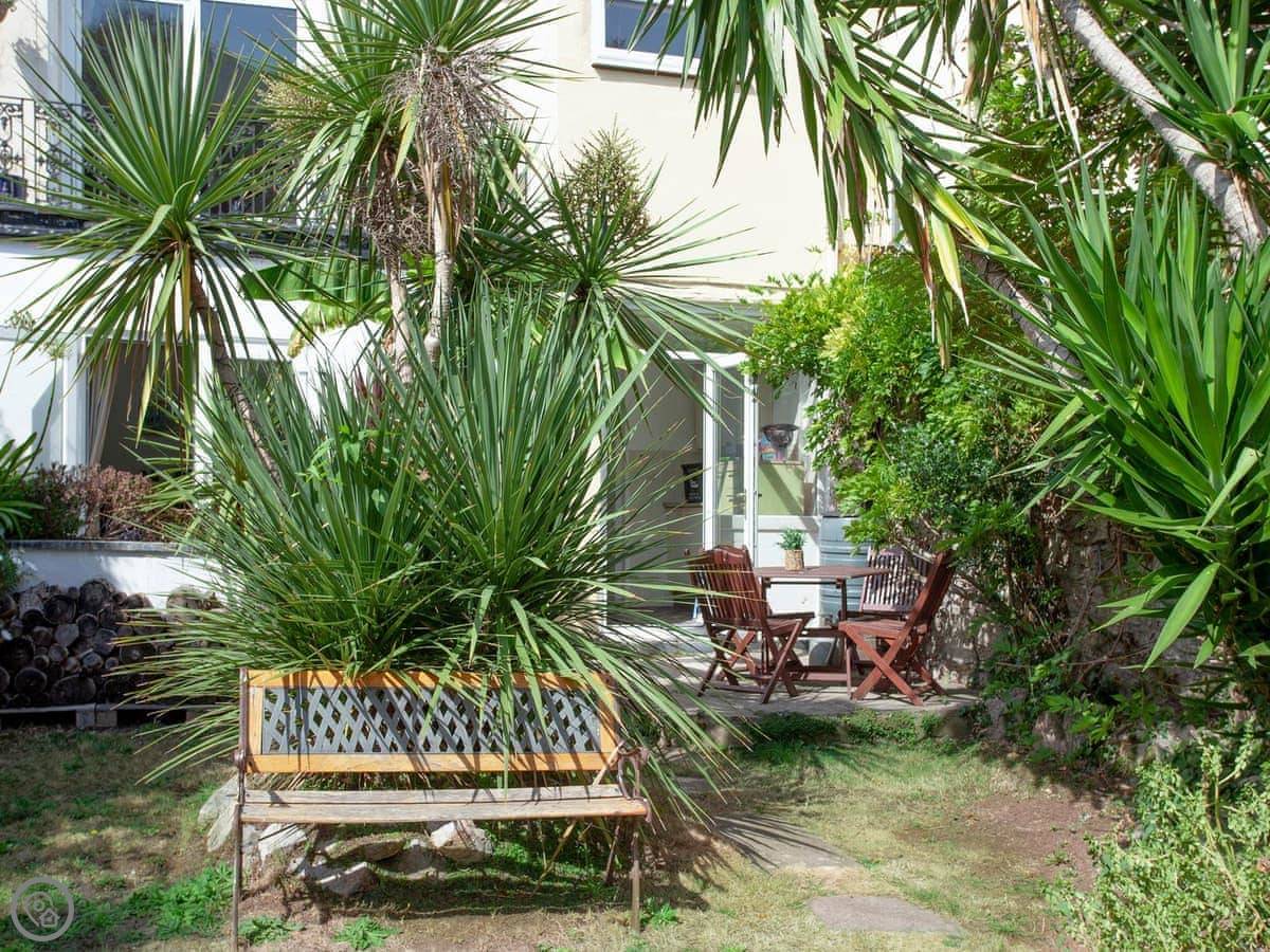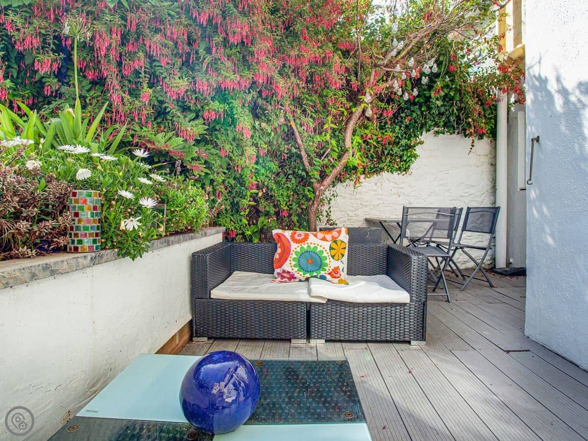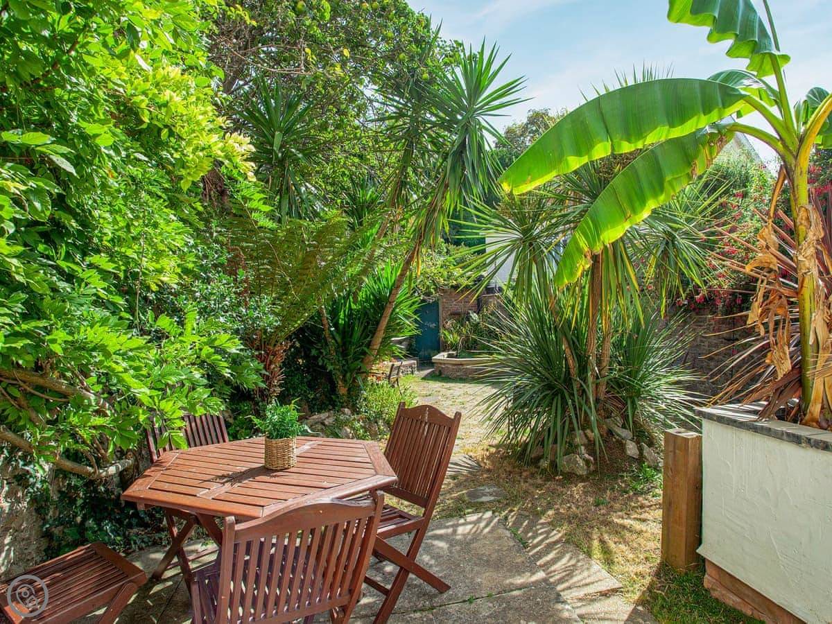 The south facing outdoor space has been thoughtfully designed to let you relax in the sun, surrounded by Mediterranean and tropical planting in the large planter and pots. There are multiple places for you to sit/relax & there is space for four to dine at the bistro table which is located under an Apricot tree. Plus, up to twelve can sit around a large rustic table and benches at the end of the garden.