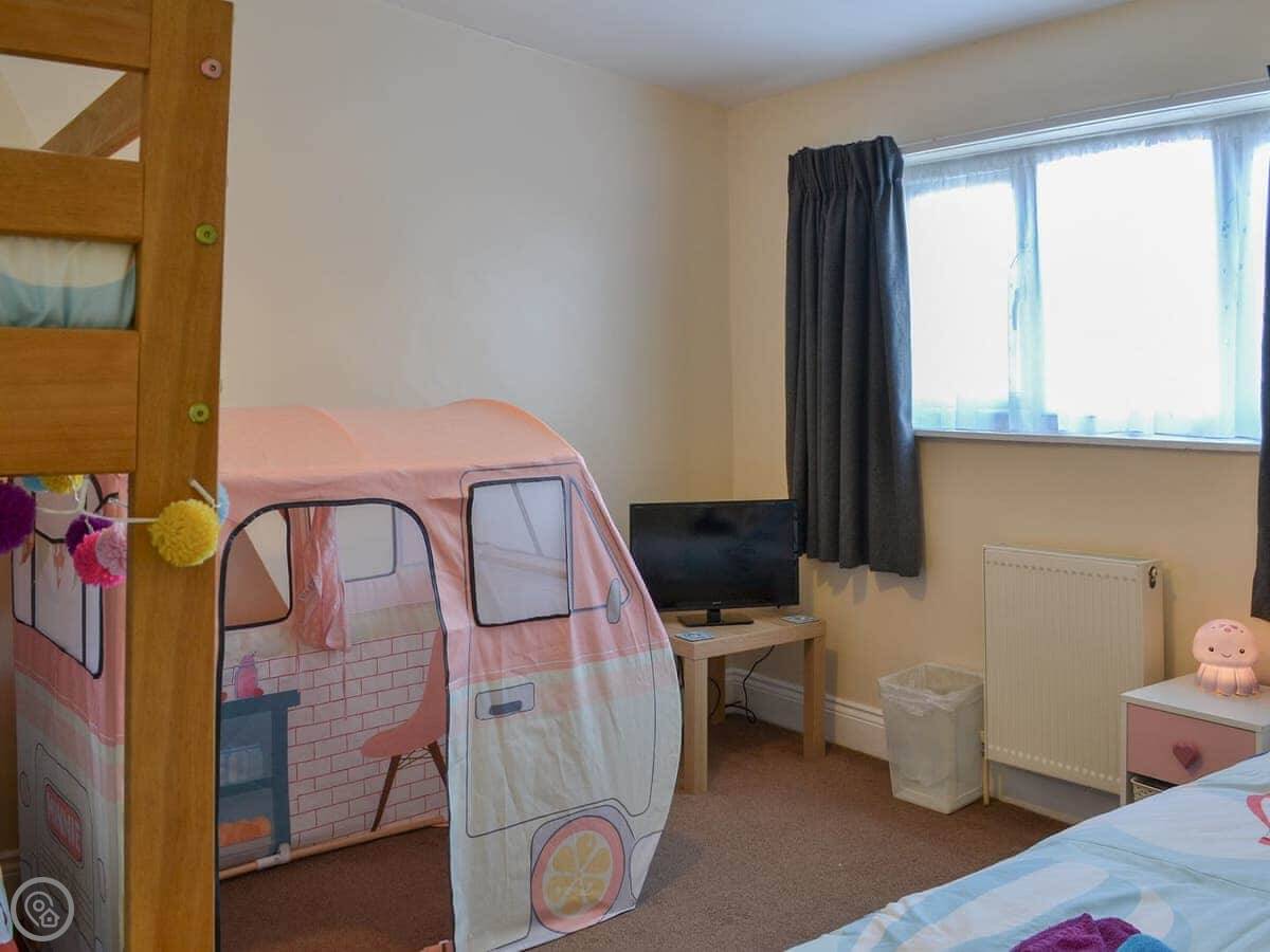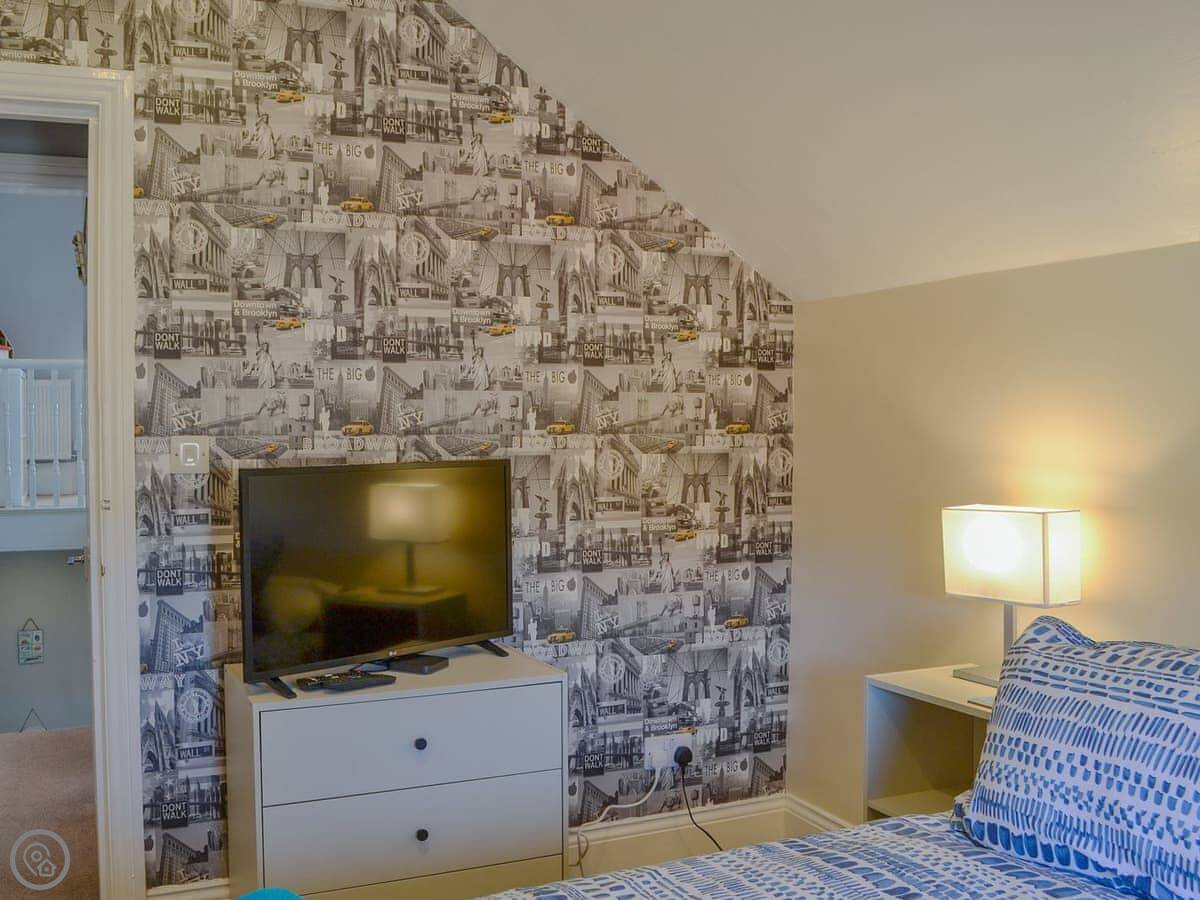 Facilities wise: bedding and towels are included. There's WiFi, a TV, a highchair. You can bring up to two dogs. There's a washing machine. It's got central heating.