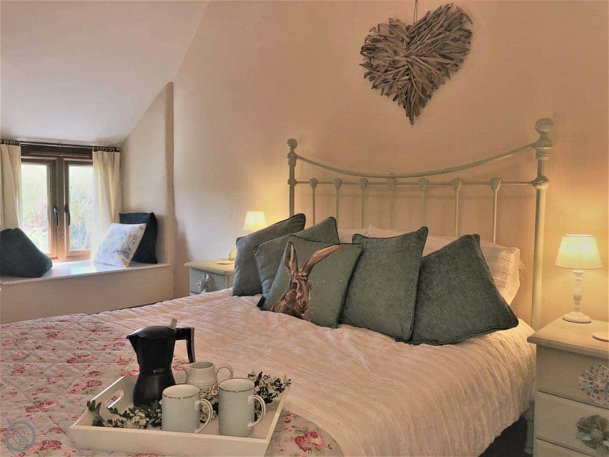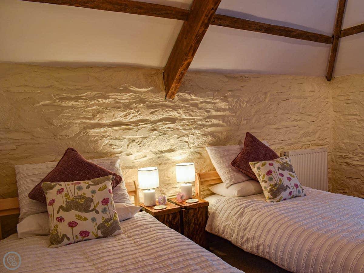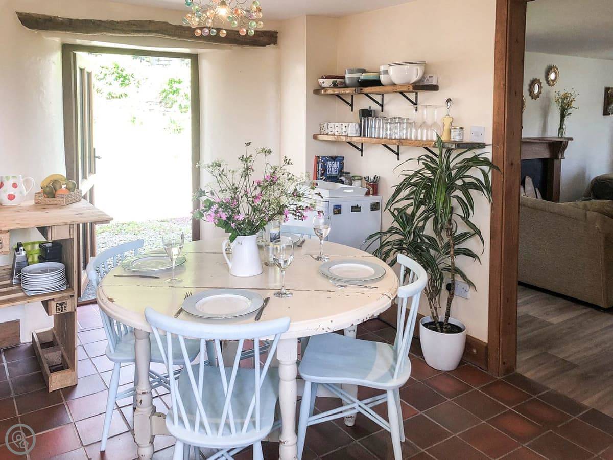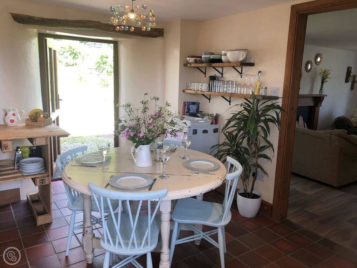 As the name suggests, Apple Store Cottage was once used to store apples from the orchard. Its unique features, many carefully and crafted by the owners from unwanted materials, make the cottage spacious but cosy. The well-equipped kitchen-diner is supplemented by a relaxing living room—perfect for chatting after dinner—and delightful reading nook. There is a ground-floor double bedroom and ground floor shower room with toilet, and the living room also on the ground floor offers full Fibre broadband. On the first floor, a further double bedroom with wonderful window seats, and twin room with textured stone walls and exposed beams await, where a good night’s sleep is a welcome end to a busy day of adventures. The outside patio is ideal for watching the star-studded night sky, enjoying a morning coffee or an al fresco dinner and is a real sun trap. Guests are also welcome to use the large outdoor eating area and garden, explore the 25 acres of meadows and hill, and laze by the freshwater wildlife pond.