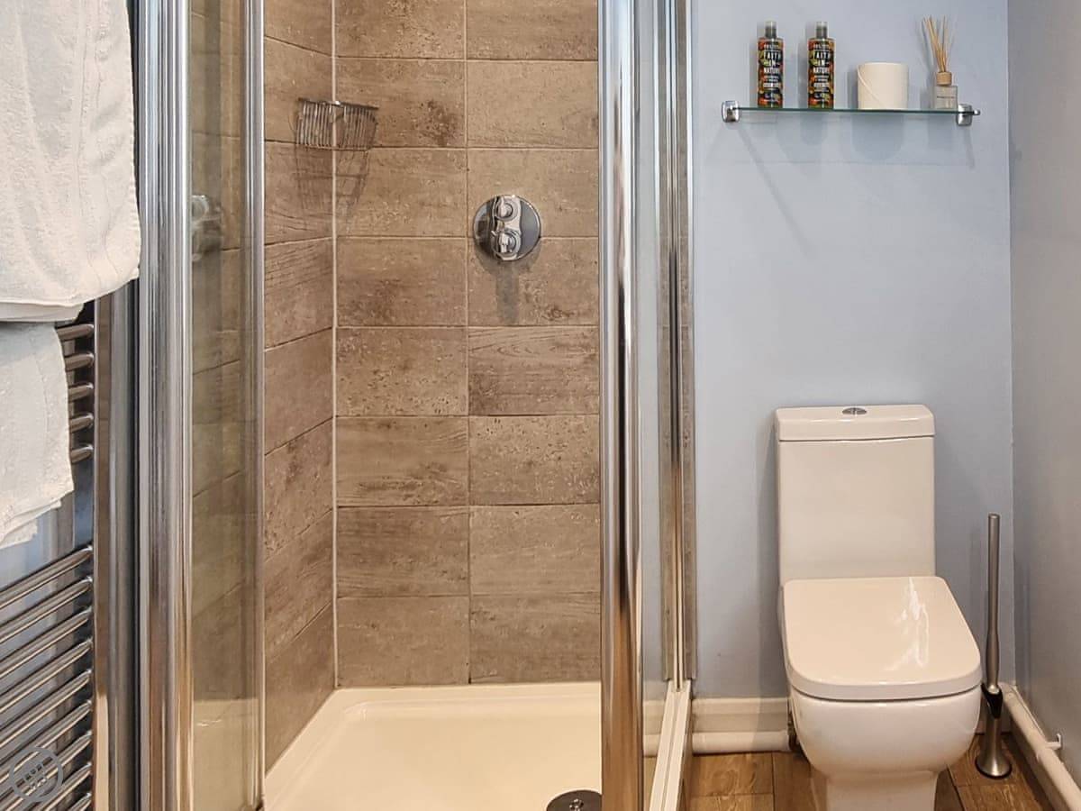 It's open plan downstairs, bedroom and shower upstairs. The stairs are a ship's ladder style, so they're quite steep. You need to be okay with that.