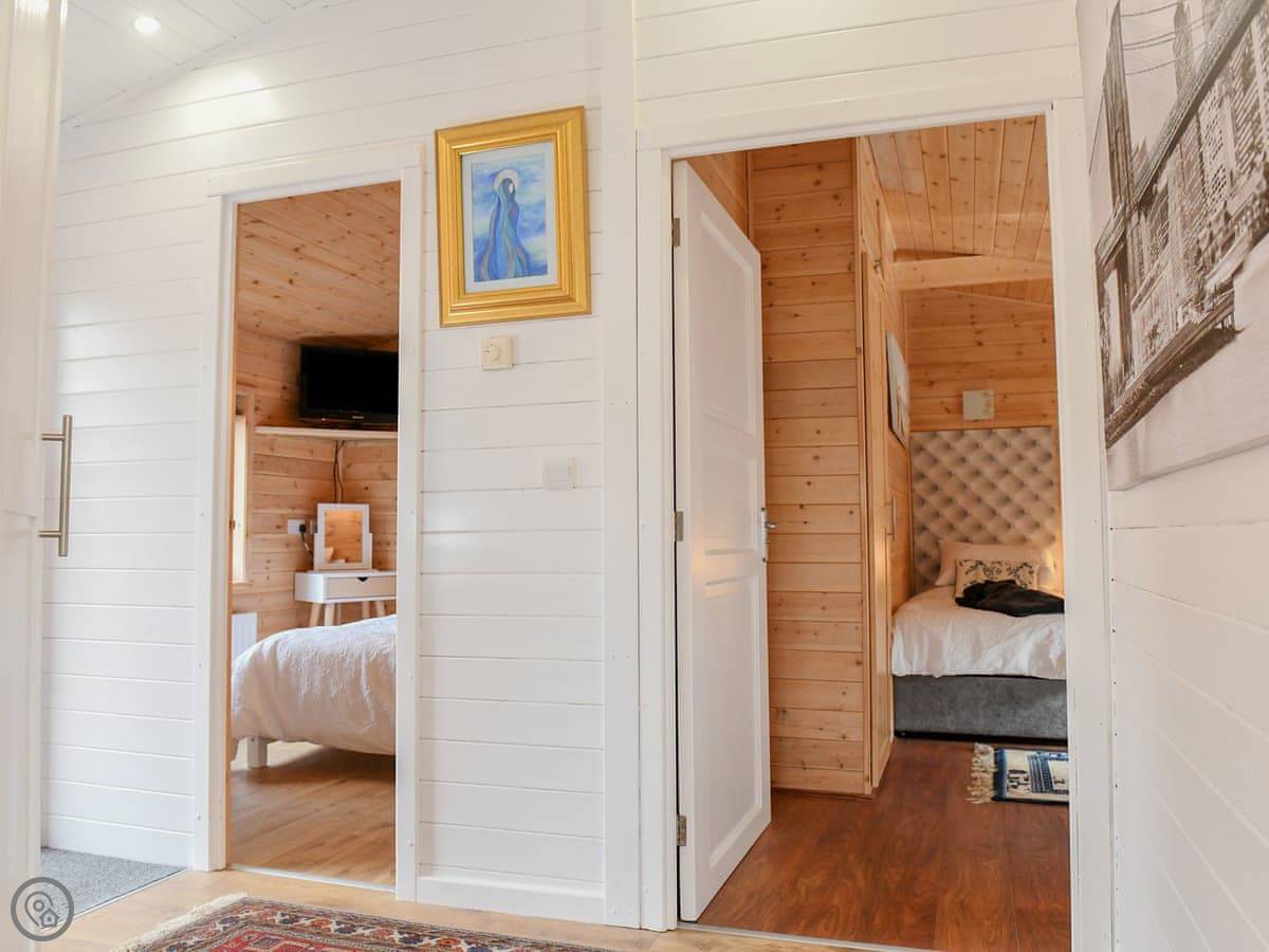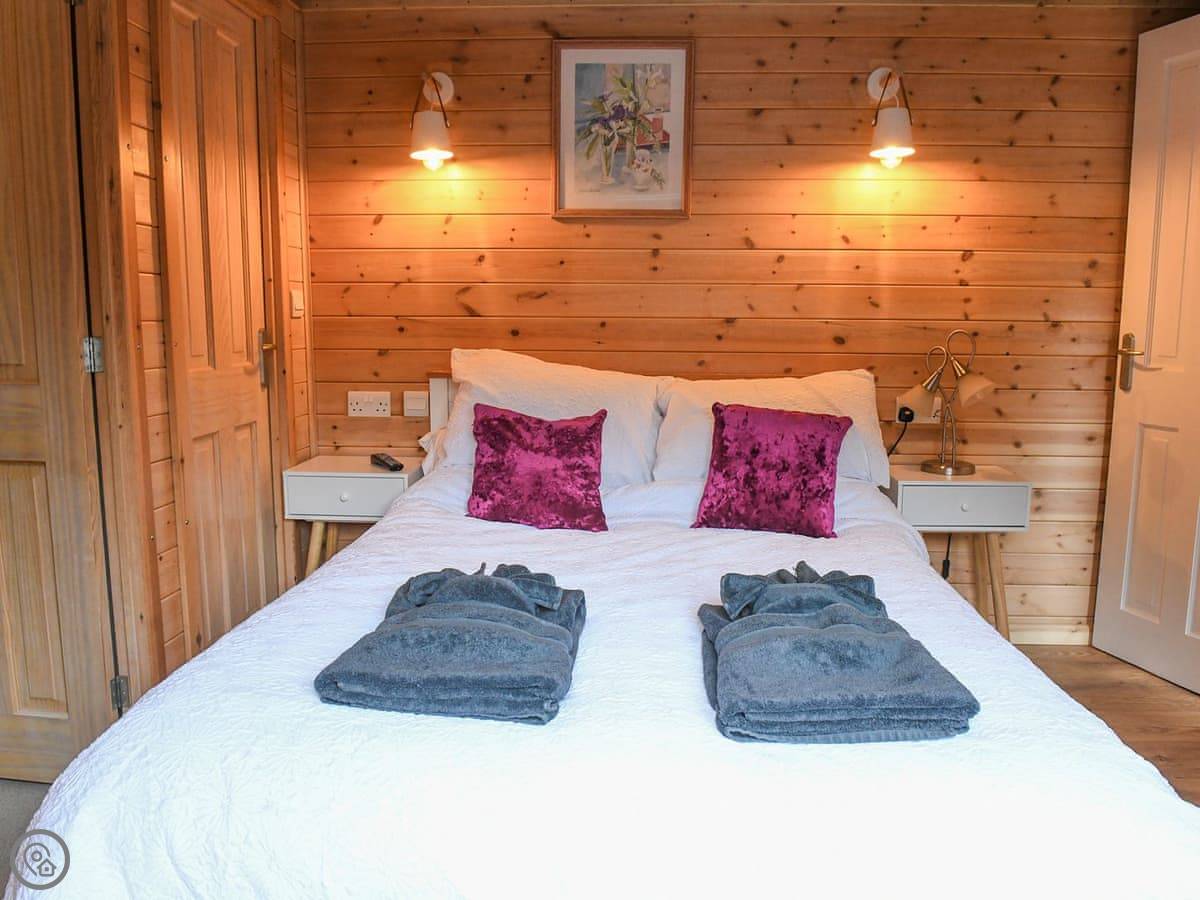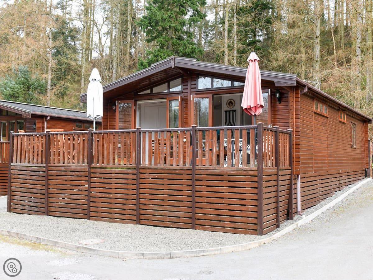 It's quiet here. You're in the countryside, so you get fields and trees. The lodge is made of redwood. It's got a 4 Star rating, which means it's comfortable and well-equipped.