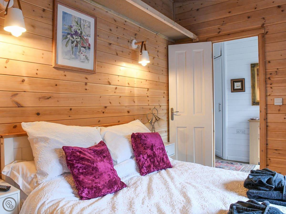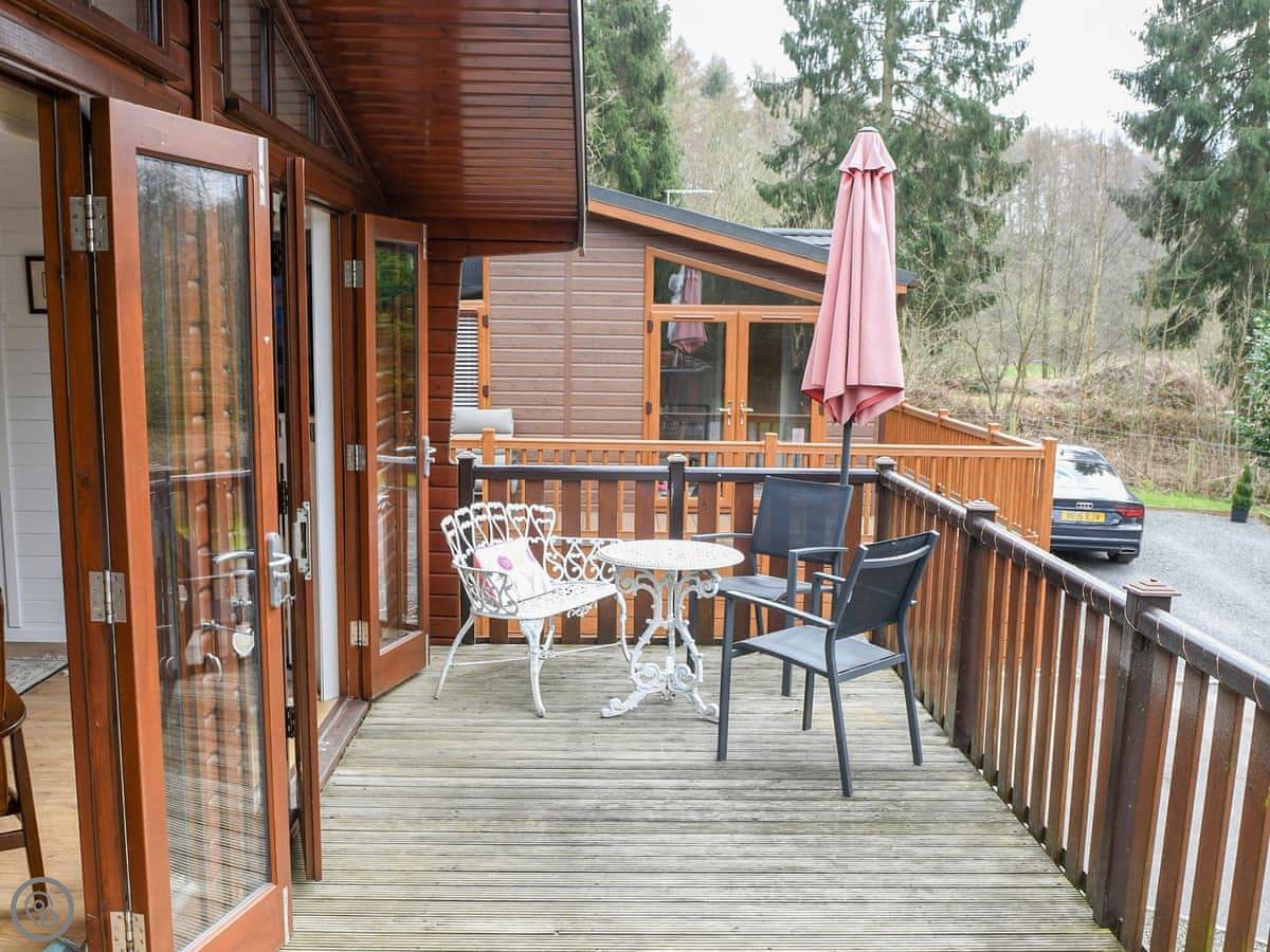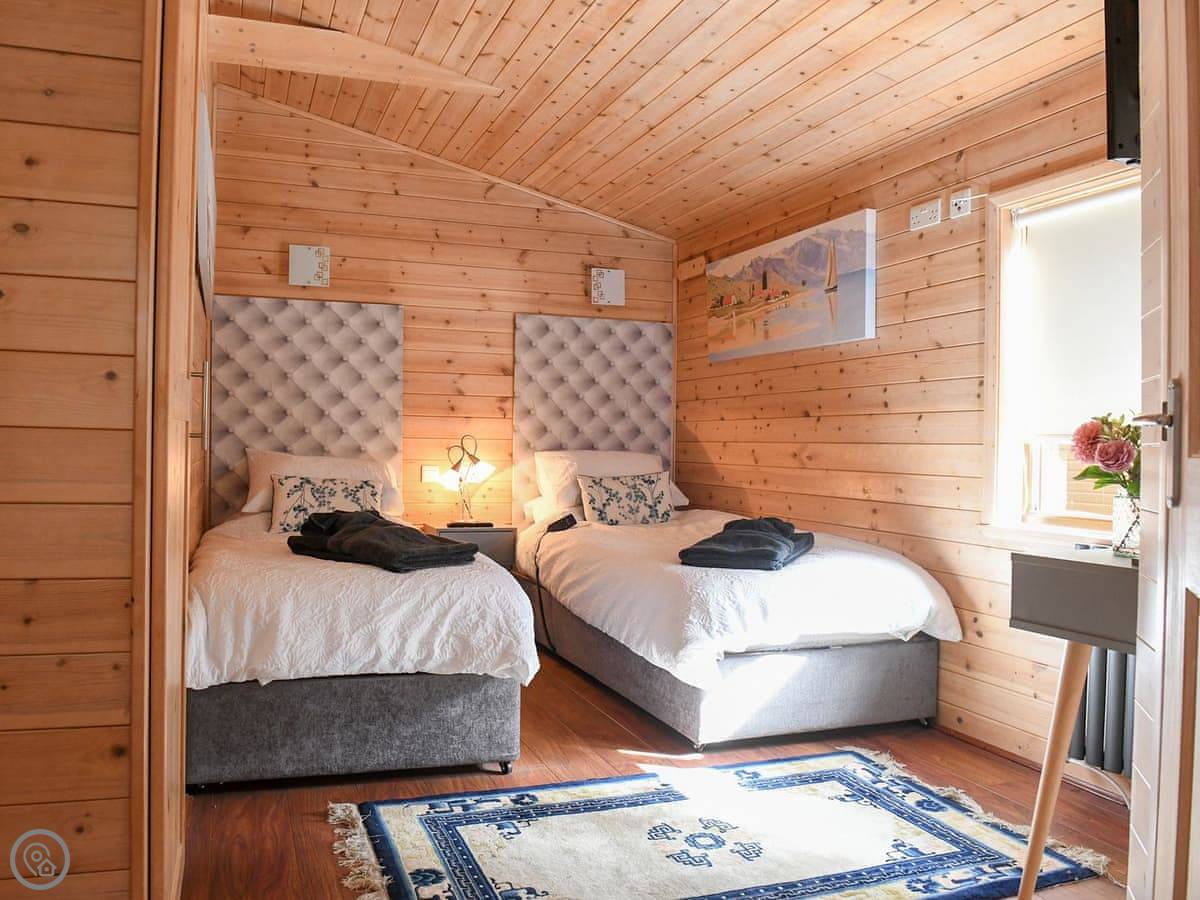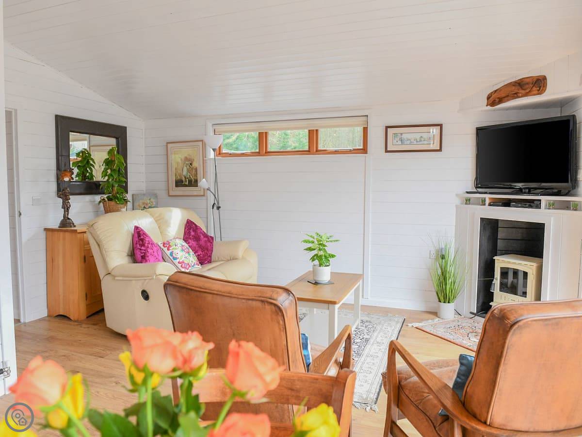 It's quiet here. You're in the countryside, so you get fields and trees. The lodge is made of redwood. It's got a 4 Star rating, which means it's comfortable and well-equipped.