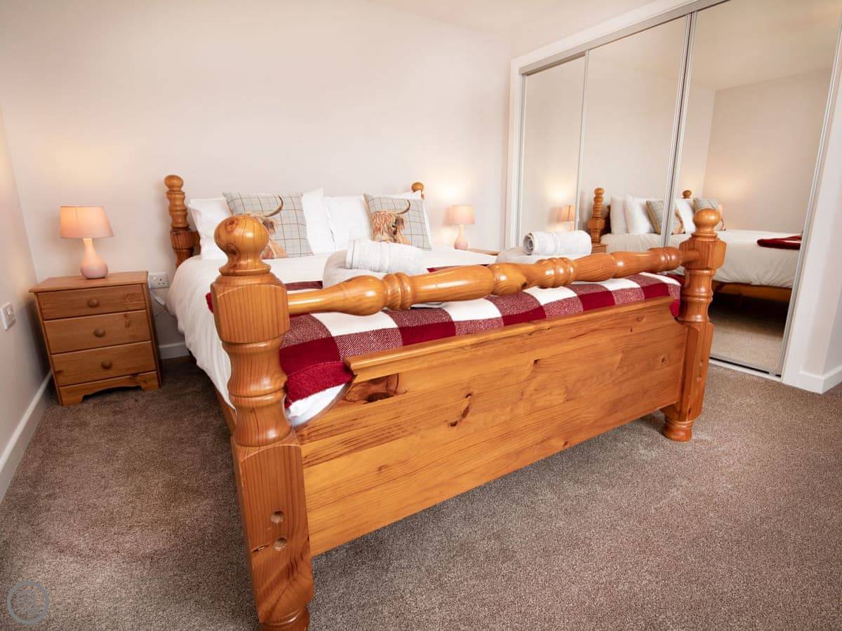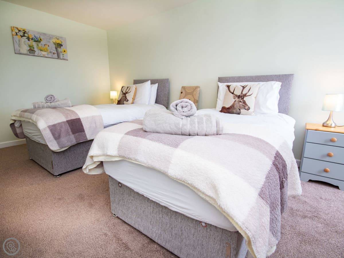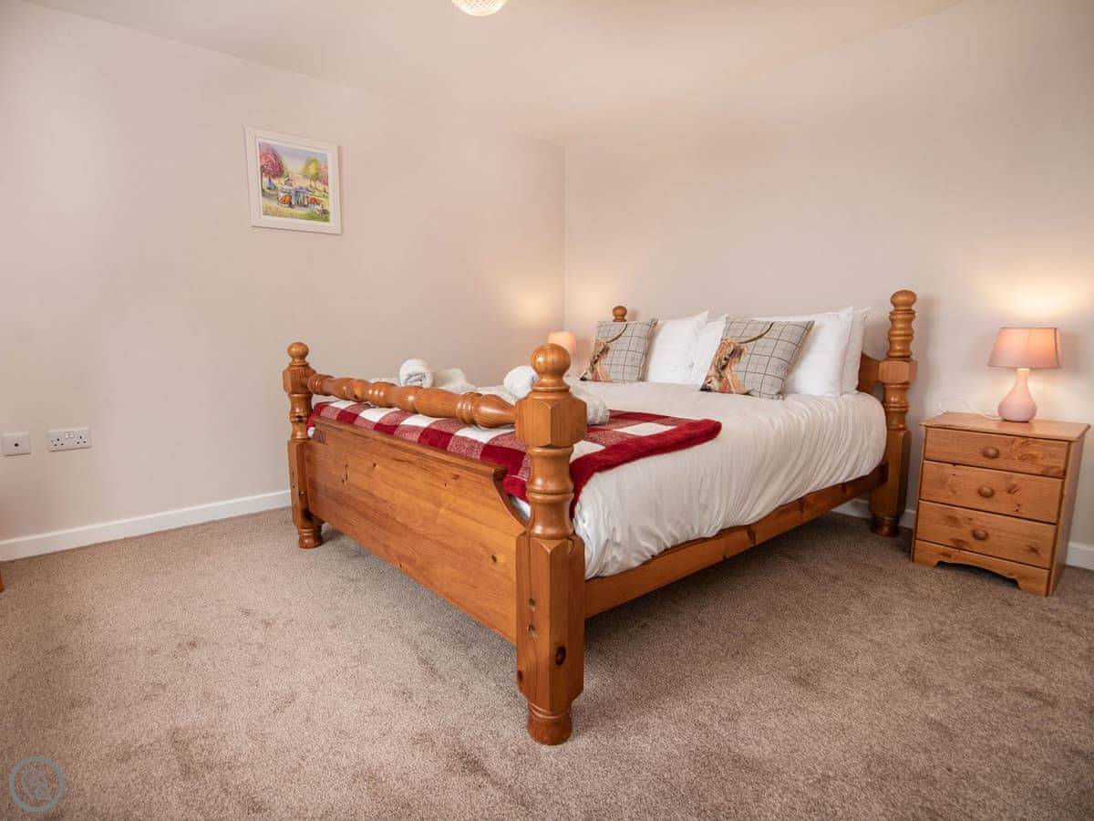 It sleeps four. Two bedrooms. One has a kingsize bed, the other has two singles. There's one bathroom with a good shower. It's got a 4 Star rating, which means it's been done up to a decent standard. It's clean, warm, and everything works.