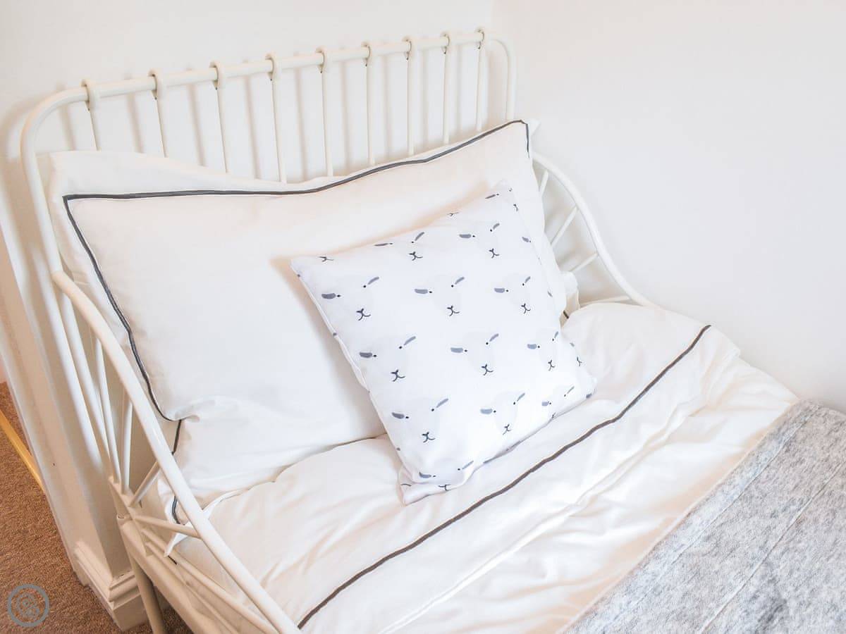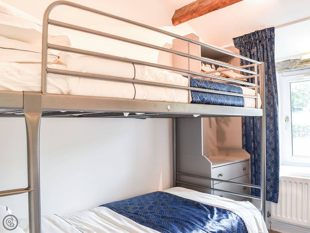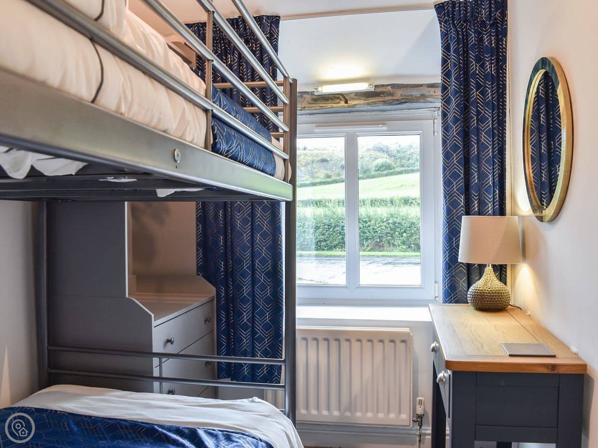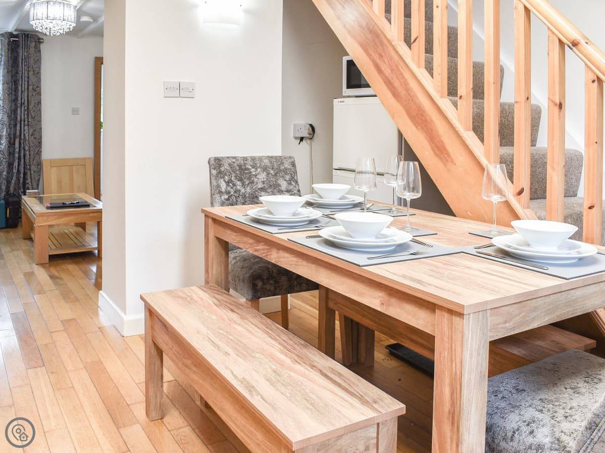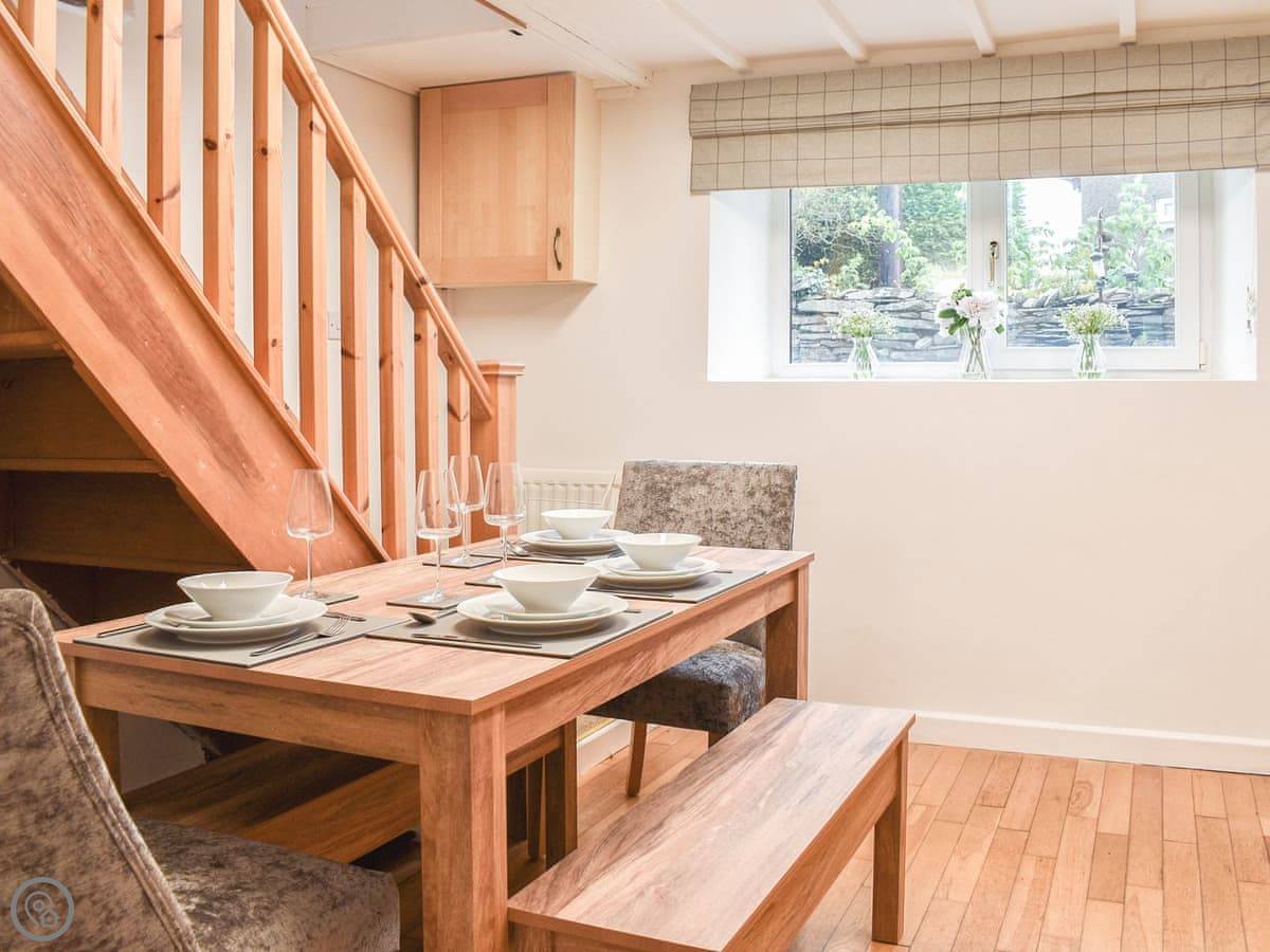 It sleeps four. There are three bedrooms and one bathroom. It's a 4 Star place, so it's comfortable and well-equipped. It's not huge, but it's enough for a small family or two couples. The stairs are a bit narrow, like most cottages round here.