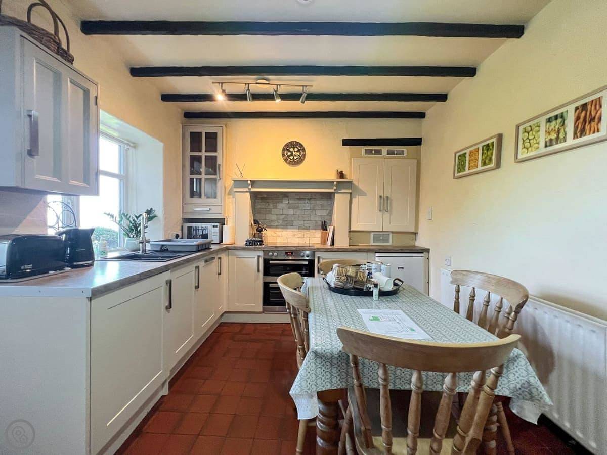 This pretty cottage offers guests accommodation over two floors, although there is also a cellar, where the tumble-dryer and freezer are located. On the ground floor there is a cosy living room with a stone fireplace and open log fire. An initial supply of logs and coal are provided free of charge. Next door there is a dining kitchen. Upstairs there are two separate bedrooms, one with a double bed and one featuring twin beds. The bathroom is also on the first floor. Outside there is a private garden with garden furniture and barbecue. Please note that there are several steps to the main garden area. You are welcome to bring one well-behaved pet to stay with you in Foxglove Cottage, at no extra charge.