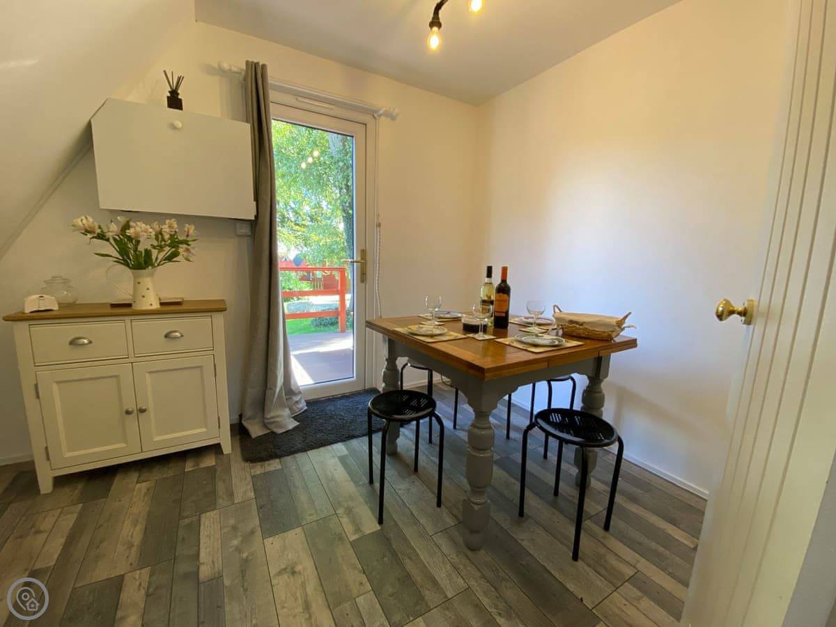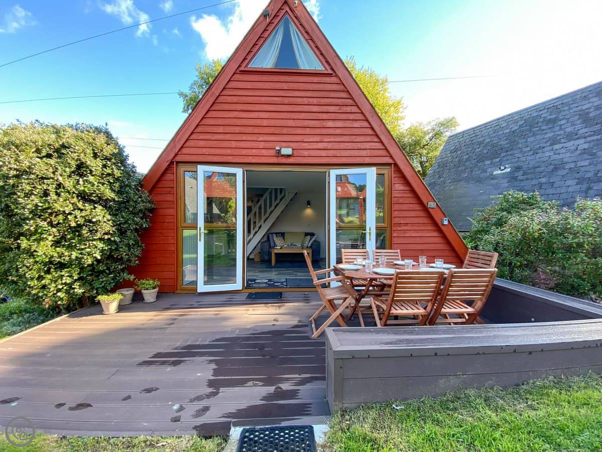 It's a Scandinavian style chalet, so it's wooden and quite compact. The stairs are narrow and a bit steep.