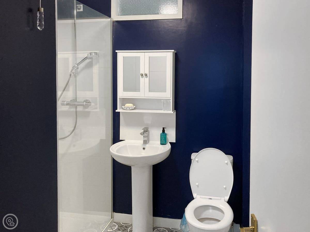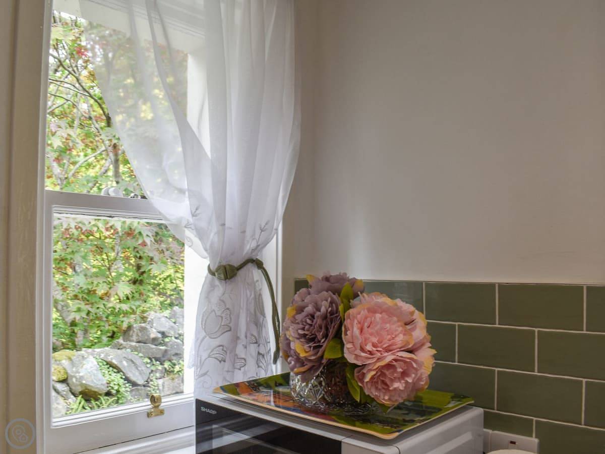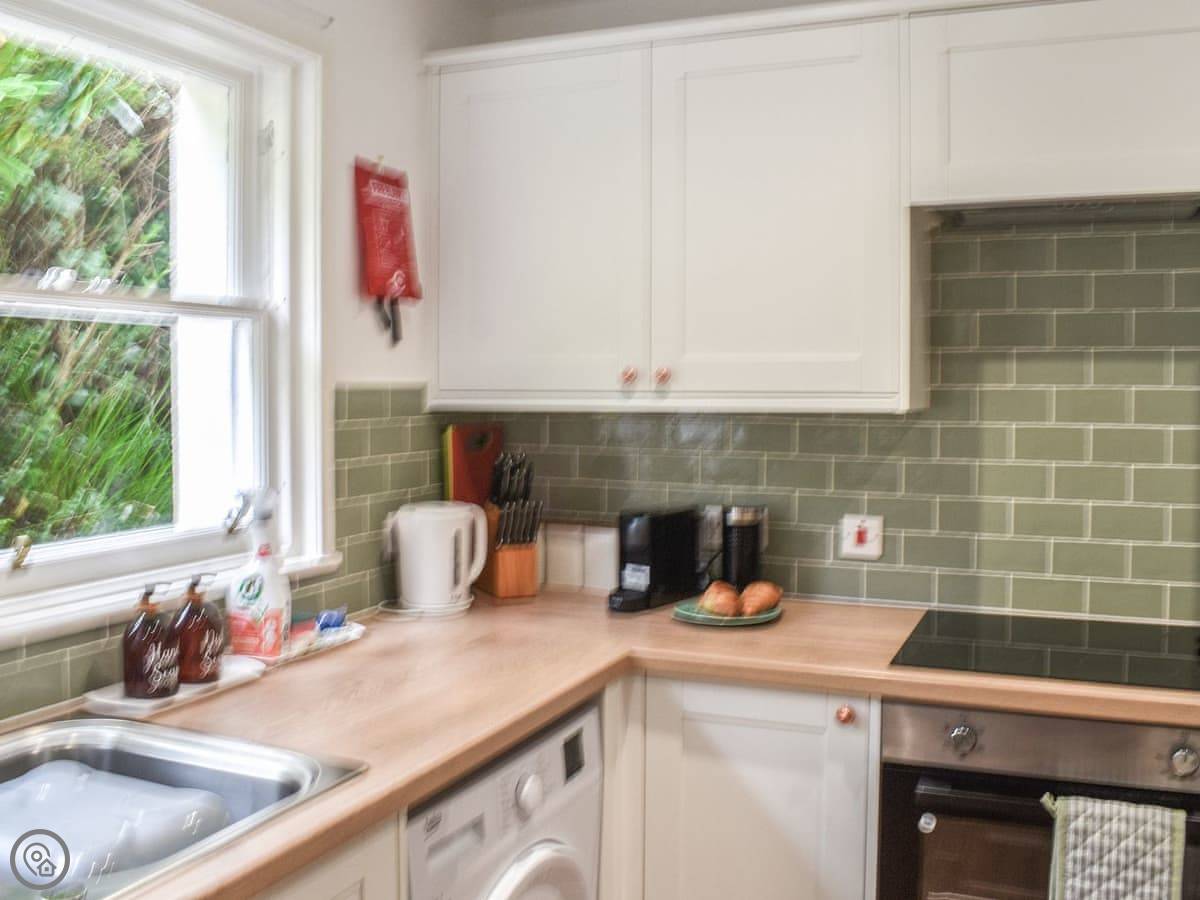 Outside, the garden's got a lawn and a patio. It's full of flowers in the summer. You get the place to yourselves.
