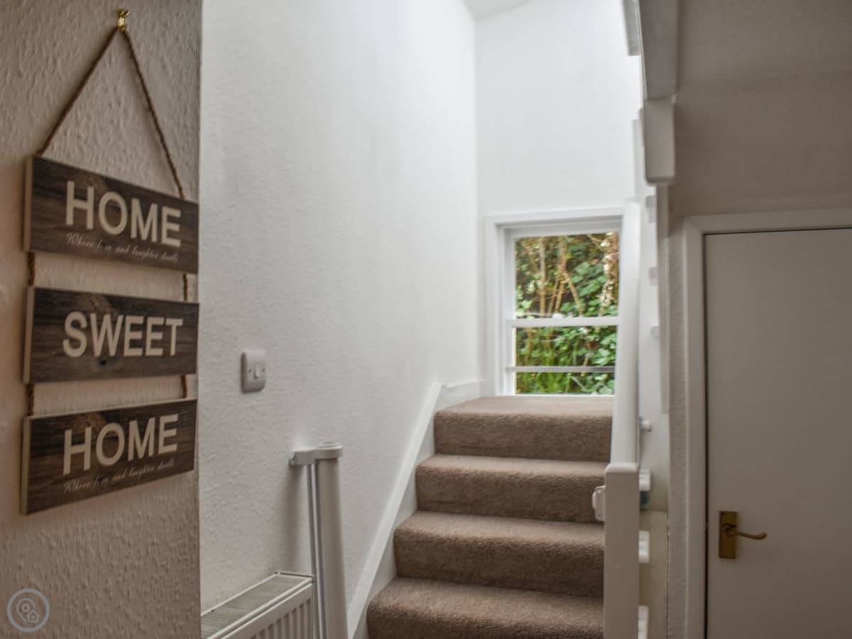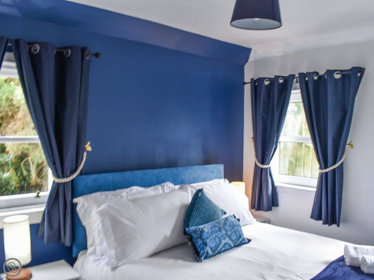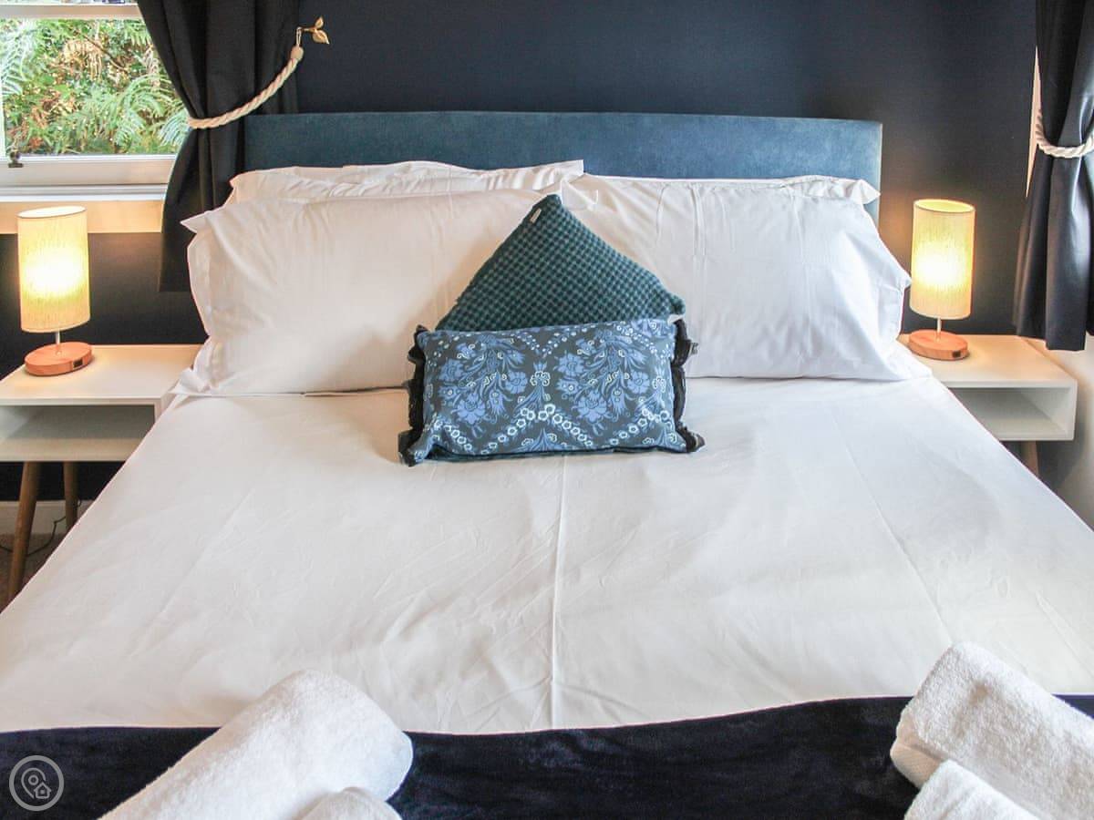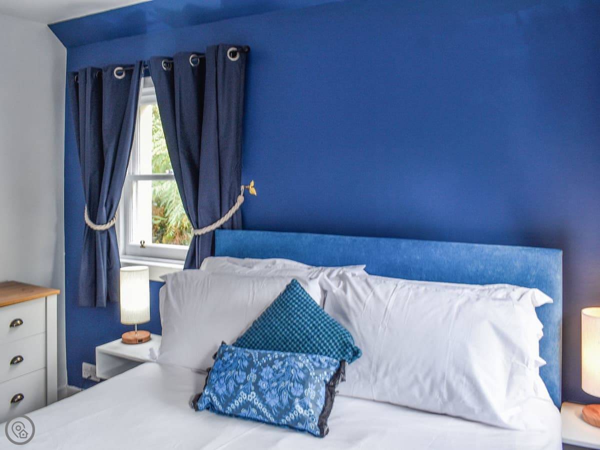 Upstairs is the main bedroom with a king-size bed. The stairs are fine, but they're quite steep, like a proper cottage staircase. We've got a stairgate you can put up if you've got little ones.