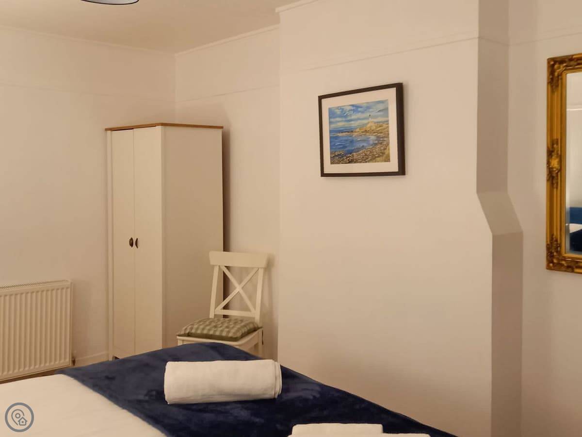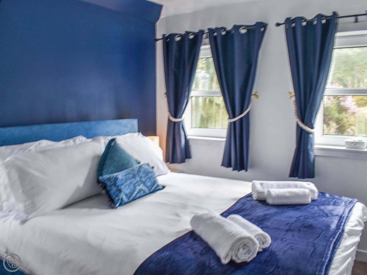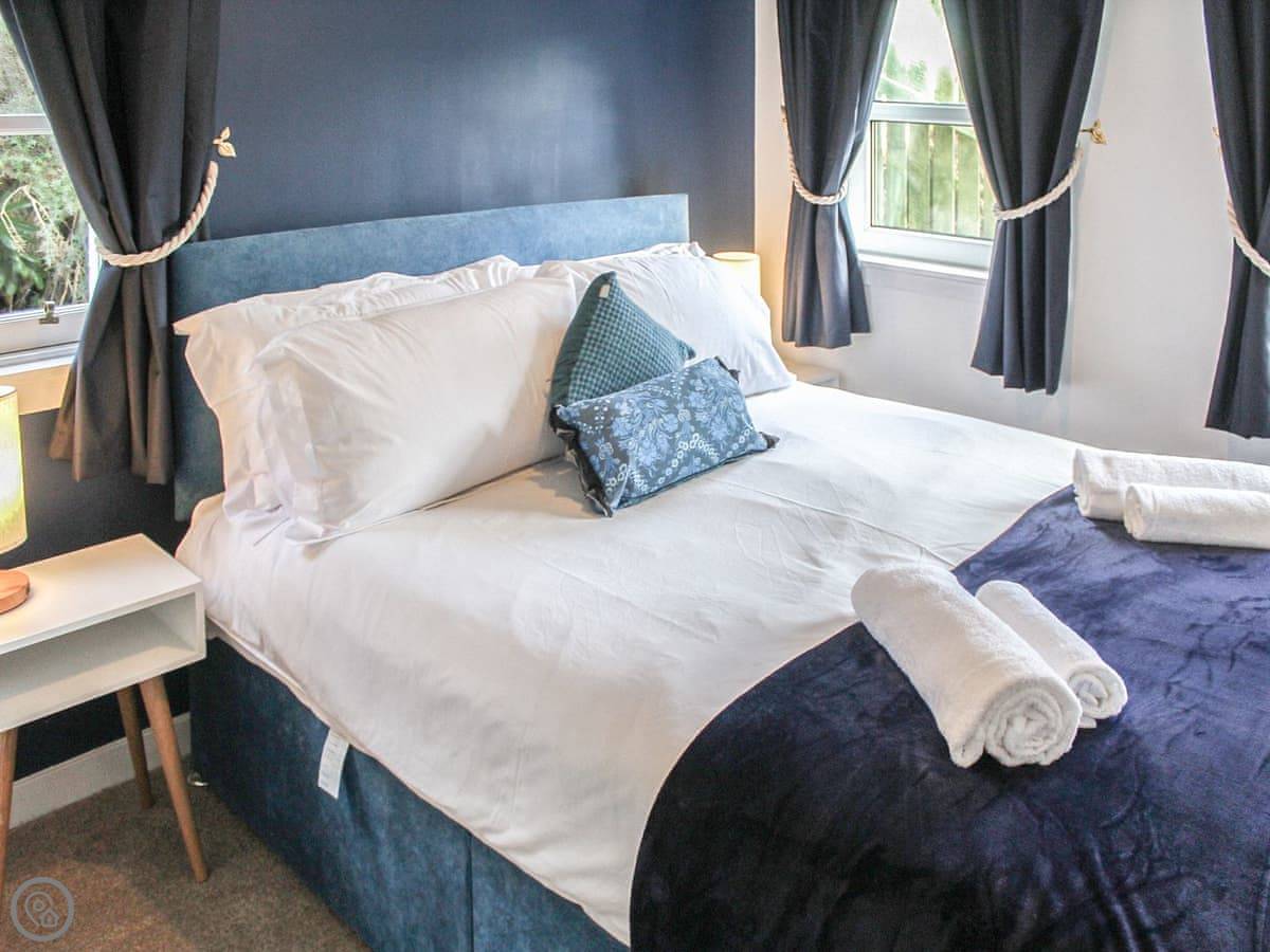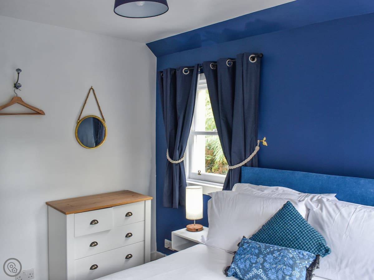 Upstairs is the main bedroom with a king-size bed. The stairs are fine, but they're quite steep, like a proper cottage staircase. We've got a stairgate you can put up if you've got little ones.