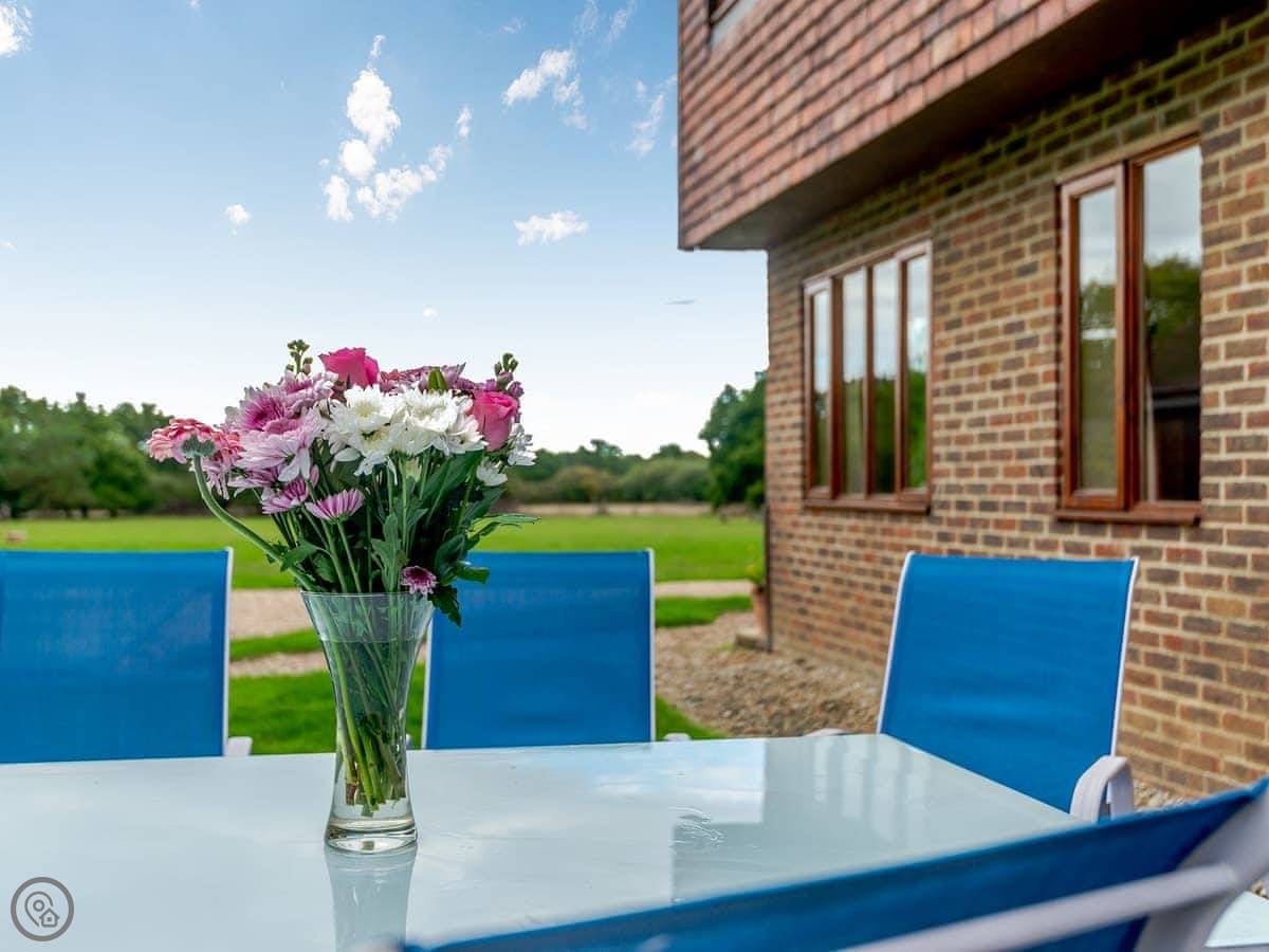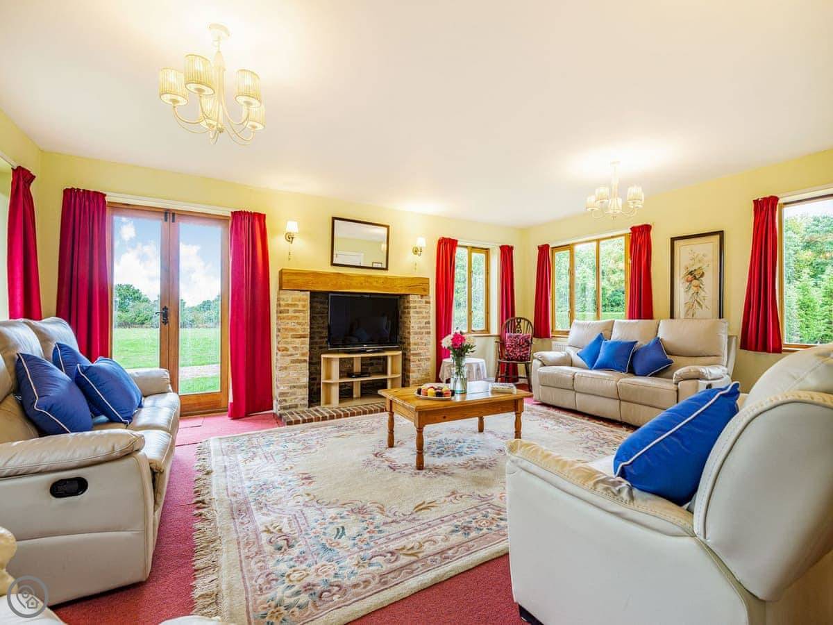 The house sits in about an acre of garden, mostly lawn. You look out over fields. You'll see rabbits and plenty of birds. There's plenty of parking.