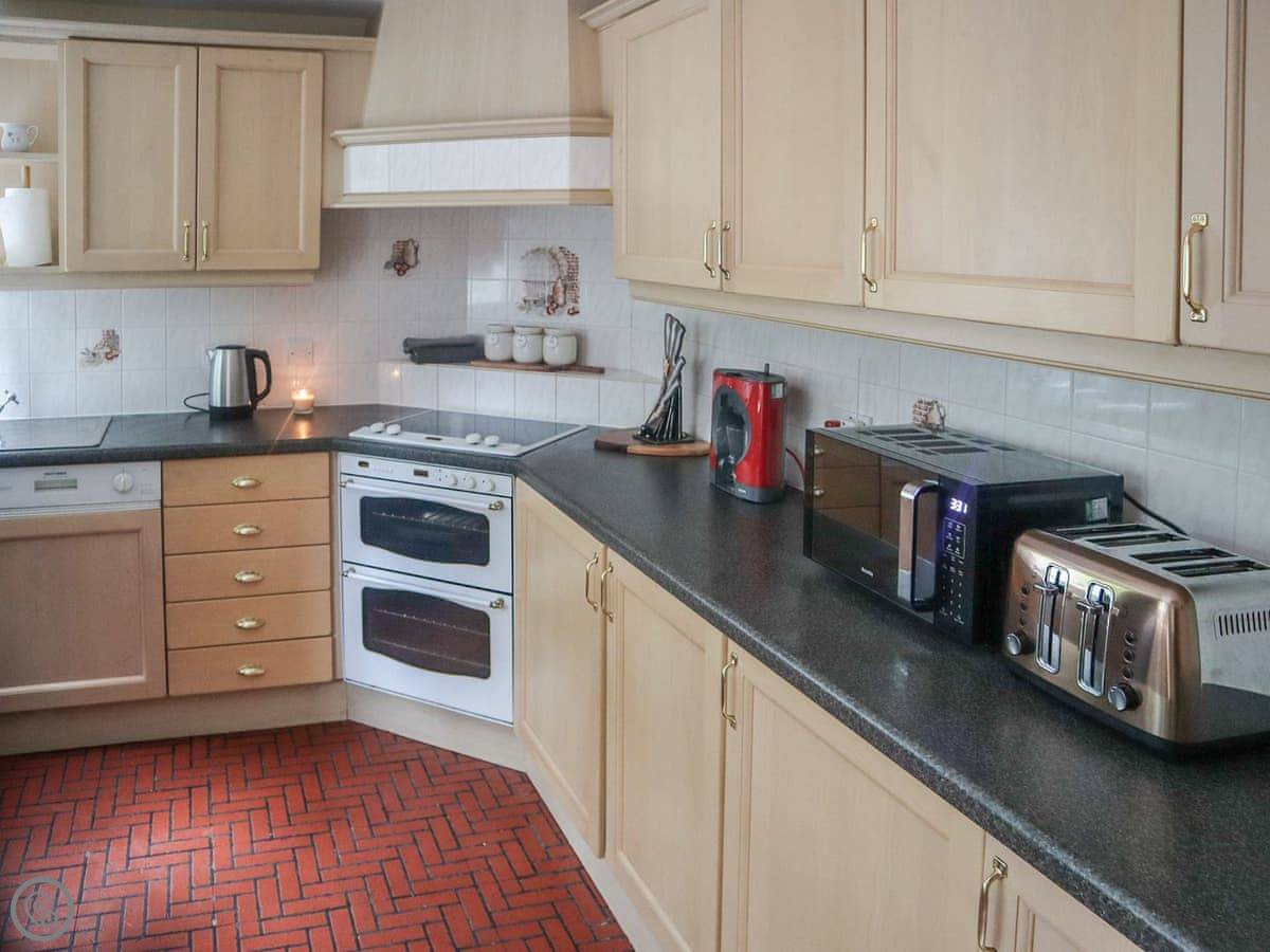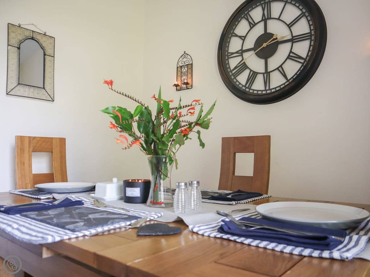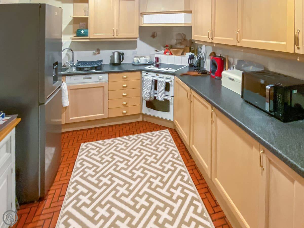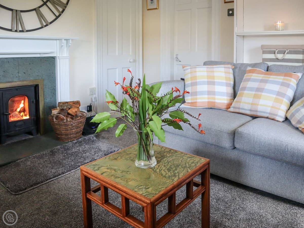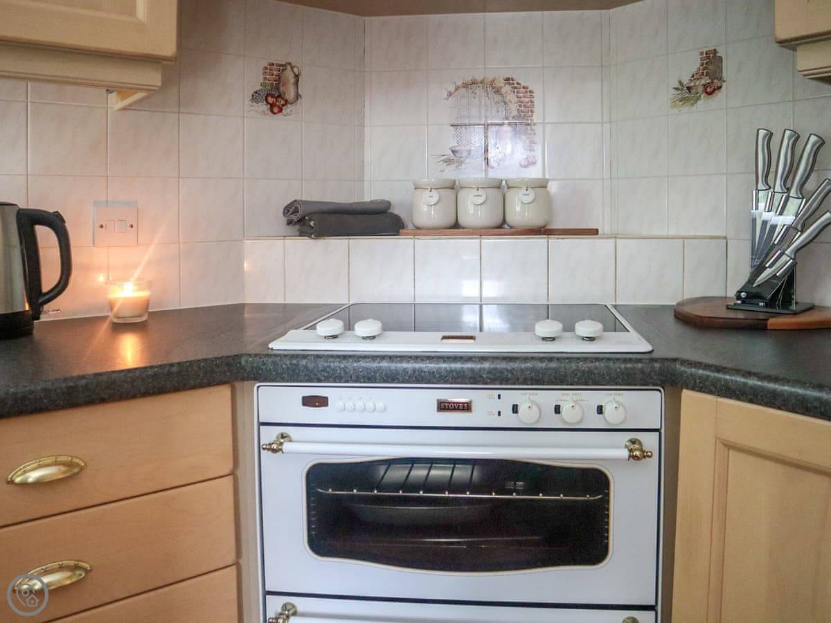 Inside, it’s open plan but with separate areas for living, dining and the kitchen. There’s a woodburning stove for cooler evenings. It has a dishwasher and a washing machine. Parking is right outside.