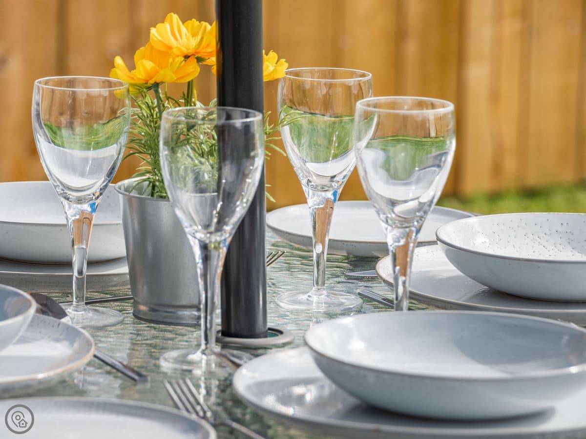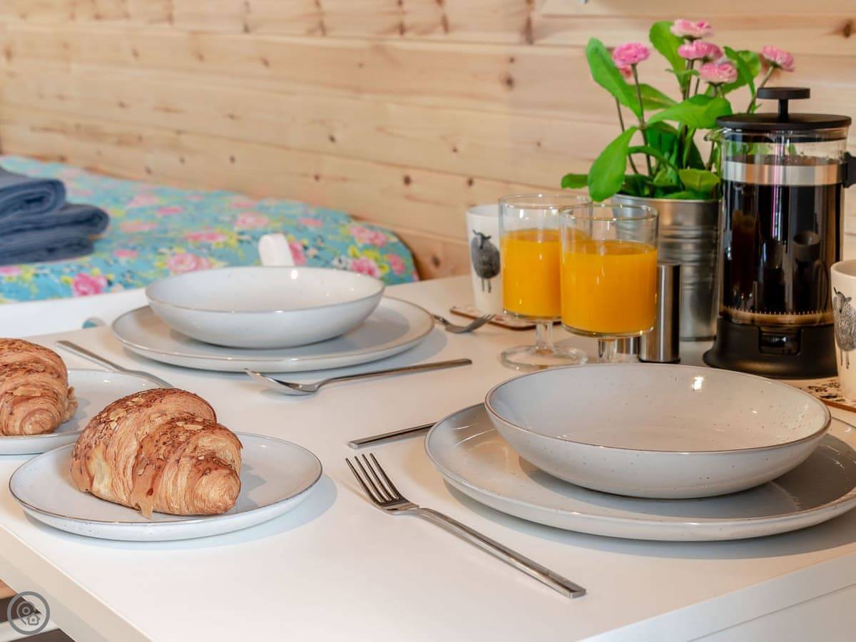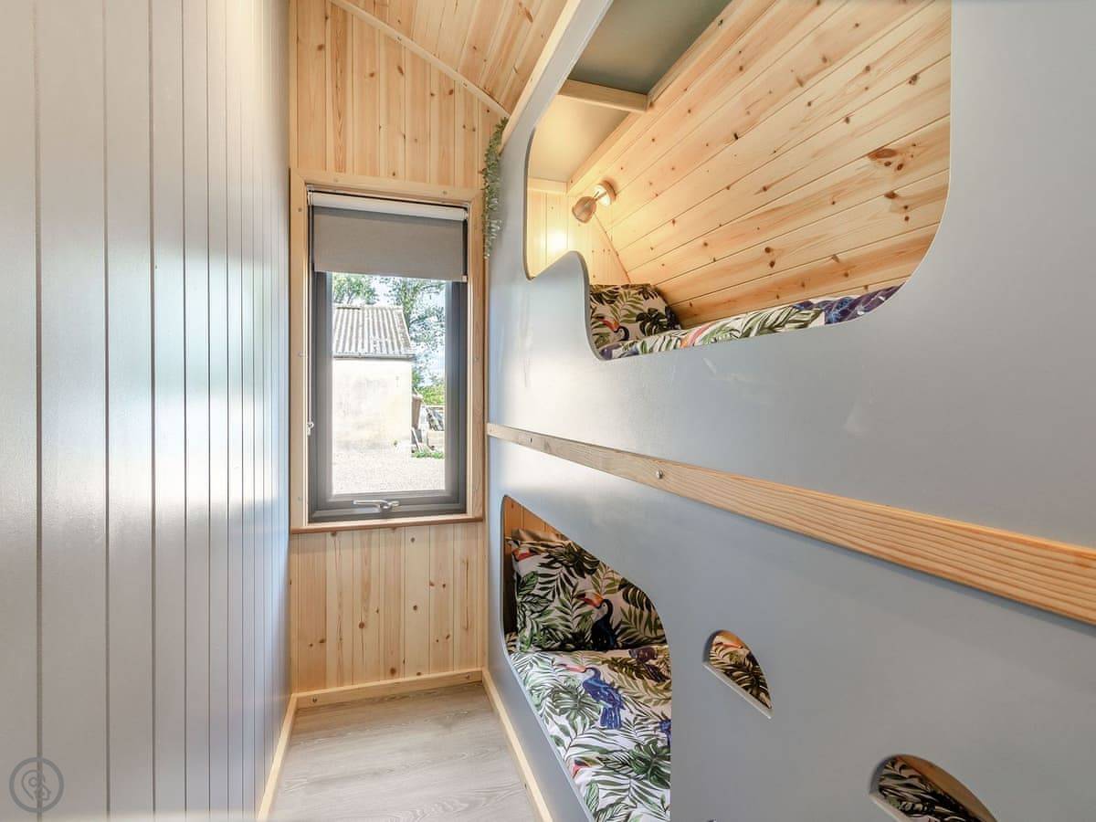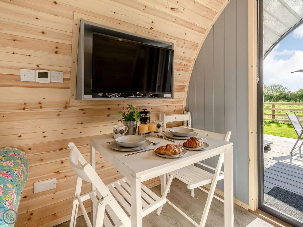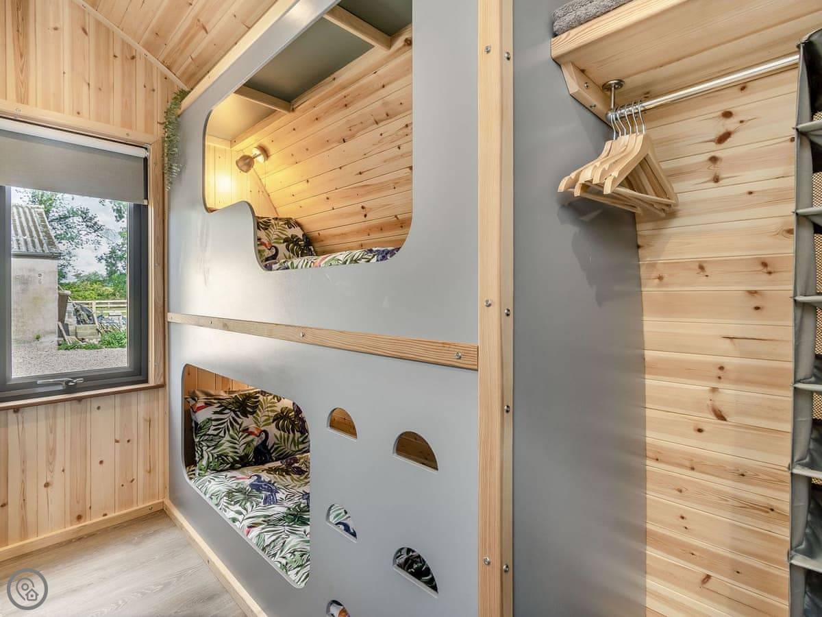 If you are looking for a getaway with a difference, then look no further than the Tamworth. Open plan throughout it features a plush double bed guaranteeing a perfect night’s slumber, a small kitchenette complete with induction hob, fridge with small freezer box, combi microwave oven/grill and plenty of space for food preparation. In addition the living area has a comfortable sofa with a Smart TV and built in Bluetooth speakers throughout. In the next room the pod has a fully fitted shower room with shower cubicle, heated towel rail, sink and toilet. To the rear of the pod there are also bunk beds which are great for children. The delightful, enclosed garden offers a lovely porcelain patio area with a fantastic private hot tub and lawned seating area. This area is a great place to kick back and relax whilst enjoying the views and having a well-deserved glass of fizz! Although just a mile from Thirsk you get a real feel for the countryside.