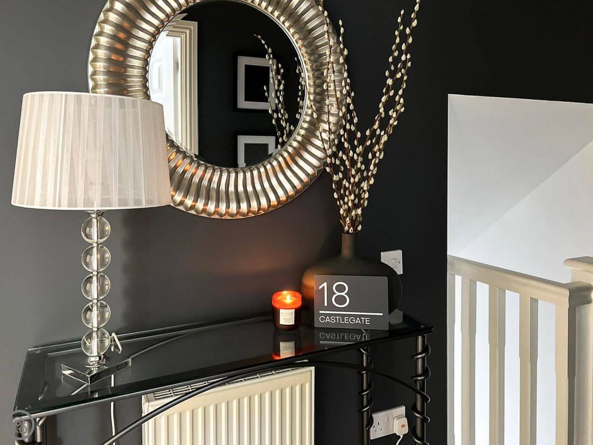 Castlegate is a two bedroom flat on the first floor. The front door is on the street, you go straight up a flight of stairs to get in. It sleeps four.