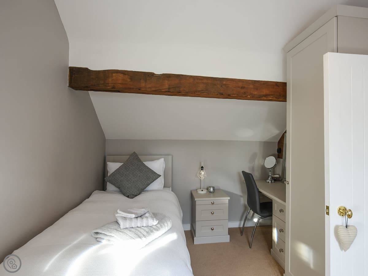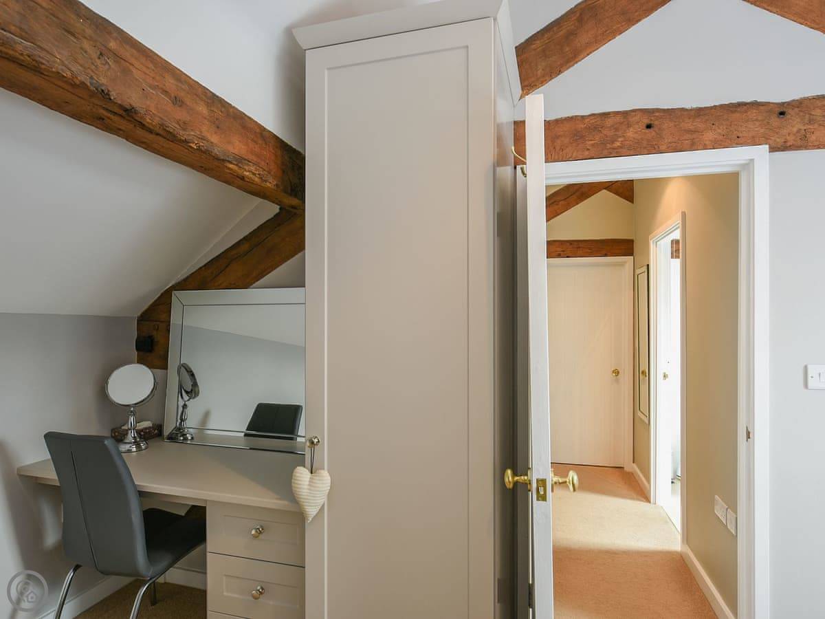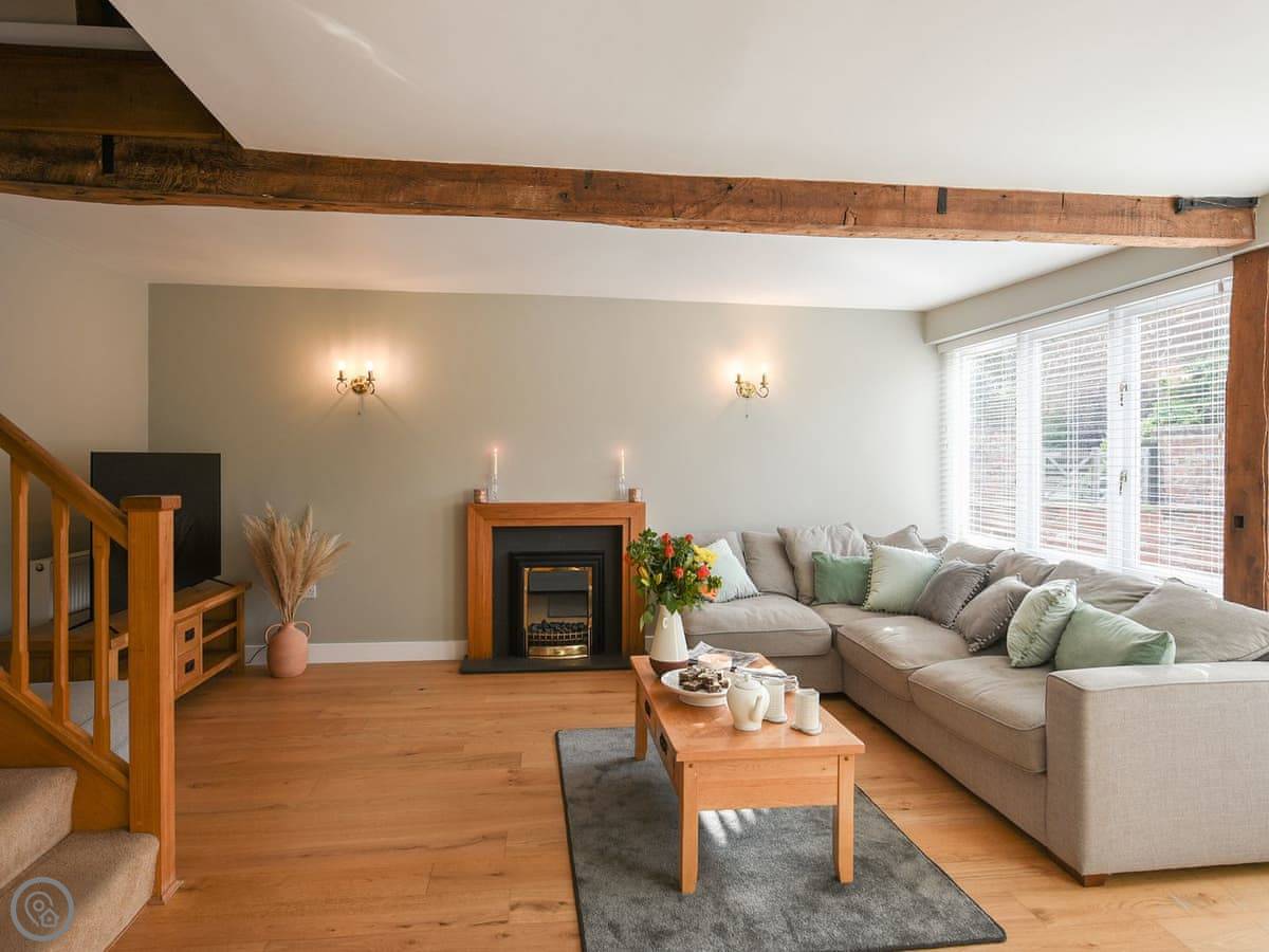 Grove Farm Cottage is a detached cottage on our farm near Condover. The main thing is the view out the back. It looks straight over the fields to the Shropshire hills. You can sit at the kitchen table or out on the patio and just watch the weather change.