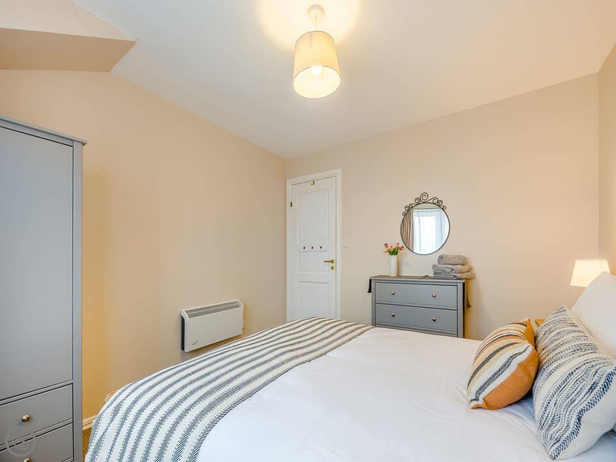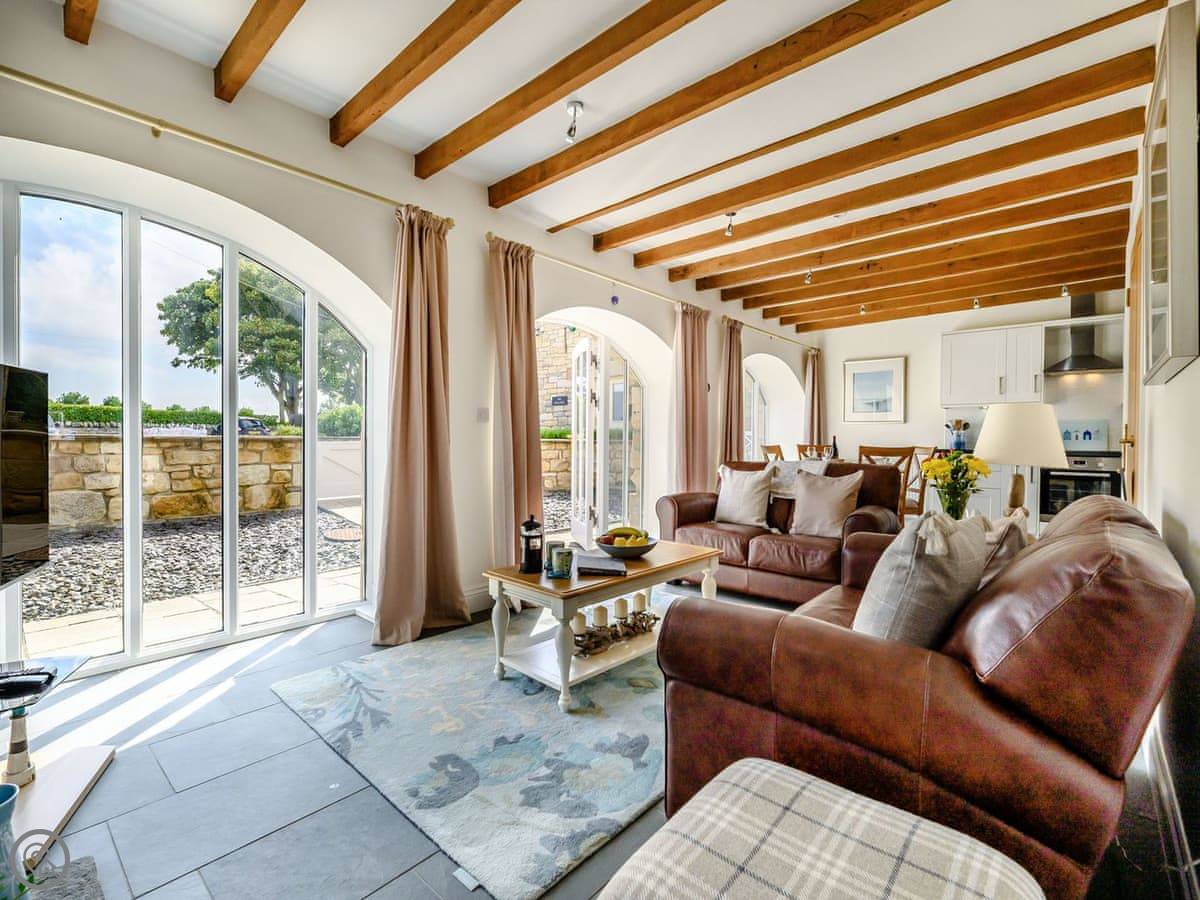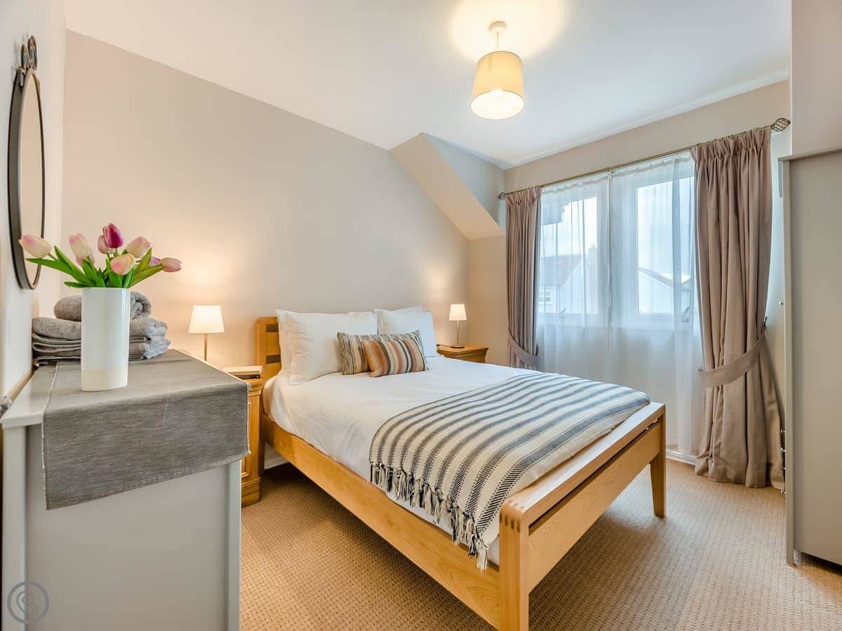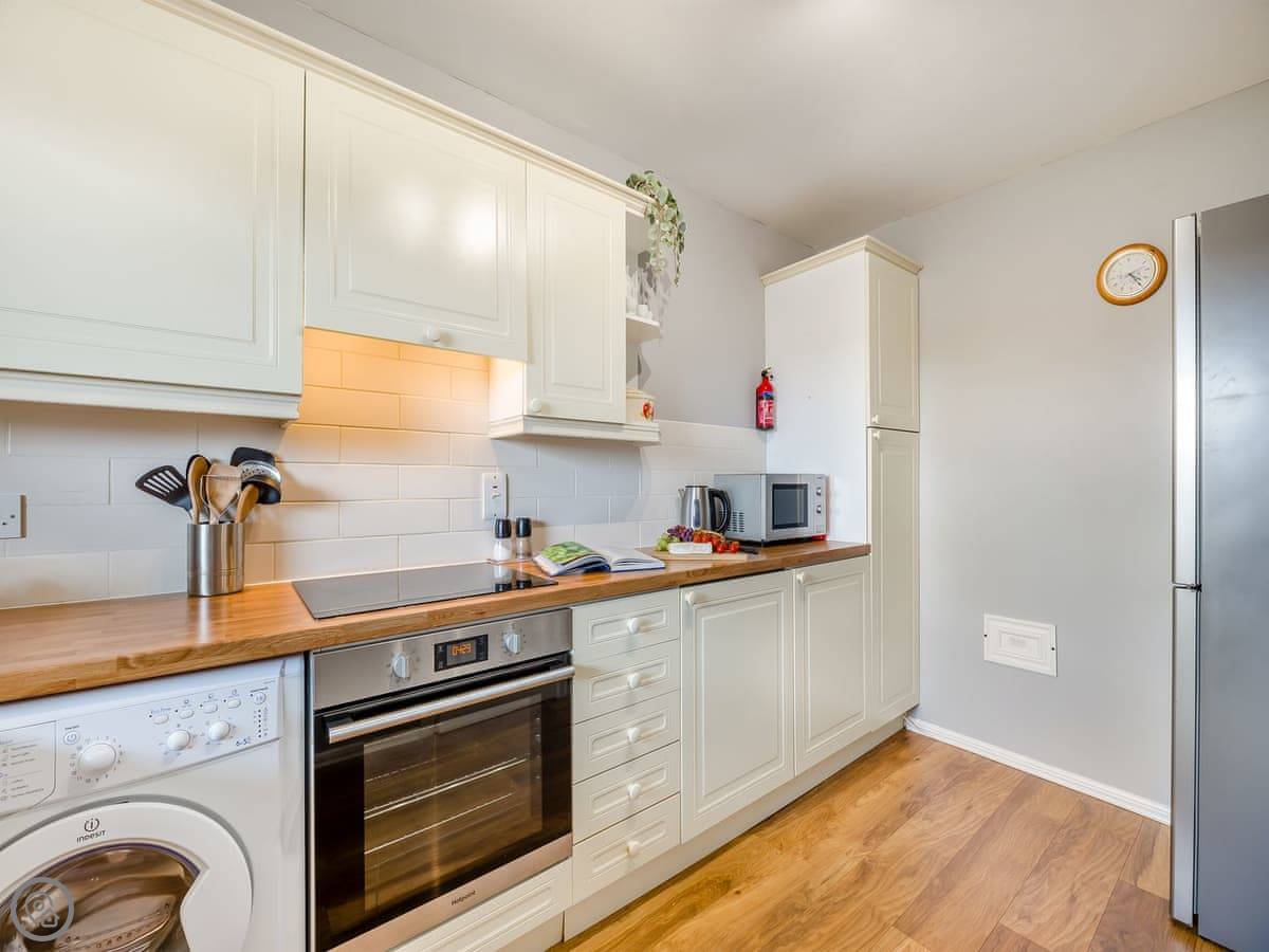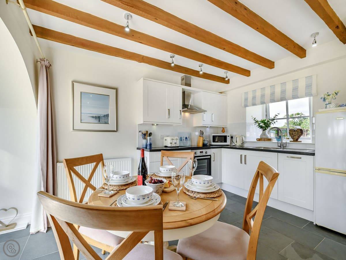 Dunes Court is a first floor apartment nestled amongst similar properties, situated less than 100 yards from the beautiful wide expanses of Beadnell Bay. Beautifully furnished throughout, with lots of thoughtful touches to ensure you have a welcoming and comfortable base to return to after a day of exploring. The communal hallway and stairs lead you up to the apartment. Stepping inside double glass doors open up into the spacious living room, with two large comfy sofas in front of large windows facing the sea. This room is open plan with the dining area, making this an inviting social space. The adjoining kitchen is well equipped, ideal for a self-catering stay. The balcony is the perfect spot to look out to the sea. There are two bedrooms, the master king bedroom as well as a bedroom with a double with a single bunk bed over, making this versatile for two couples as well as families. The apartment is completed with the well-presented bathroom.
