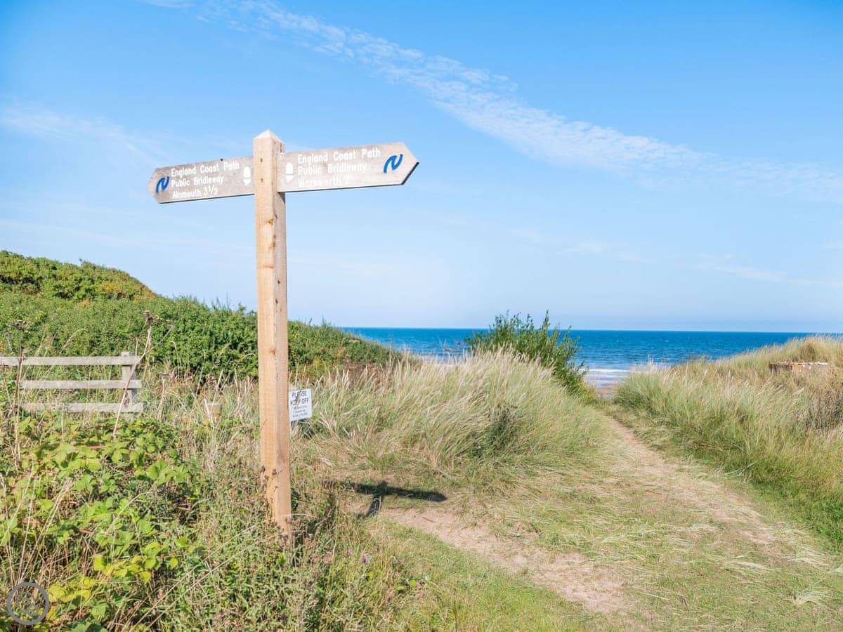 A further 3 miles up the coastline is the picturesque village of Bamburgh, which lies snuggled in the shadow of its majestic fortress and commands the power and presence of the seasoned television set it regularly becomes. Holy Island, the birthplace of Christianity and site of Lindisfarne Castle, can be seen from the unspoilt golden sandy beach. Just a few miles inland is the bustling market town of Alnwick, with its own dramatic castle . Visitors will enjoy a trip to Alnwick Garden, a spectacular interpretation of a formal garden including the Grand Cascade waterfall and restaurant within the largest tree house in Europe! This is a great choice for dog owners as many of the beaches, cafes and pubs in this area are dog friendly, and there are some incredible walks from your doorstep to discover. All year round this is a great destination, whether you wish to walk bare foot along the beach in the balmy sunshine, or watch in awe as waves whip the sea into a foaming frenzy, here at Dunes Court you can even hear the sea from your windows. Beach 100 yards. Pub and restaurant 150 yards.