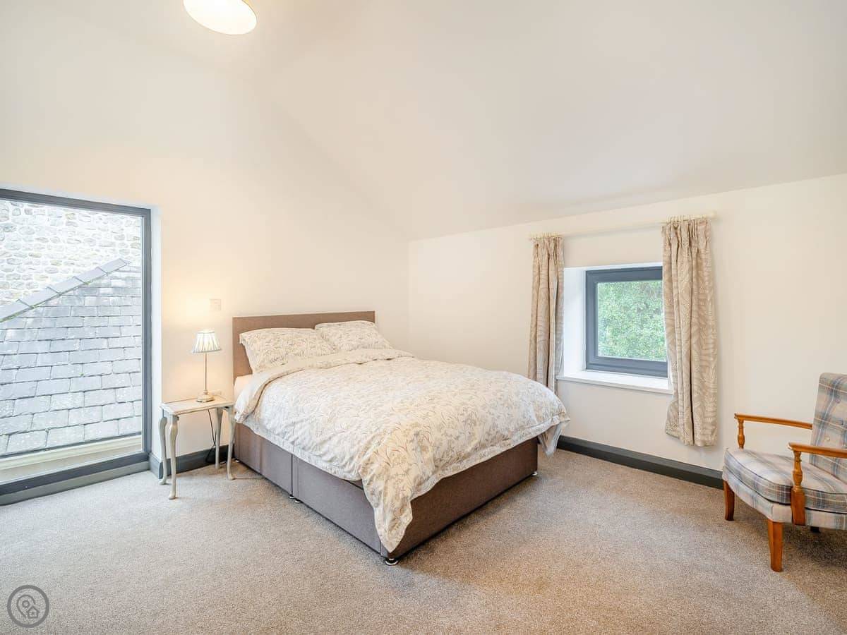 It sleeps four. Two large double bedrooms, both with their own en-suite shower rooms. That's handy if you're two couples, or if you've got teenagers who take ages in the bathroom. The stairs are standard.