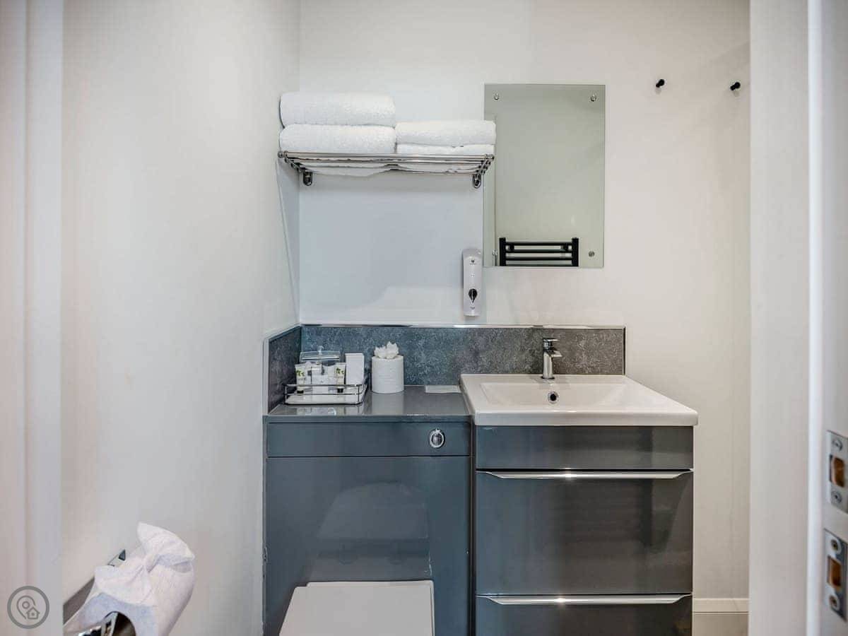 As for the cottage itself, it's all on one level which makes it easier. There's a step up to the front door but it's not much. You get a parking space right outside. The living area looks out over the river, which is nice. It's got what you'd expect, WiFi, TV, dishwasher, all the bedding and towels. It's set up so you can just arrive.