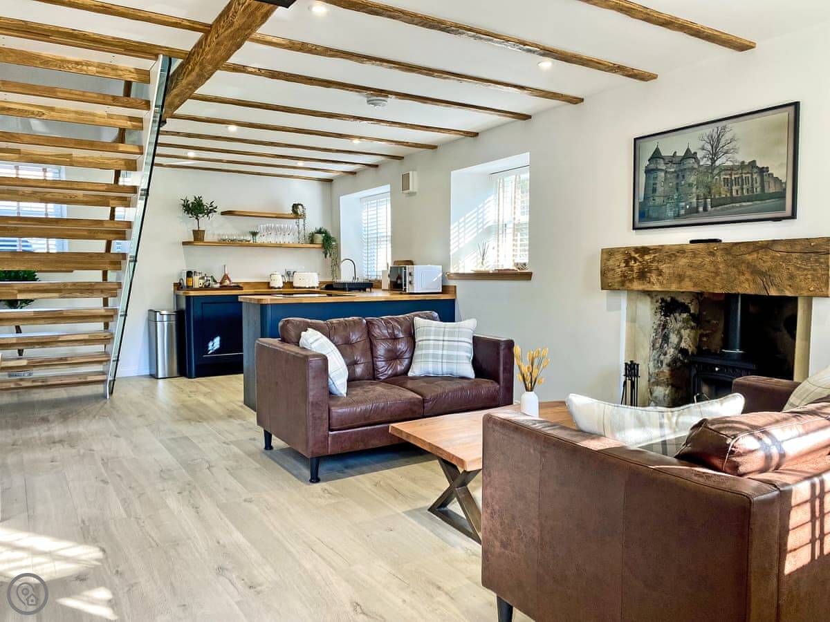 Ivy Cottage is a charming, two-bedroom cottage just a minute’s walk from the heart of the stunning royal village of Falkland and the impressive Falkland Palace and Gardens. Finished to a very good standard in 2022, it has a fantastic open plan living space with underfloor heating and a feature wood burner for colder winter months, as well as a fully fitted modern kitchen area in keeping with the charm and character of this ‘chocolate box’ village. Heading up the open tread stairs, you can choose from either a kingsize bedroom that can be adapted into a twin, or a double room with a modern shower room next to it.