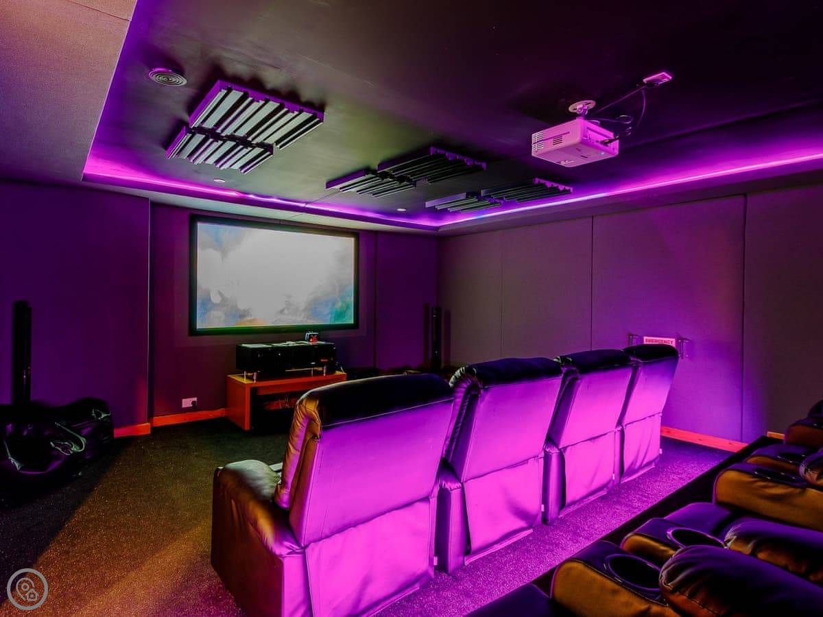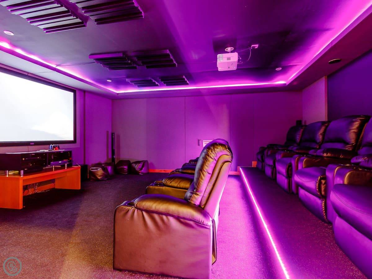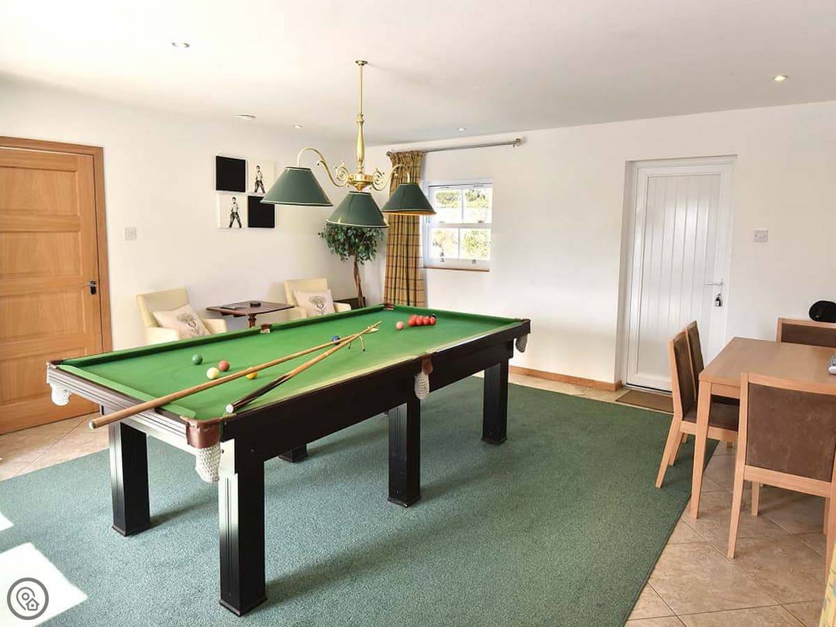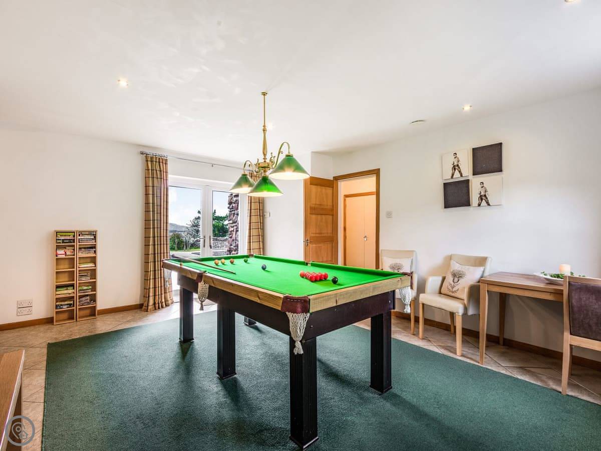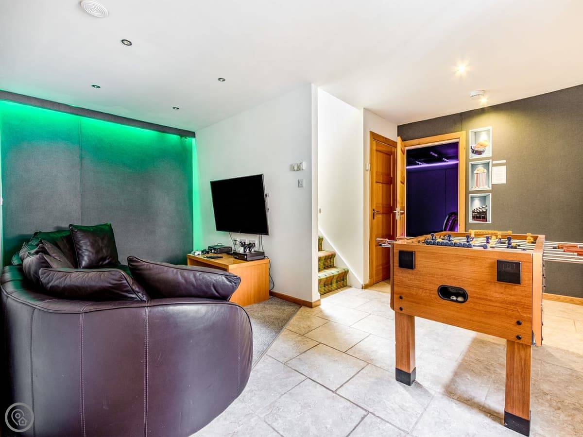 There's also a cinema room with nine reclining chairs, and a games room with a snooker table, table football, and games consoles. Plenty of board games and books around.