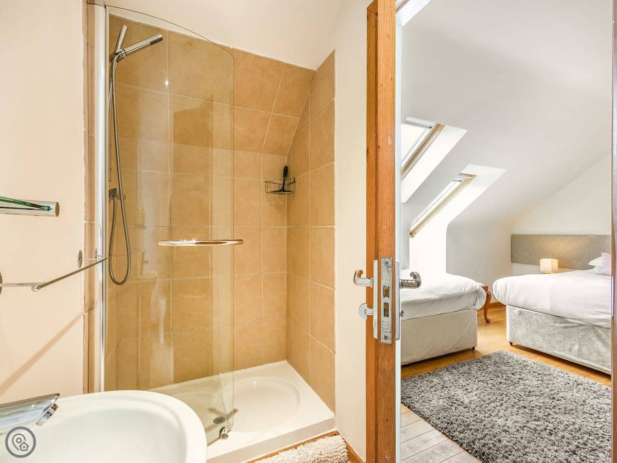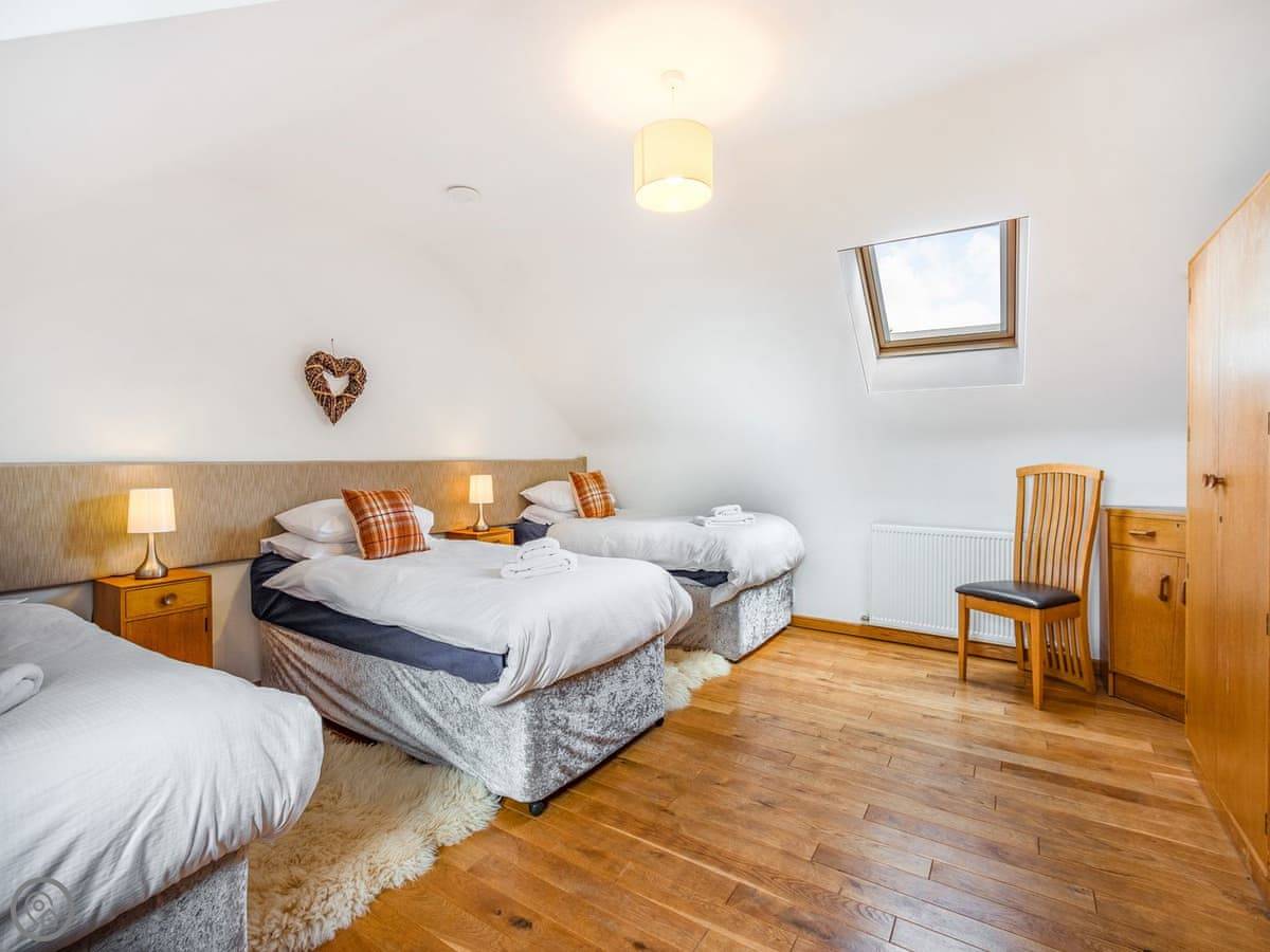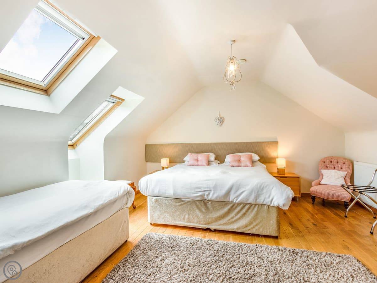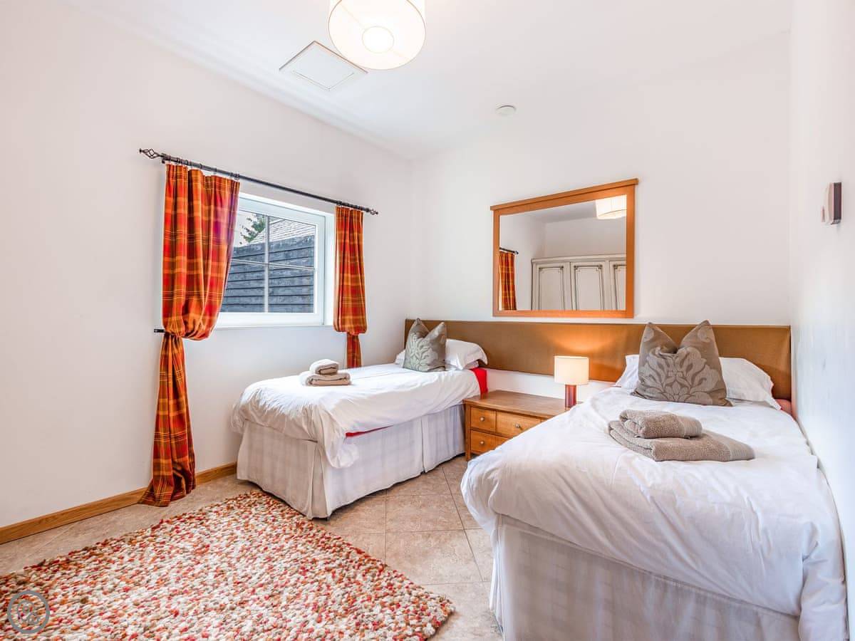 One twin bedroom and a wet room are on the ground floor. They're wheelchair accessible. The rest of the bedrooms are upstairs. There's a mix: super king rooms, twins, a family room, a triple, and a single. One bathroom has a whirlpool bath.