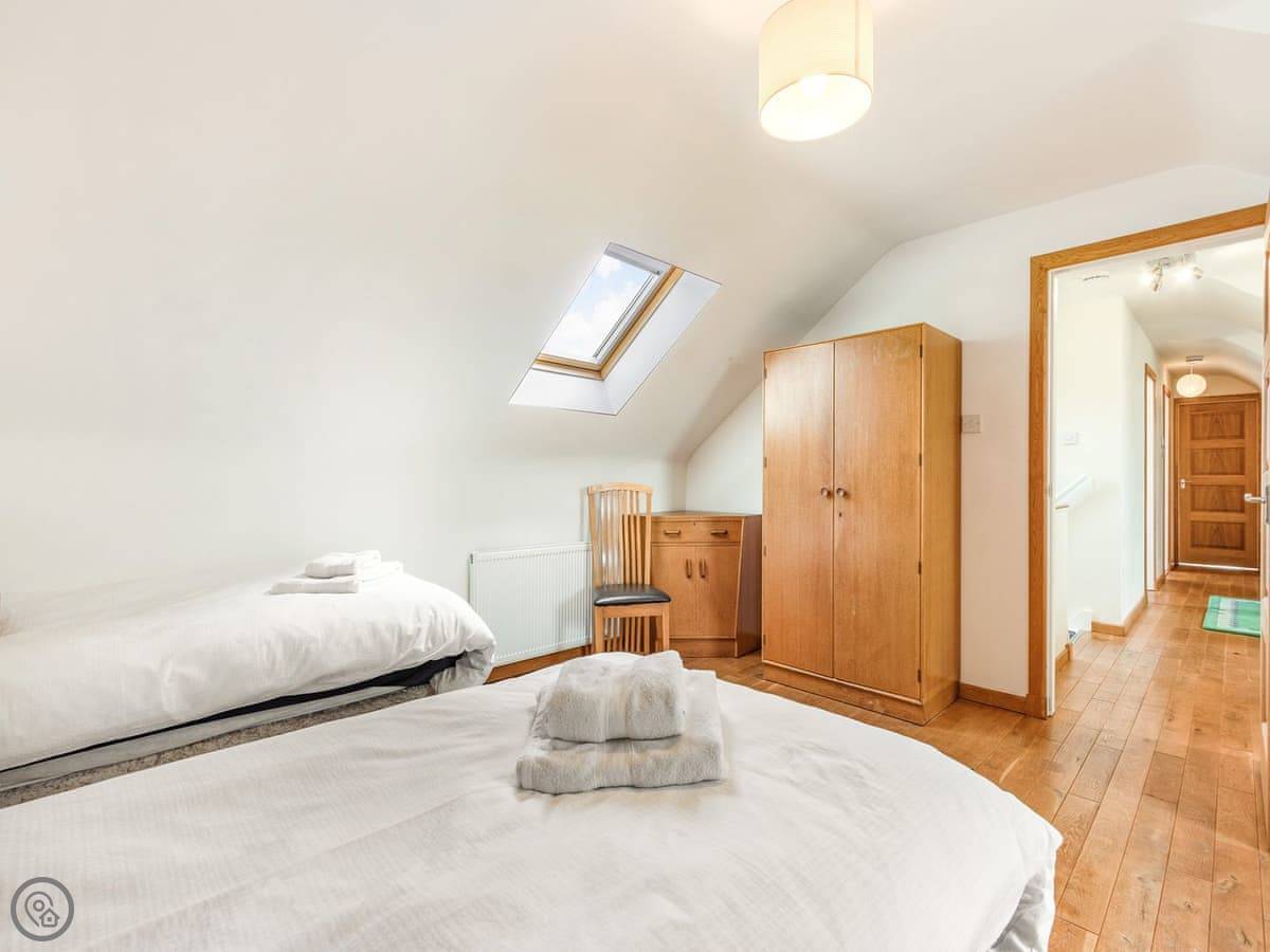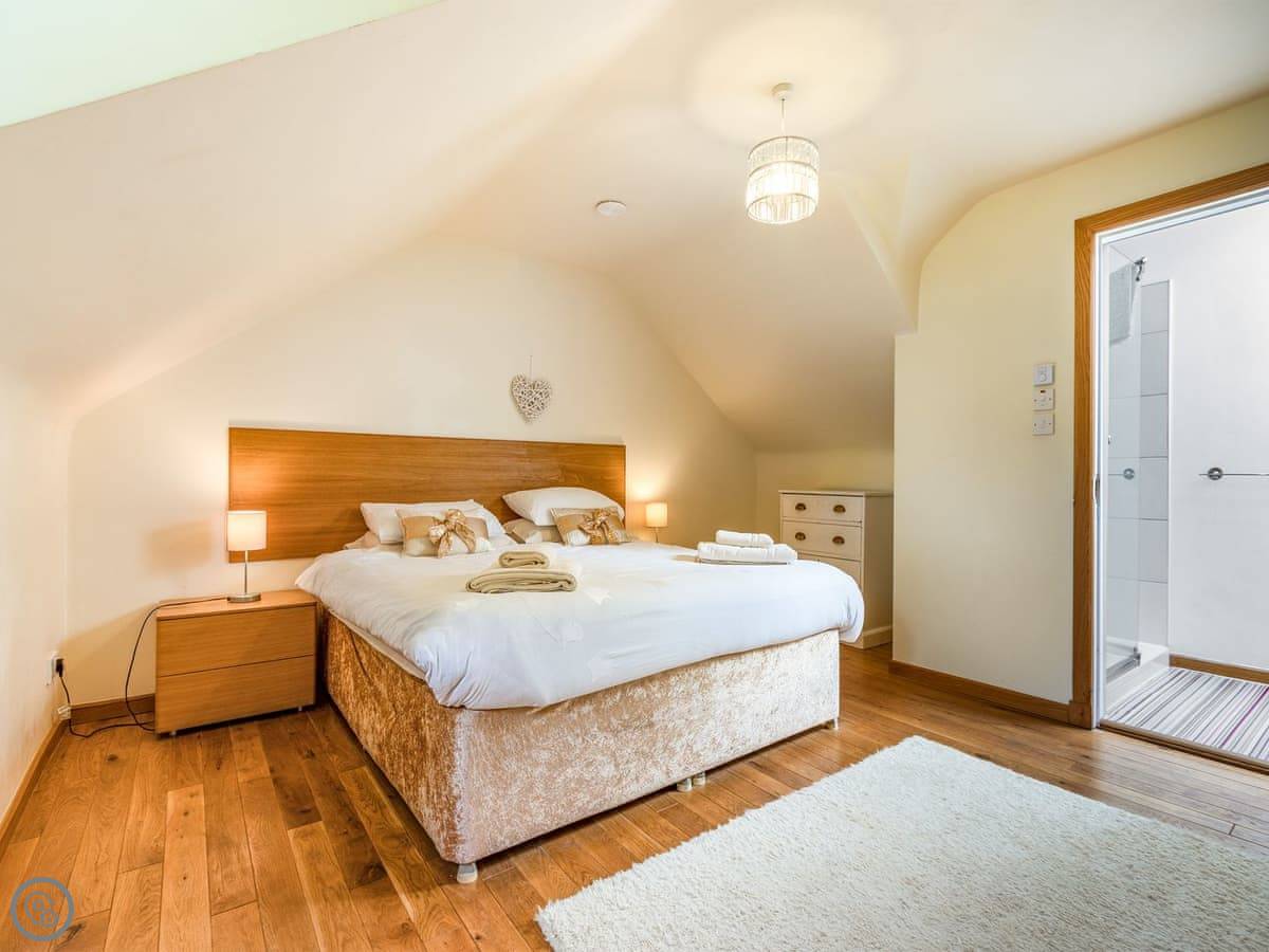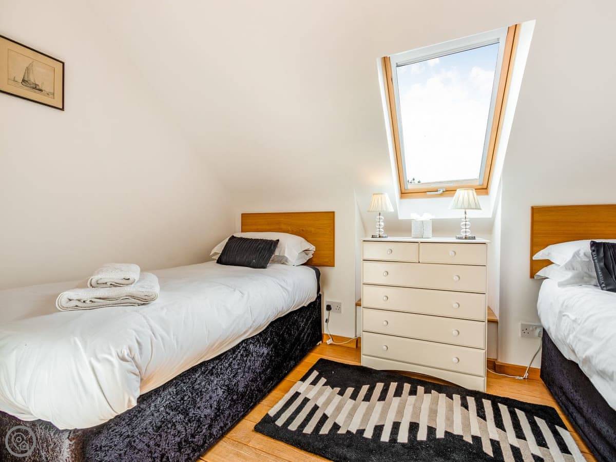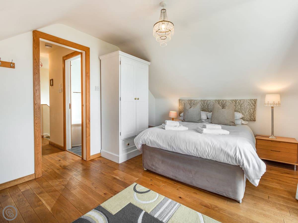 One twin bedroom and a wet room are on the ground floor. They're wheelchair accessible. The rest of the bedrooms are upstairs. There's a mix: super king rooms, twins, a family room, a triple, and a single. One bathroom has a whirlpool bath.