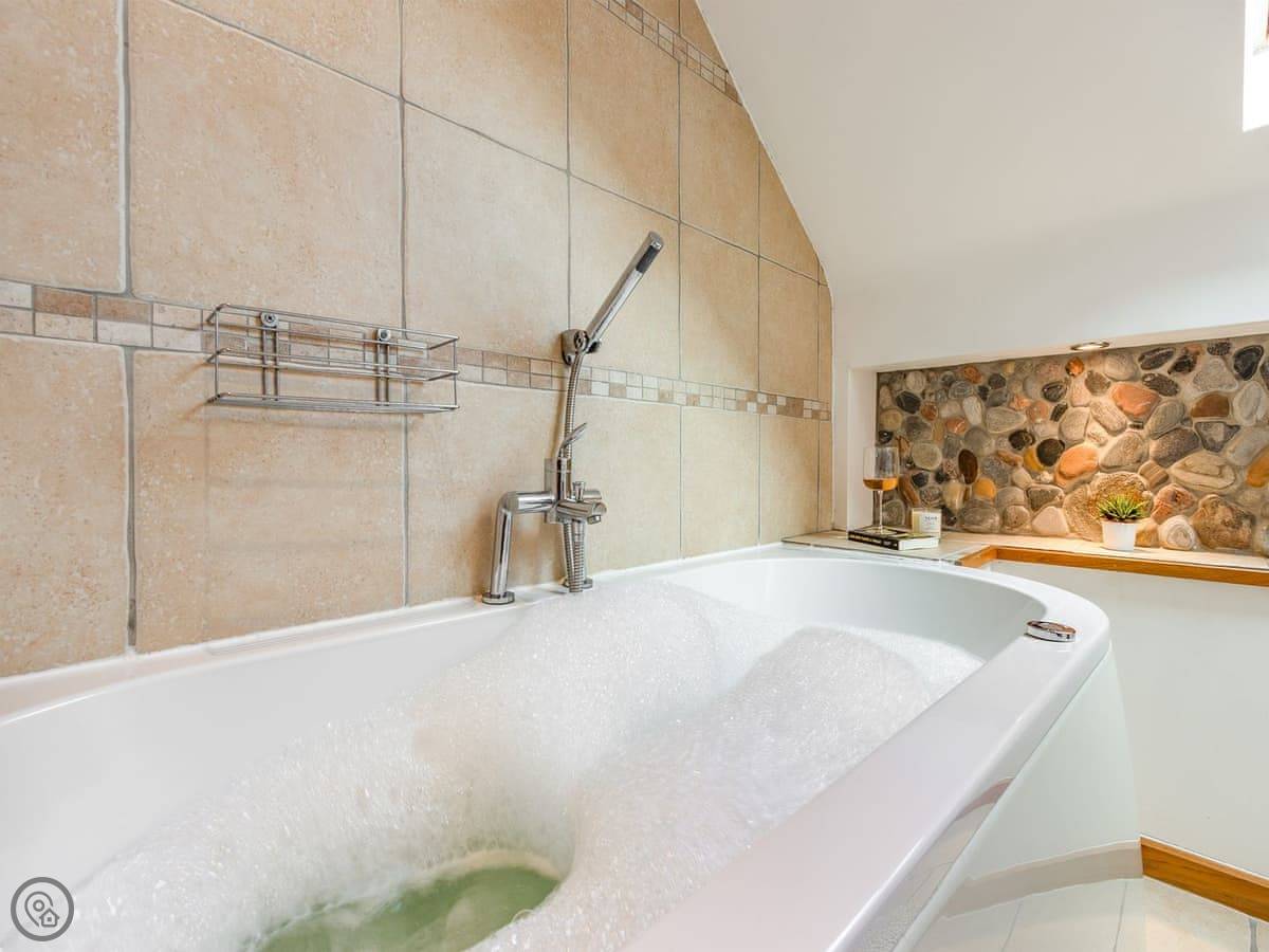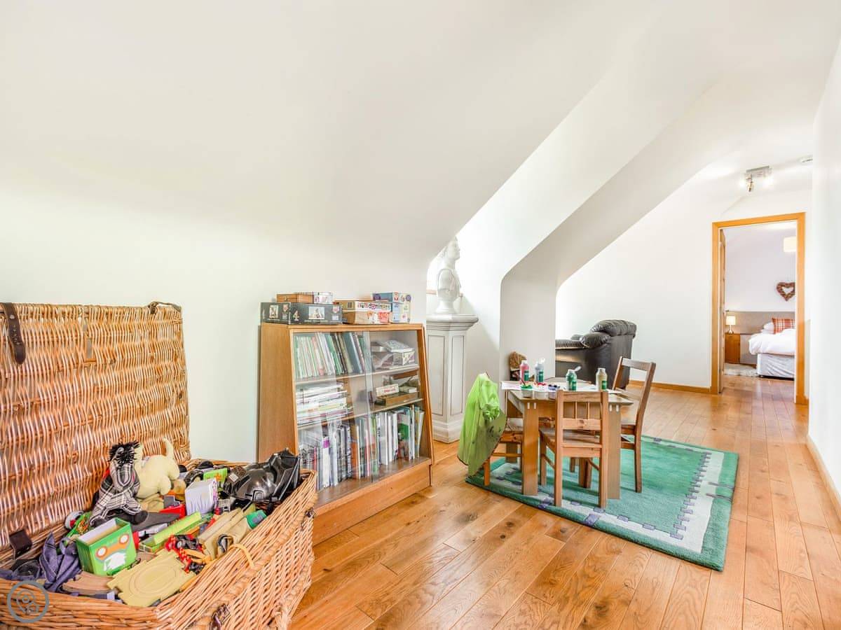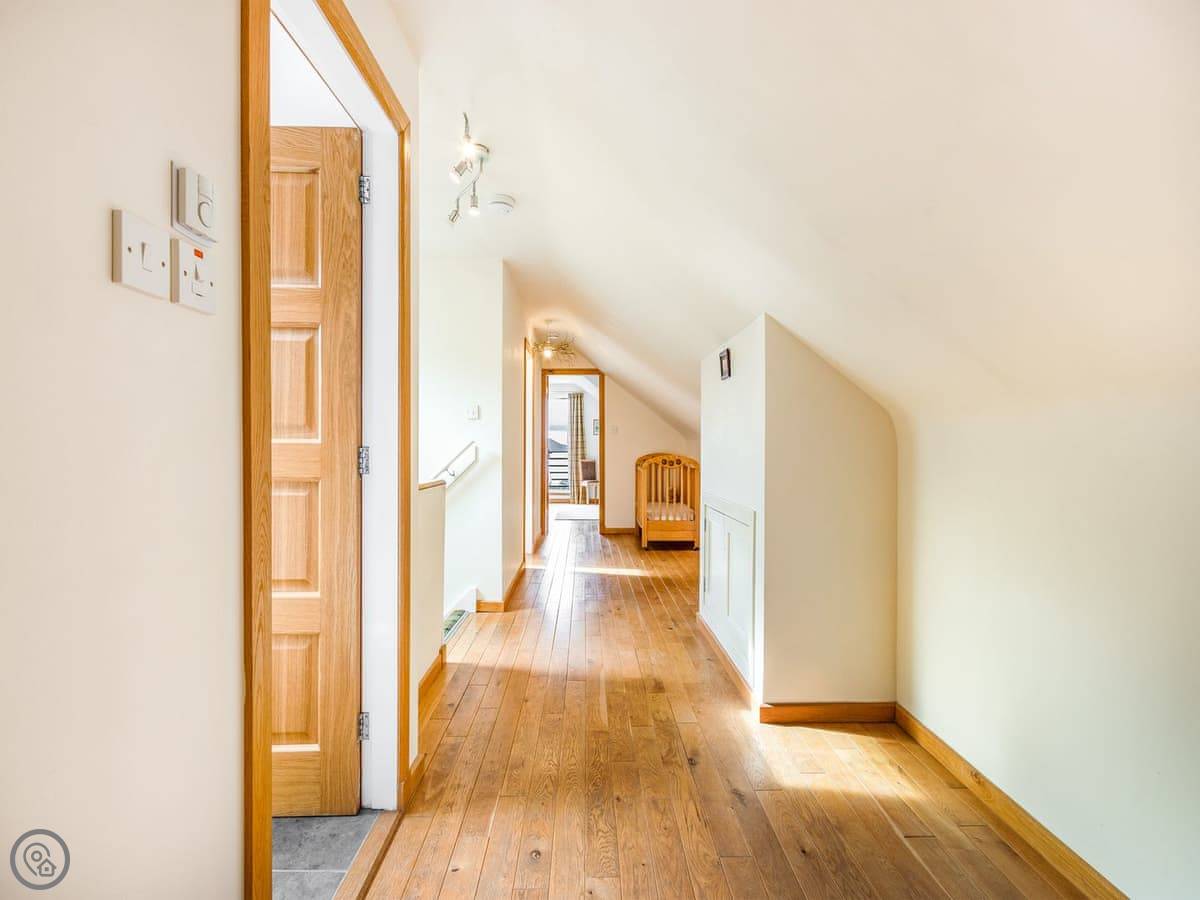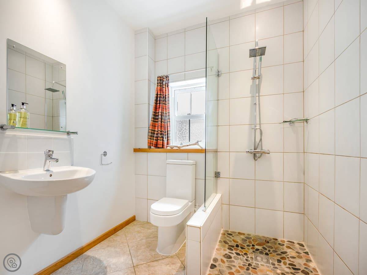One twin bedroom and a wet room are on the ground floor. They're wheelchair accessible. The rest of the bedrooms are upstairs. There's a mix: super king rooms, twins, a family room, a triple, and a single. One bathroom has a whirlpool bath.