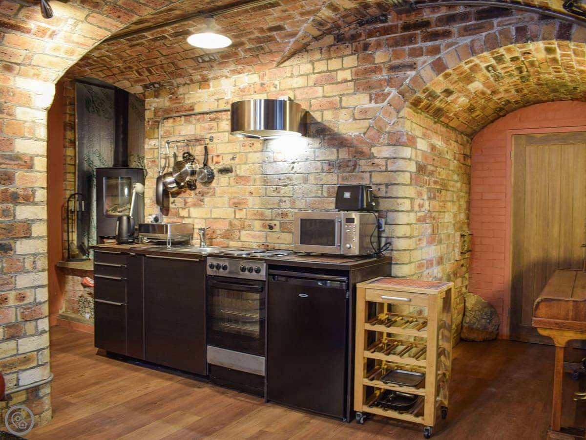 As you enter the property, you come into a fantastic open-plan living, dining and kitchen space. There are two lovely comfortable sofas and a large snooker table that doubles up as the dining table, perfect for working from and enjoying evening meals, along with a small double sofa bed should you have an extra guest come and stay. The wood burner radiates heat throughout The Armoury. At one end of the open-plan living space is a shower room and at the other end a large kingsize bedroom. As this is part of a historical monument, part of the outside is open to the public as they come to view the old canon placement. There is a beautiful garden that is set within the owner’s grounds but has been allocated for guests where they can enjoy the beautiful sea views.