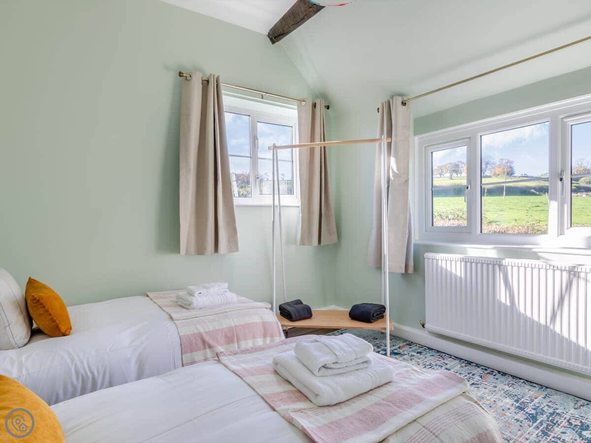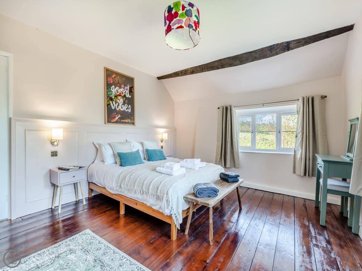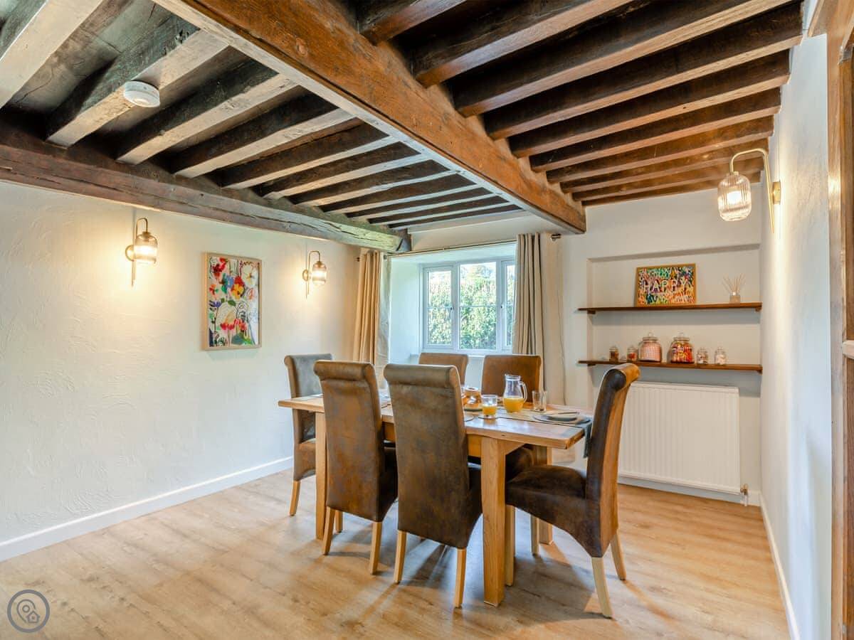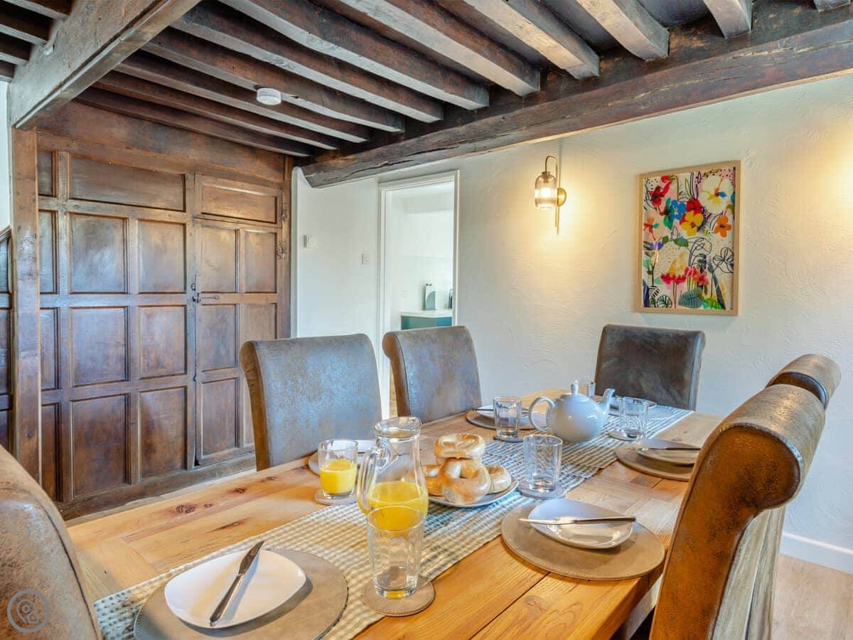 The stunning dining room has original oak panelled walls and beamed ceilings, while the living room has dual aspect windows, beams, comfy seating and electric wood burner. Upstairs you will find three spacious bedrooms, one being a twin and the other two having king sized beds, the master bedroom has wonderful views over the fields beyond. The bathroom has a bath with shower over and heated towel rail.
