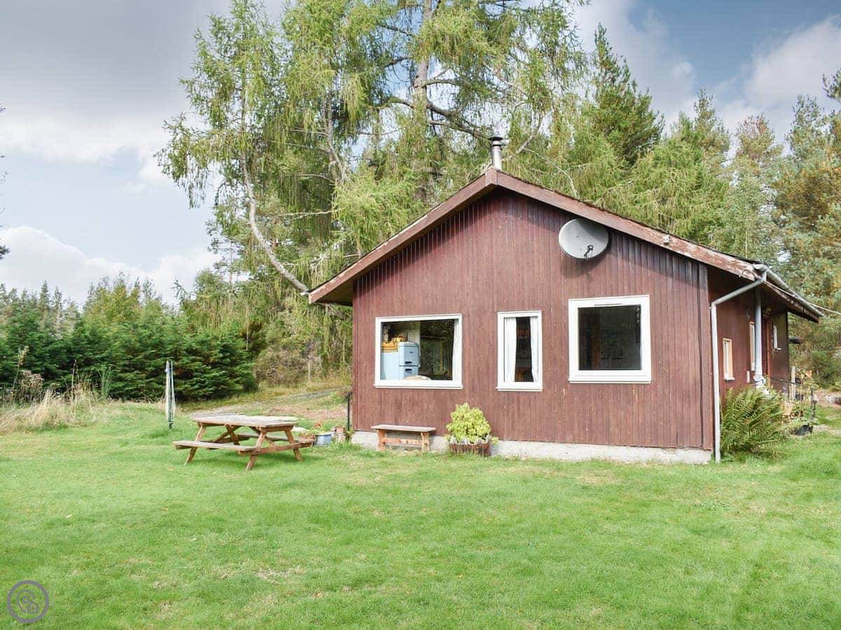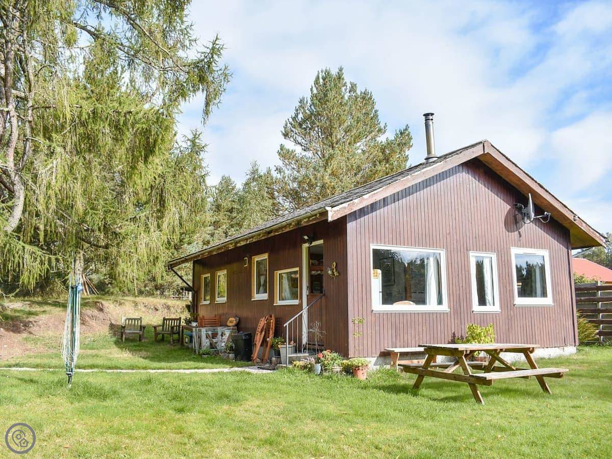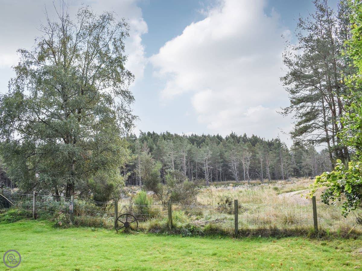 The Chalet is at Mondhuie, which is near Duackbridge in the Highlands. It's tucked in at the forest end of the garden. You can watch the woods from the stable door.