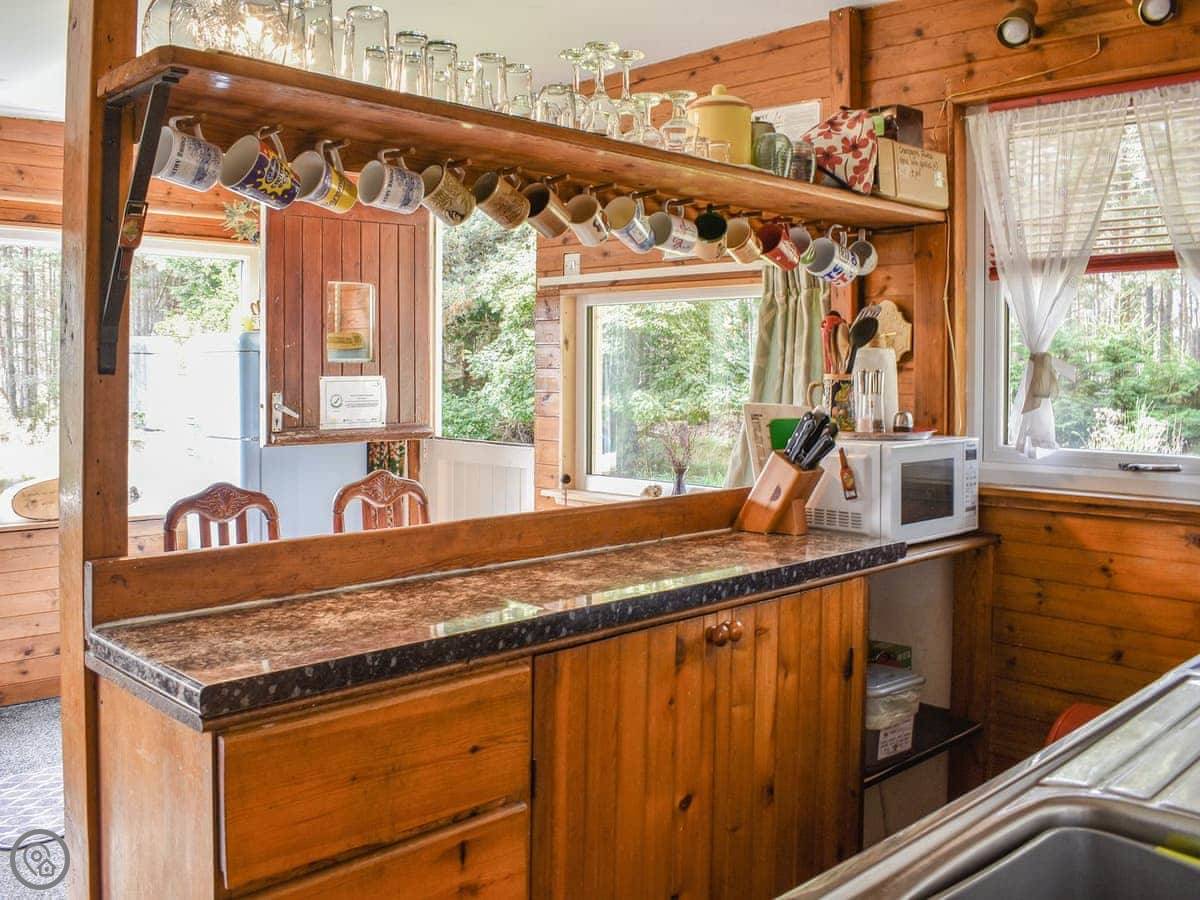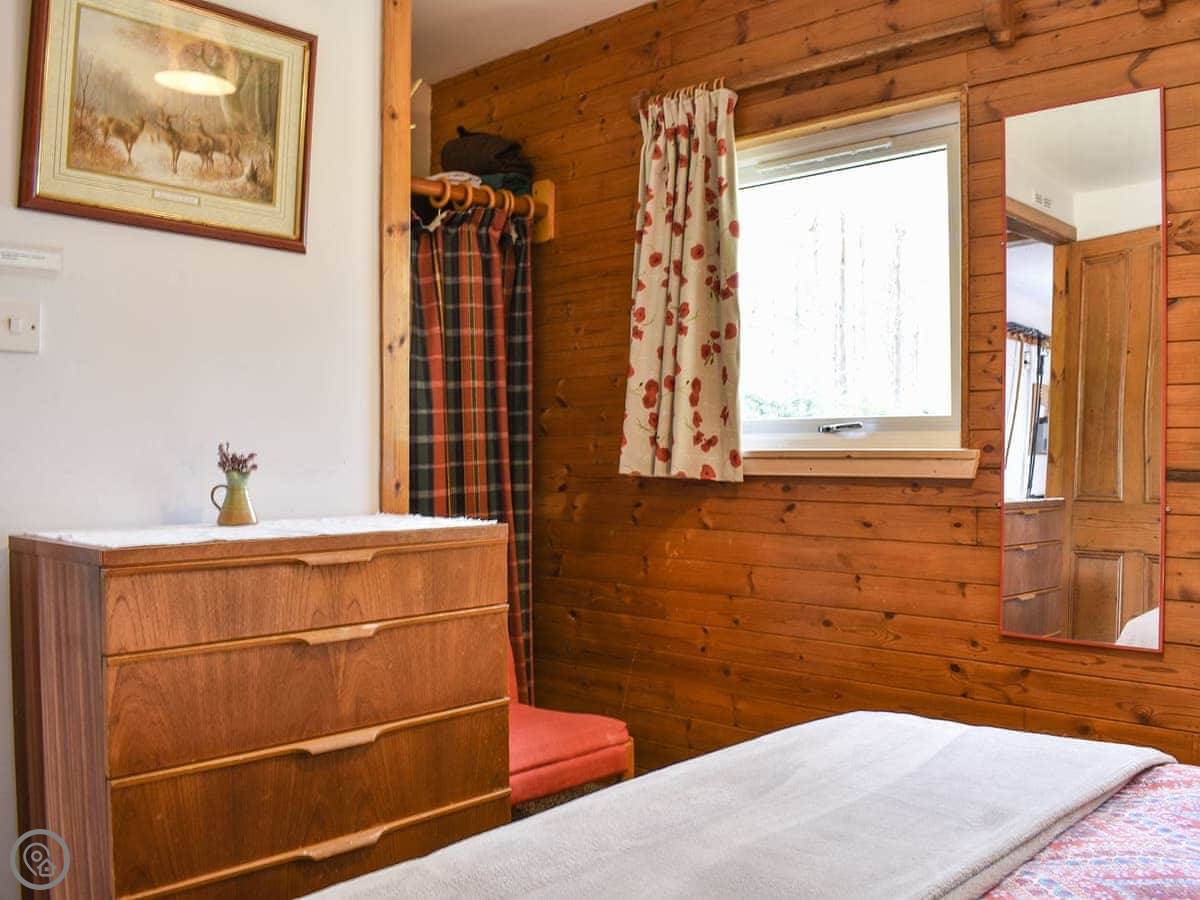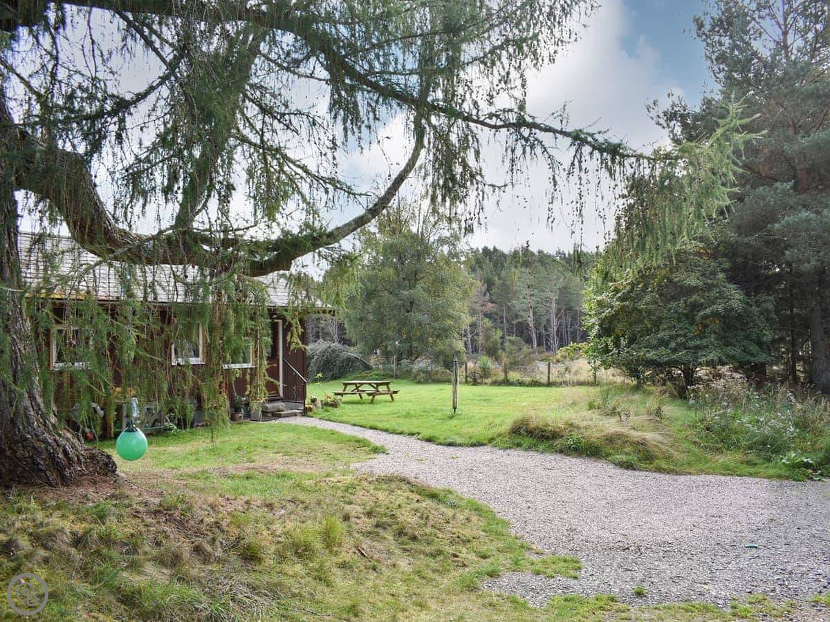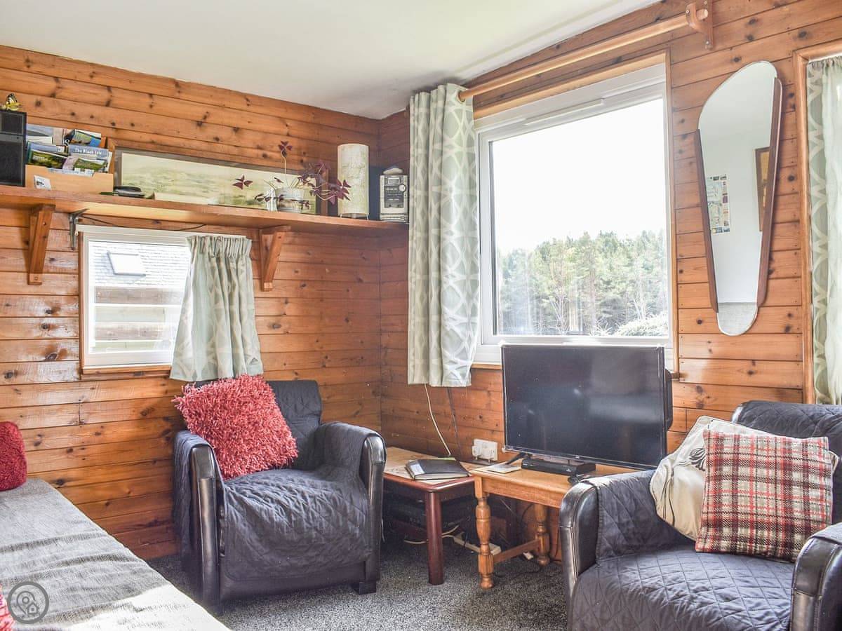 The Chalet is at Mondhuie, which is near Duackbridge in the Highlands. It's tucked in at the forest end of the garden. You can watch the woods from the stable door.