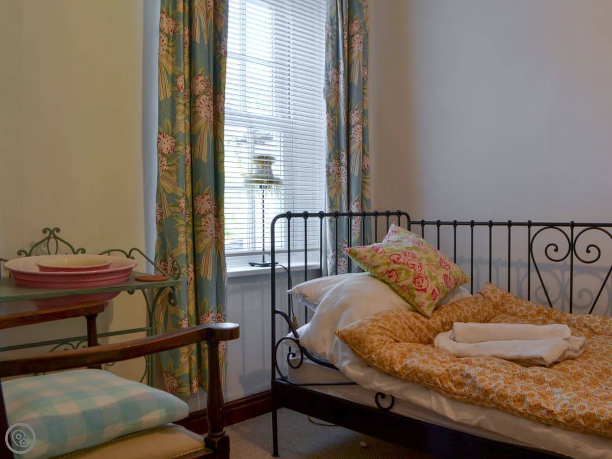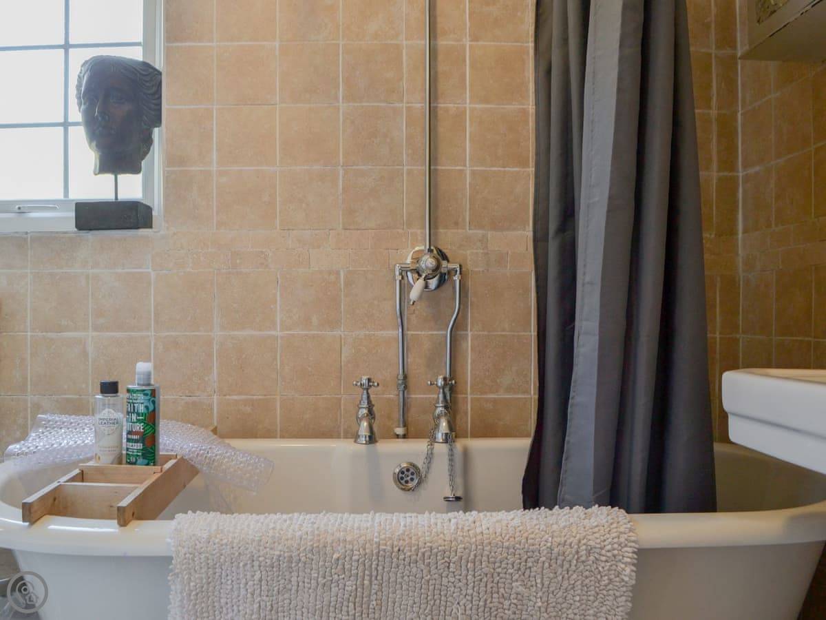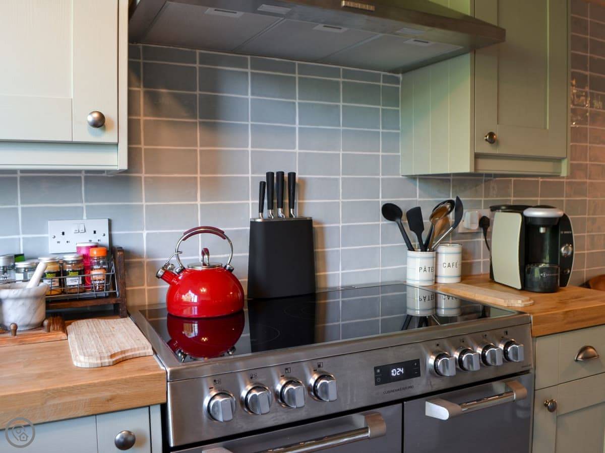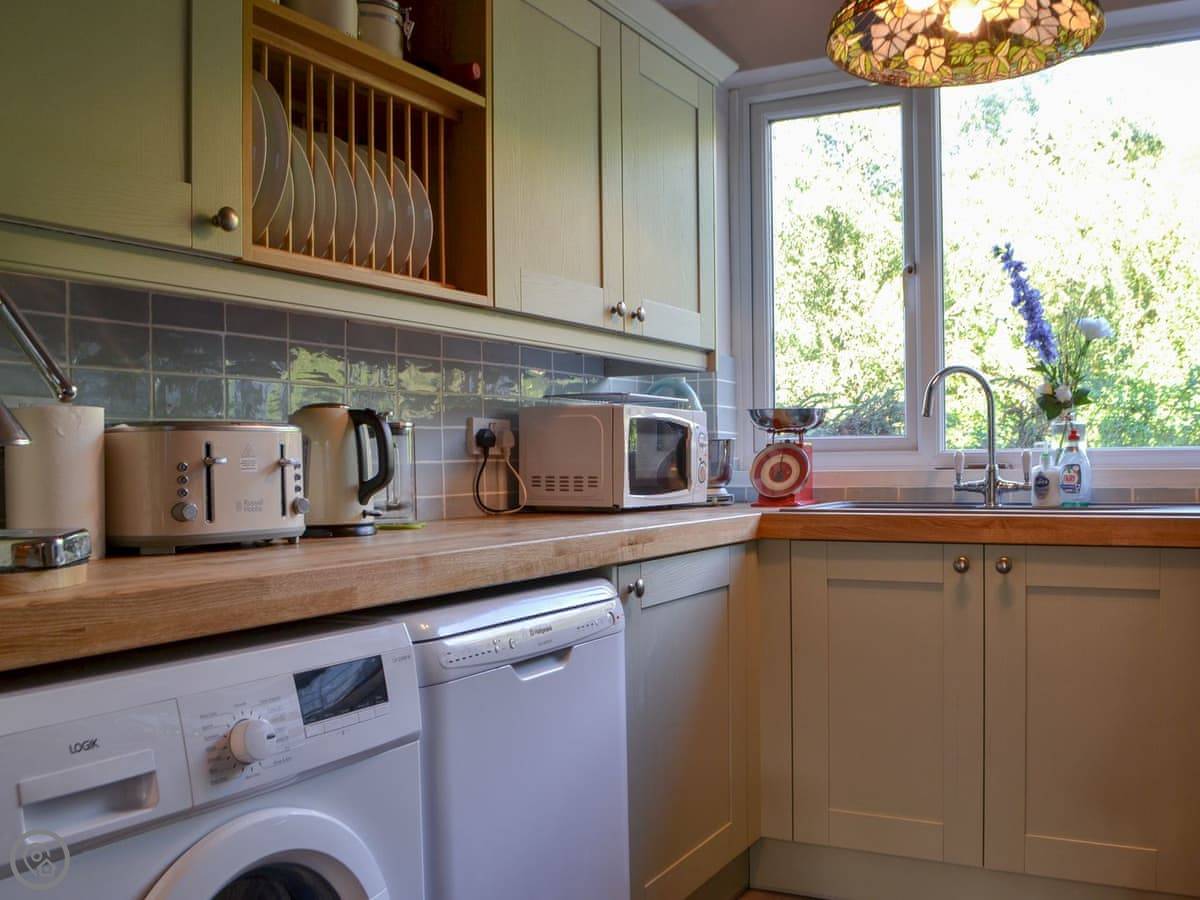 The ground floor features an open plan living area and dining room with plenty of easy seating and Freesat TV and Netflix, perfect for movie night in front of the fire after a day of adventure. The kitchen features a range cooker, dishwasher and washing machine, at the back you have a small yard and a spacious off-set garden with lawn, patio and garden furniture; It’s ideal for dining al fresco and enjoying the peaceful garden and greenery at the rear. It is a great sun trap and ideal for a cold beer or a glass of wine while soaking up the sunshine.