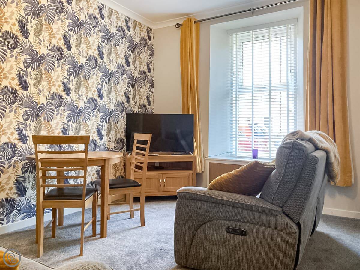 The Wee Hideaway is in Crieff, on the ground floor of a building. It's for two people. One bedroom, one bathroom. It's got a 3 Star rating, which means it's comfortable and clean, not luxury.