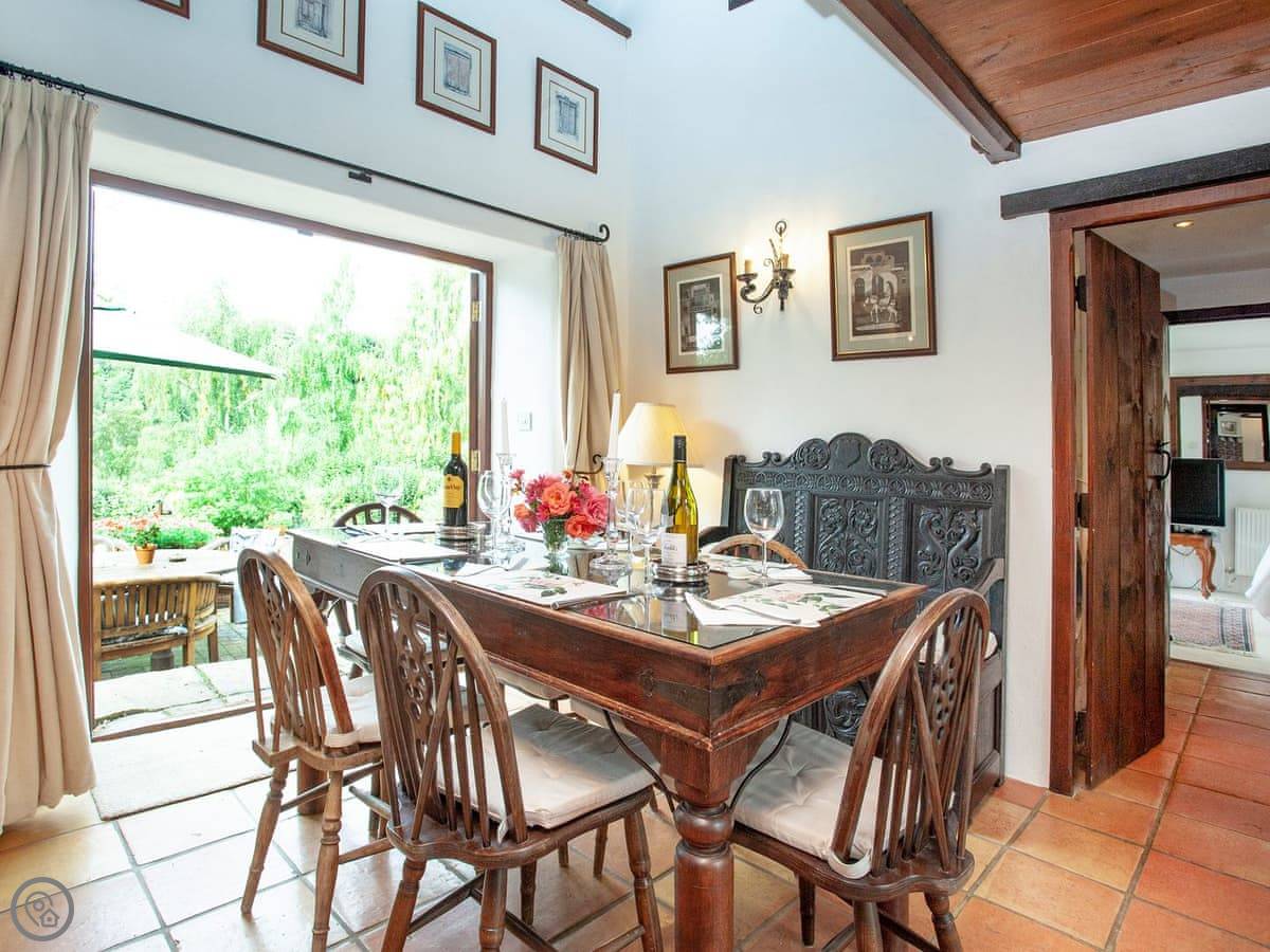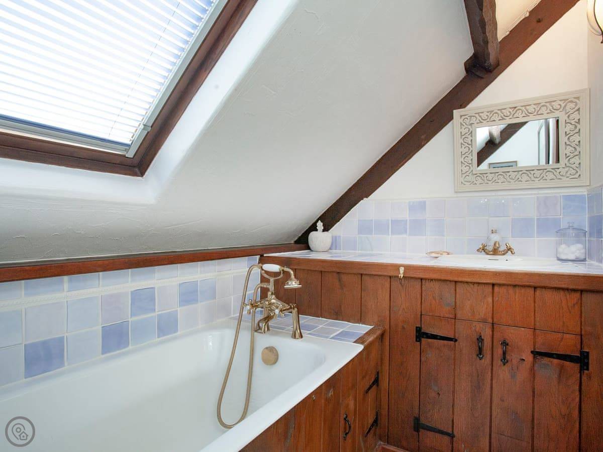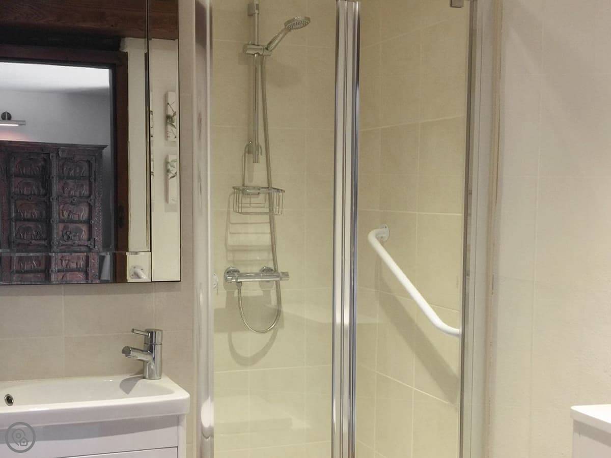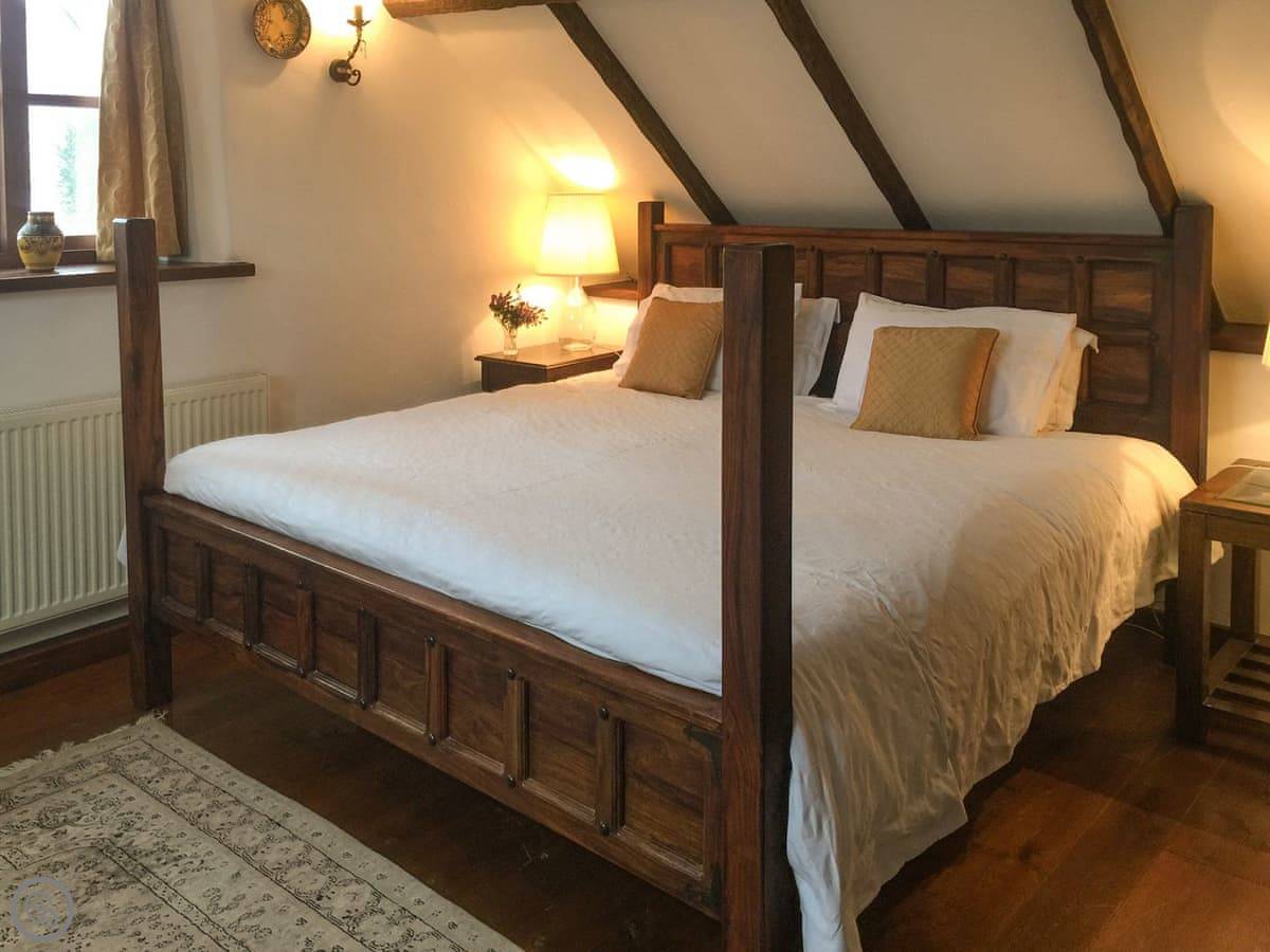 It sleeps seven people. There are three bedrooms and each one has its own bathroom. That's handy. It's got a 4 Star rating. It's comfortable, but it's still a barn. The ground floor bedroom is off the kitchen, and the other two are upstairs.