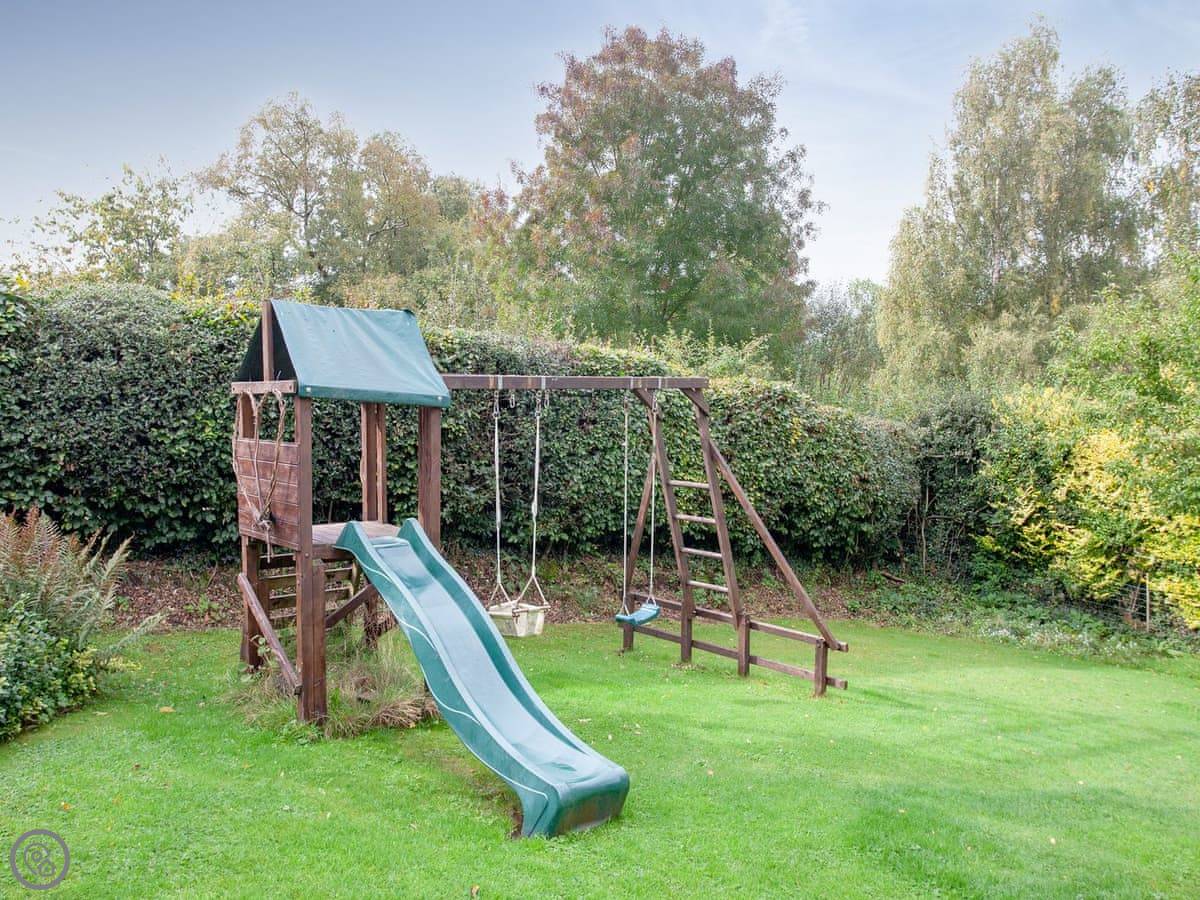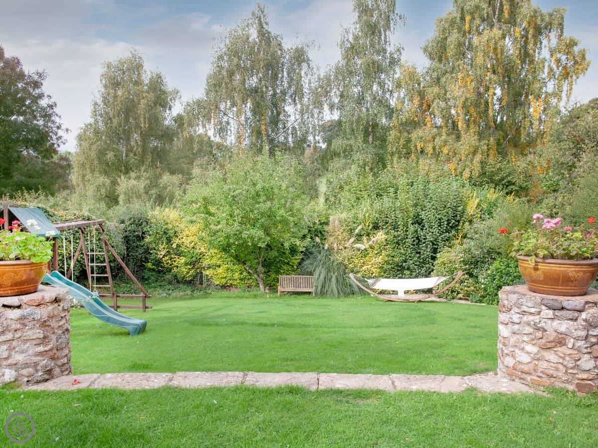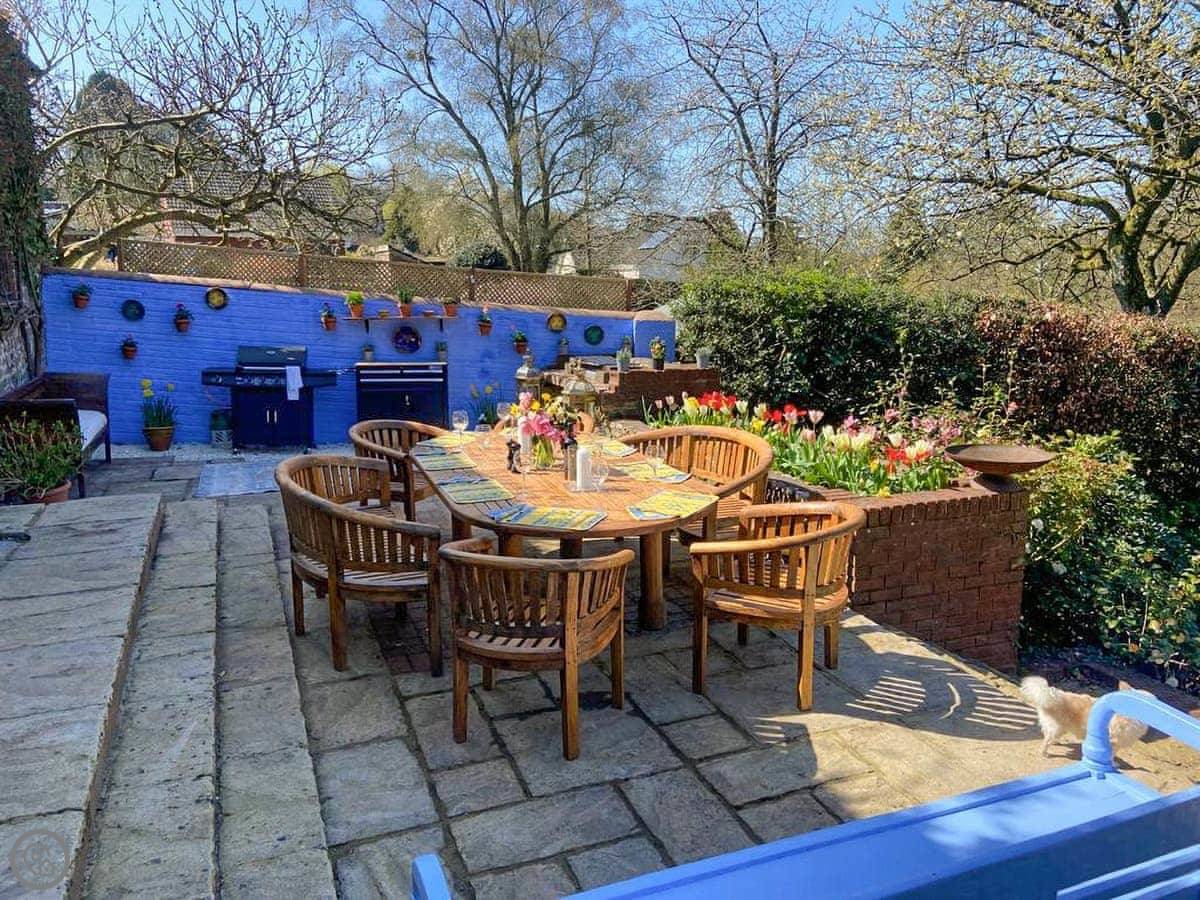 The garden is fully enclosed. It's got a big lawn, a patio, a barbecue, and a fire pit. There's a bit of play equipment for kids. You can park on site.