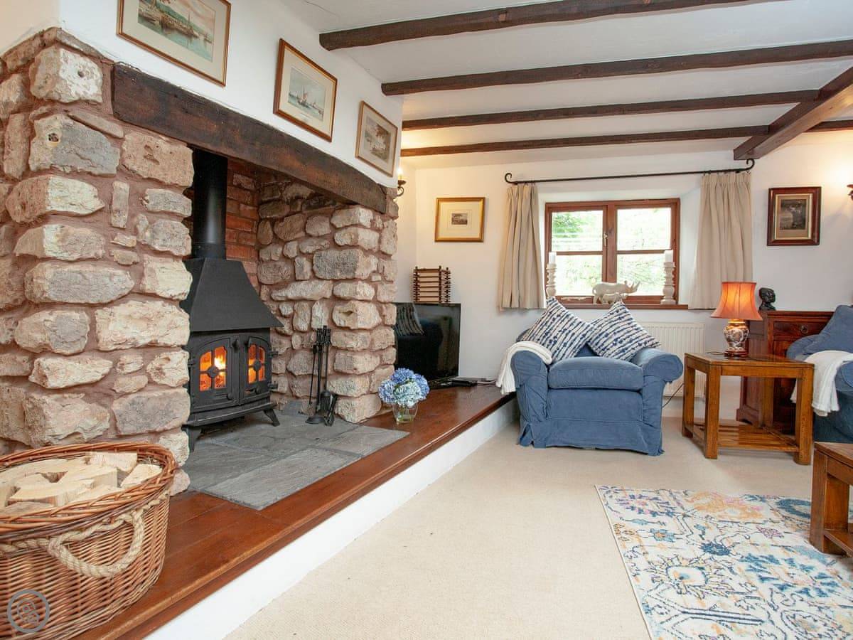 The kitchen is on the small side. It's fine for cooking a meal, but it's not a big family kitchen. The main living area is a good size, with a wood burner. There's a TV with Freeview.
