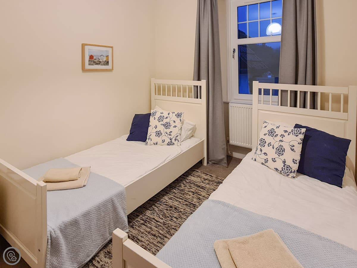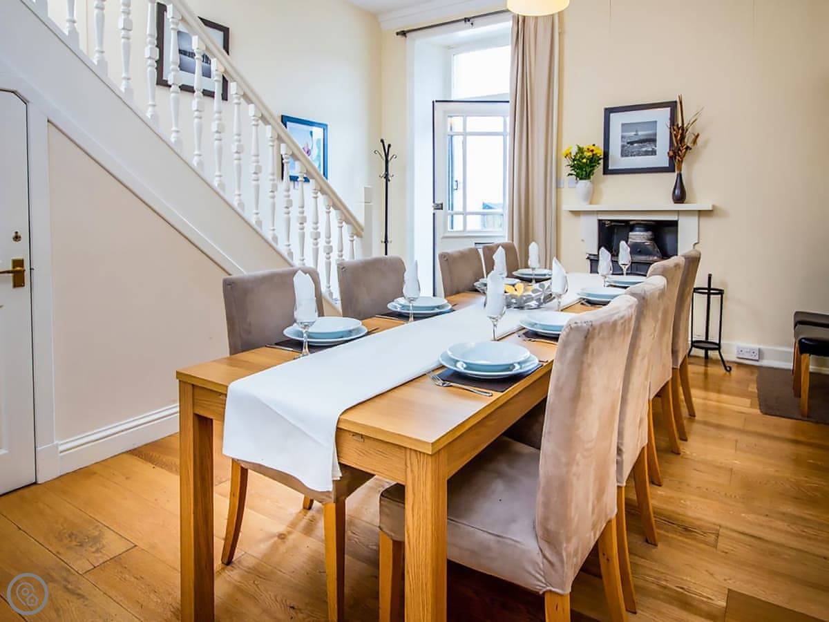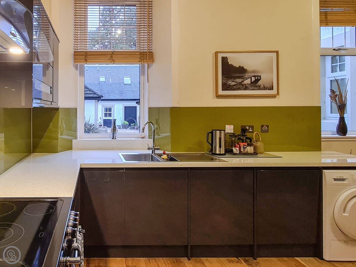 It’s a 4 Star rating, so it’s comfortable and well-equipped rather than luxurious. It has all the things you’d expect: a dishwasher, washing machine, wood burner. There’s parking. You can bring one dog.