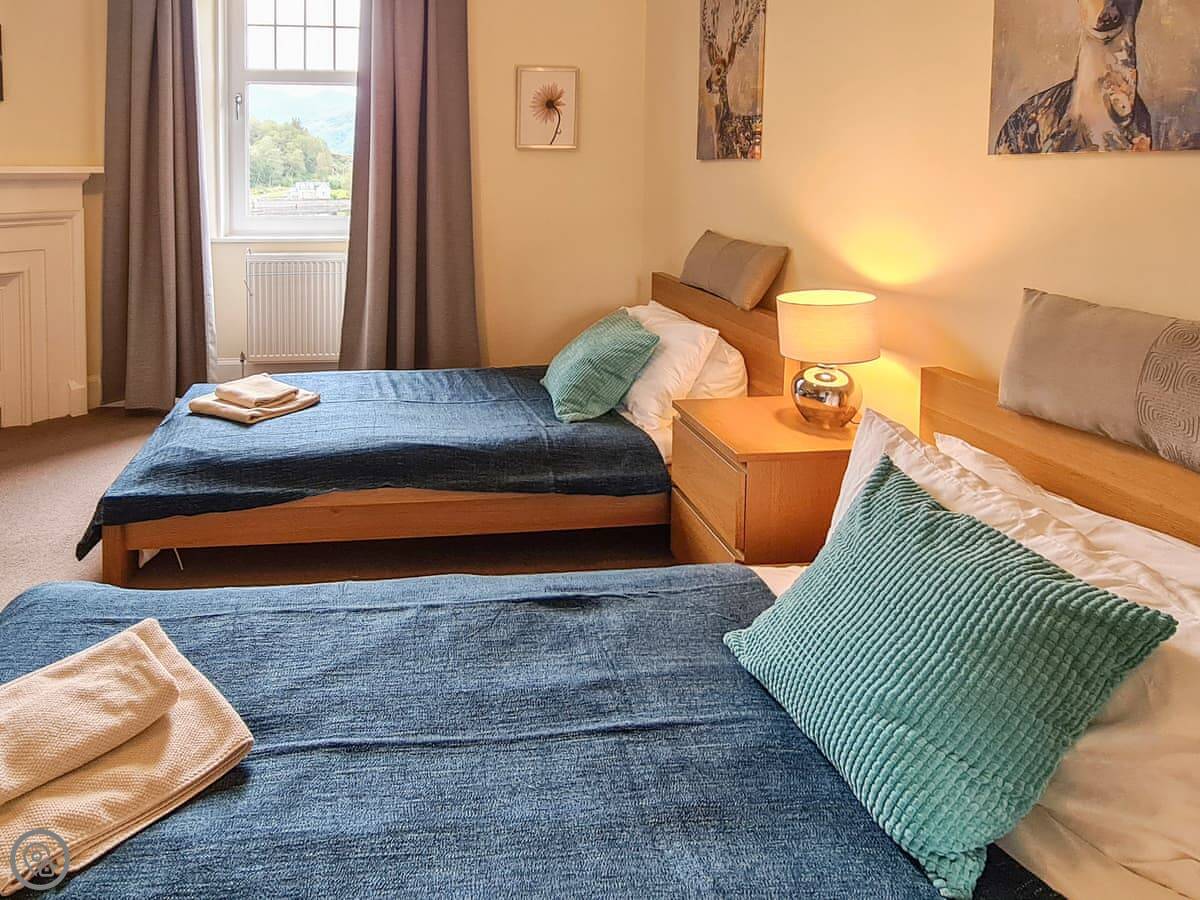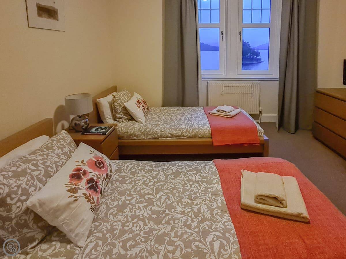 The main thing is the view. You look right out over the loch from the living room. Four of the bedrooms have the same view. It’s very quiet.