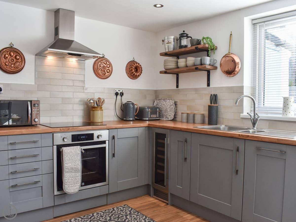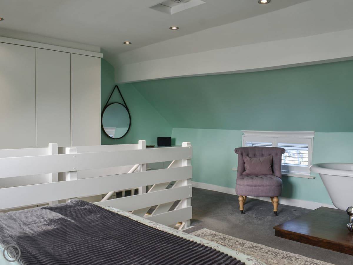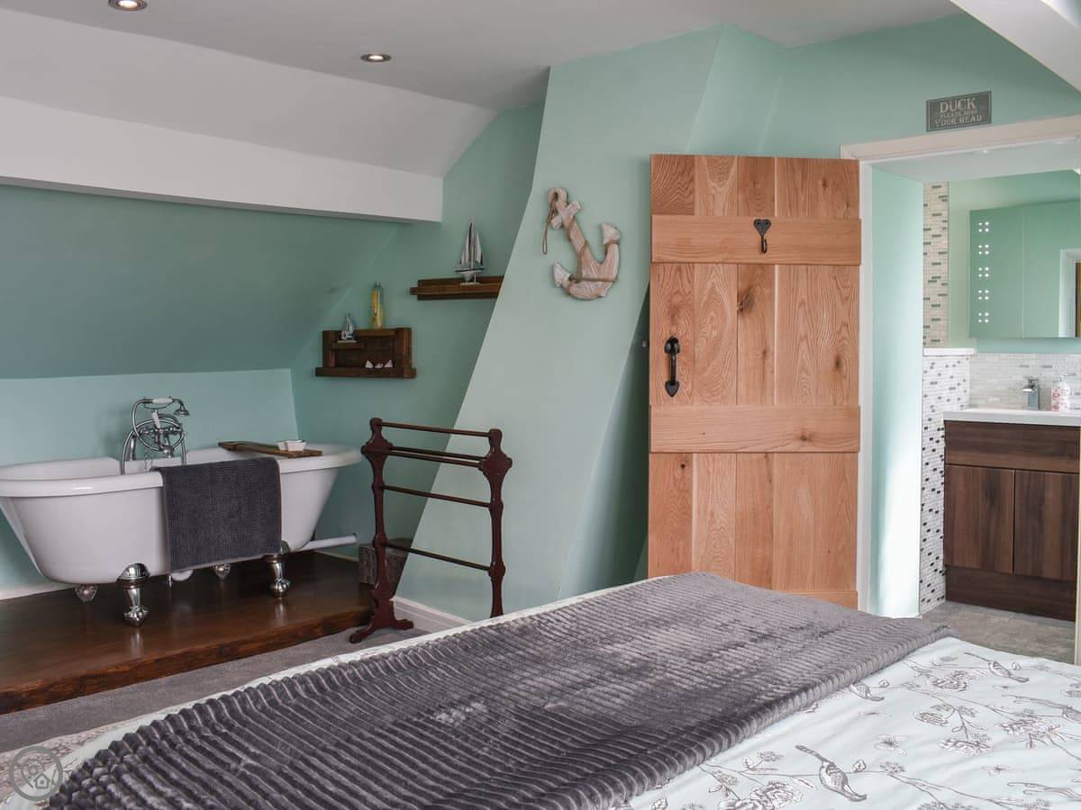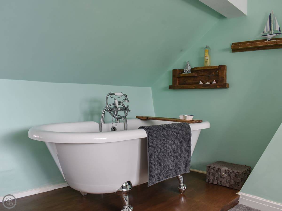 Bay Cottage is picture perfect. As you step inside you have the cosy living room, with an atmospheric wood burner centre stage ensuring you have a warm welcome. The kitchen has an authentic cottage feel, and is very well equipped so that you can rustle up meals to impress your loved one. The ground floor also has the added convenience of a toilet. Upstairs under the vaulted ceiling you have the double bedroom complete with a freestanding bath. There is also an en-suite walk-in rain forest shower. Step outside into the garden with it’s sun trap, and you have a patio with steps leading up to an outdoor seating area, complete with a pagoda. The perfect outside space.