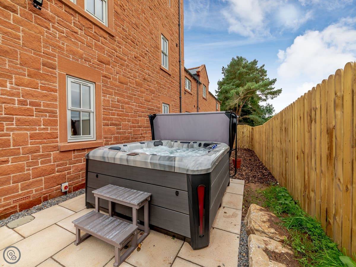 Outside, there's a private patio with a hot tub. You can park on site and there's an electric vehicle charger. They've got bike storage available if you ask.